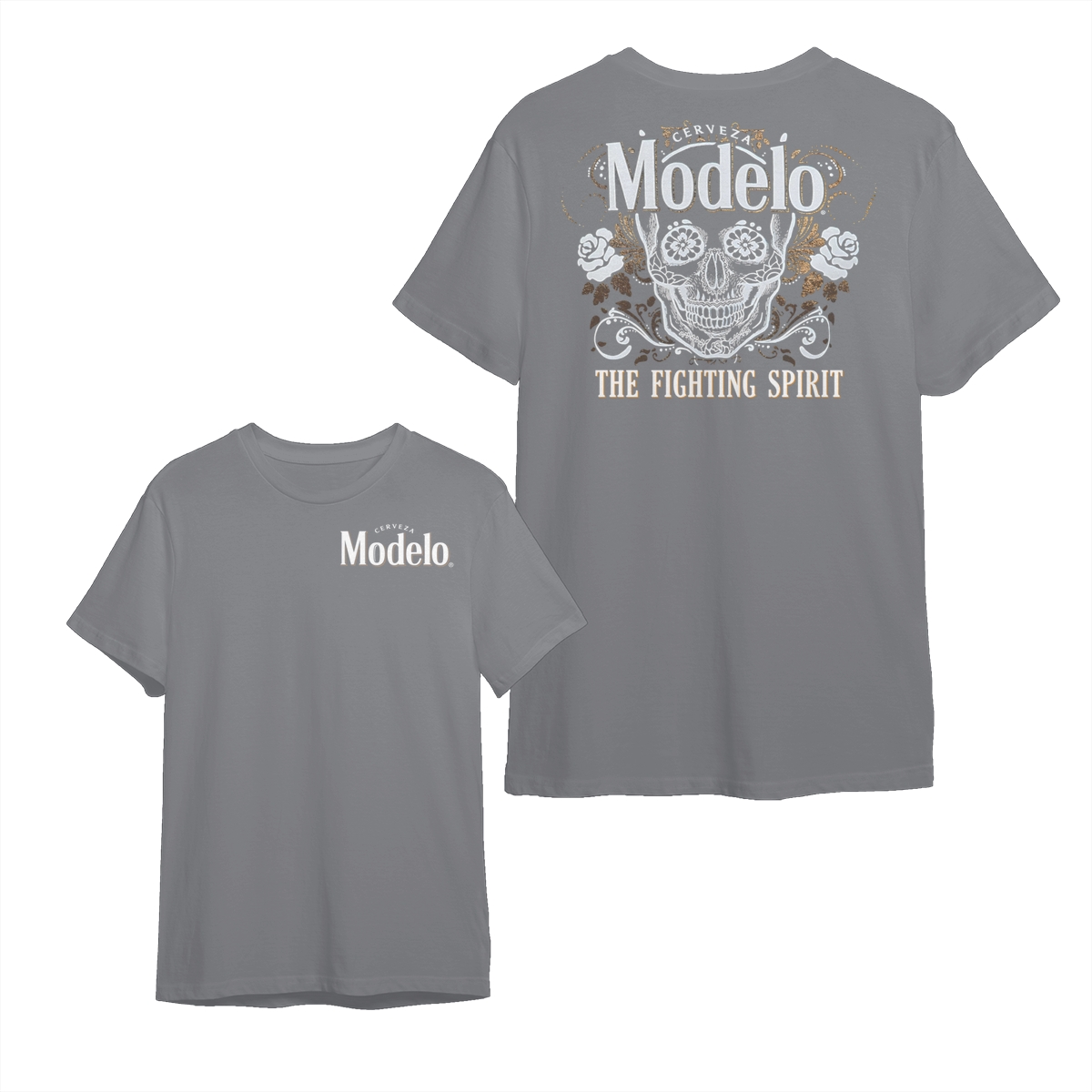 Modelo Fighting Spirit T-Shirt – Sugar Skull Design With Floral Day Of The Dead Vibe , Bold Latin Graphic Tee , Cultural Heritage Style , Gift For Beer Fans , Casual Streetwear , Mexican Pride Look Classic Unisex