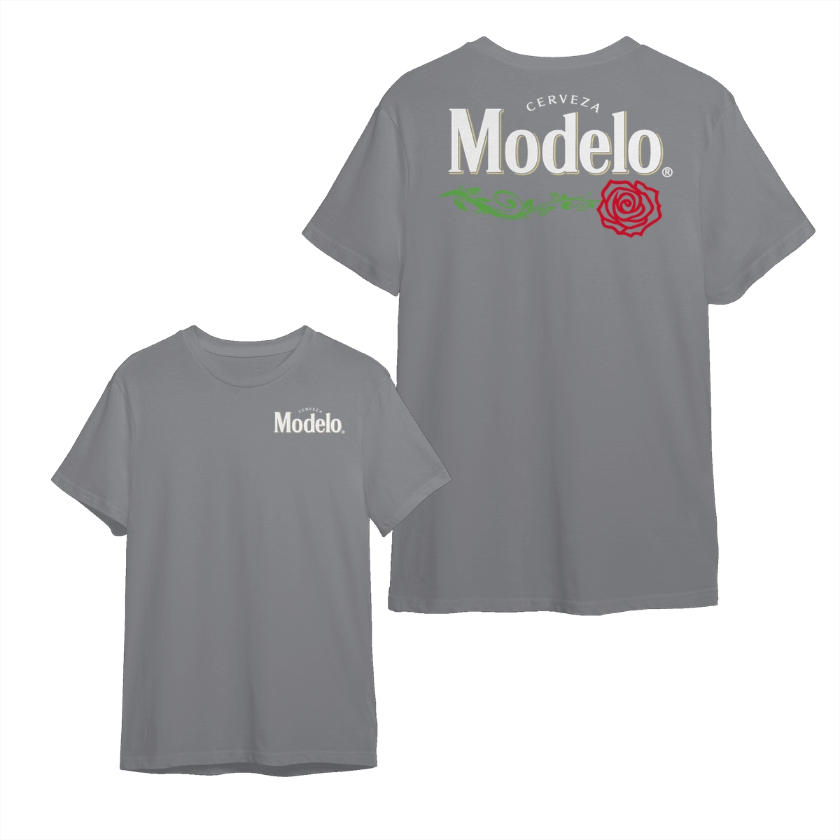 Modelo T-Shirt – Cerveza Logo with Red Rose Vine Design, Perfect for Summer BBQs, Festival Vibes & Beer Lovers – Trendy Streetwear Tee