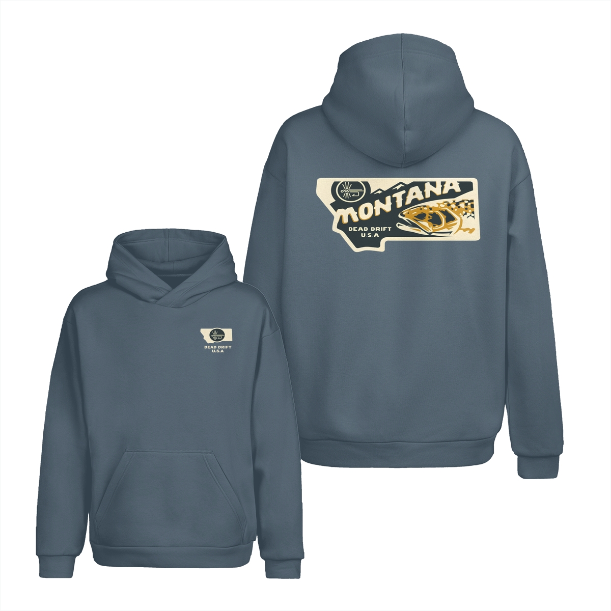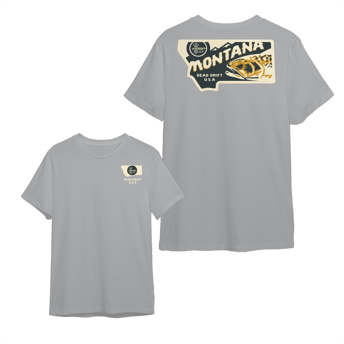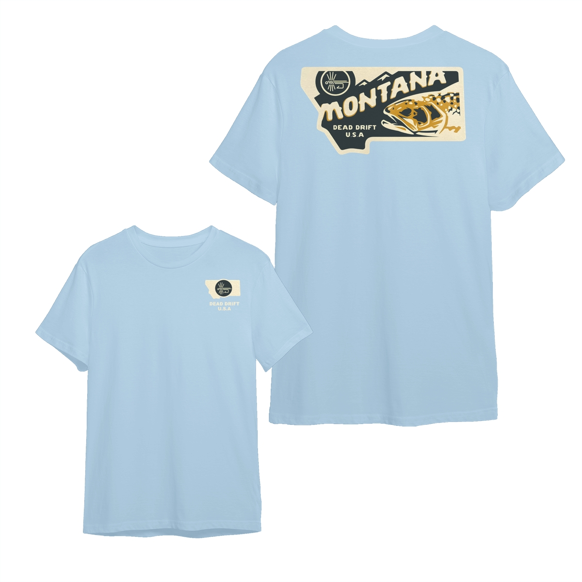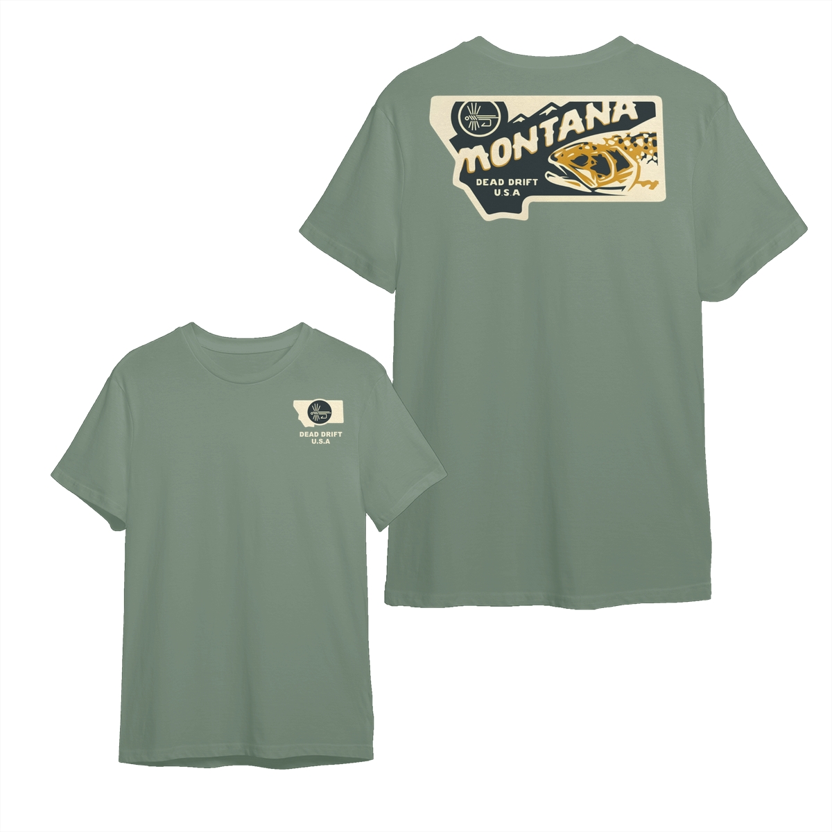 Montana Trout Fishing Shirt – Retro Map Dead Drift USA Fly Fishing Tee, Mountain Outdoors Shirt for Men, Western Nature Lover Tee, Southern USA Style