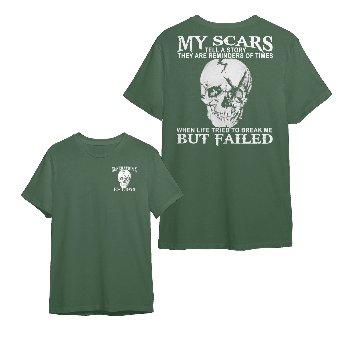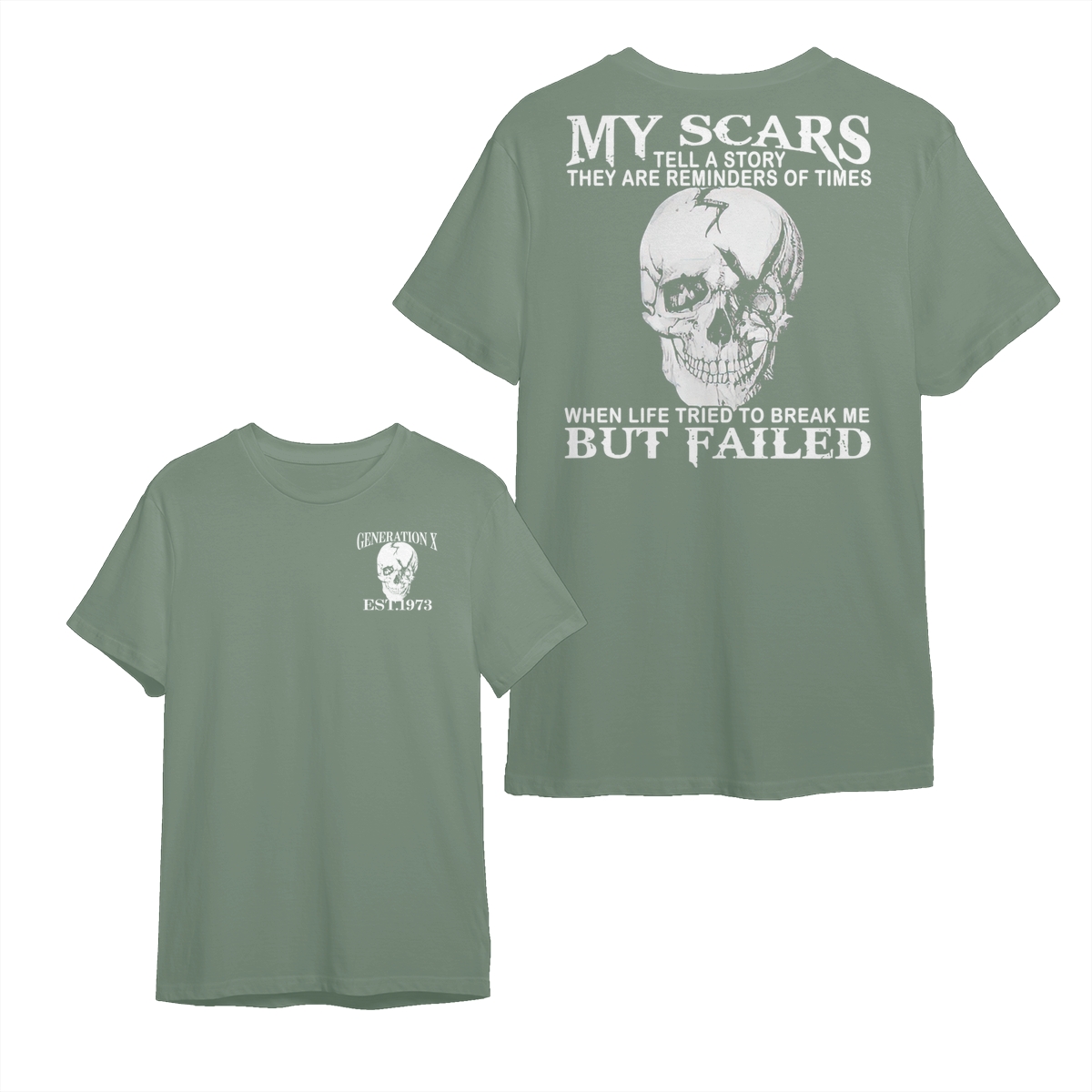 My Scars Tell A Story T-Shirt, Skull and Crossbones Graphic Tee, Life Tried to Break Me Shirt, Reminders of Times Tee, Generation X Skull Shirt, 1973 Established 2025 Menswear