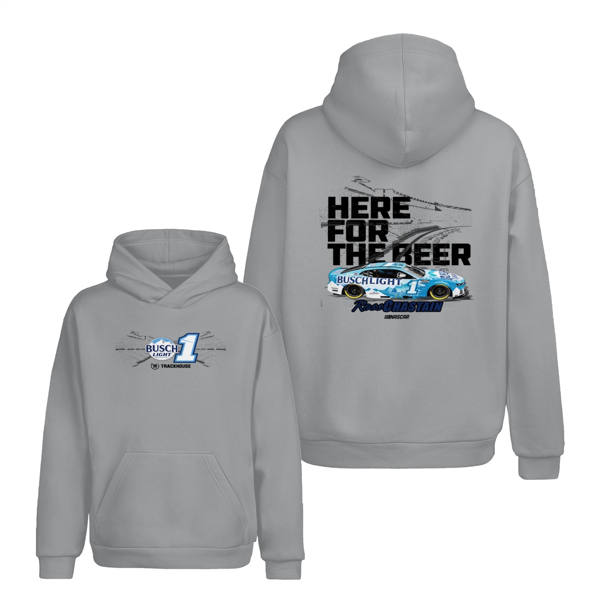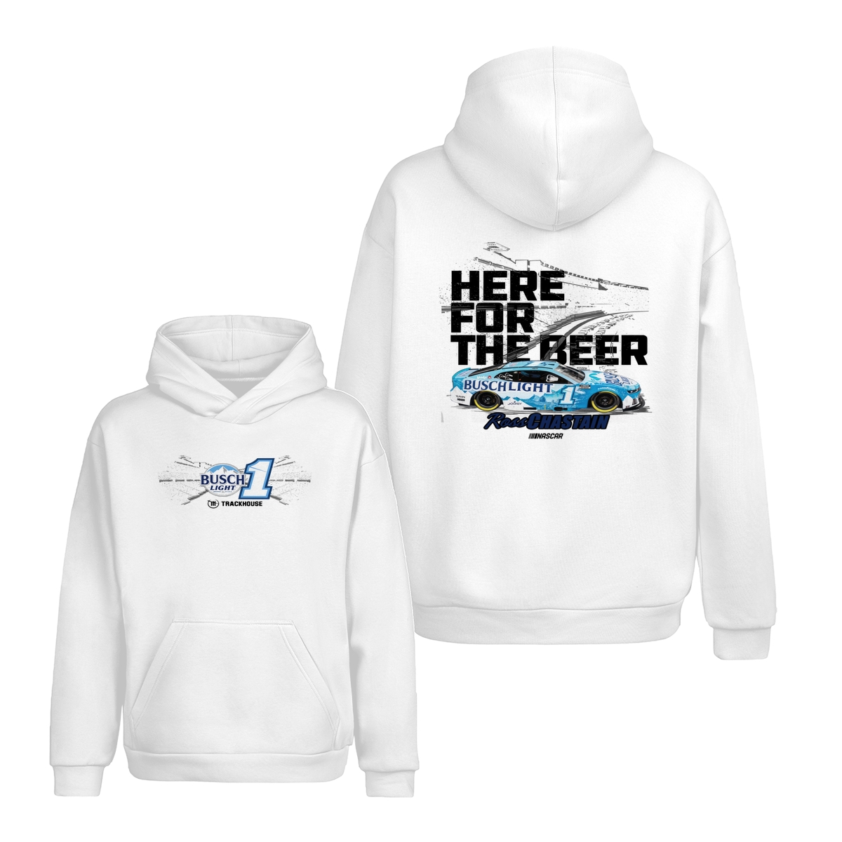 NASCAR Racing Hoodie – Ross Chastain Busch Light #1 Car Graphic, “Here for the Beer” Design for Racing Fans & Beer Lovers, Unisex Menswear Top