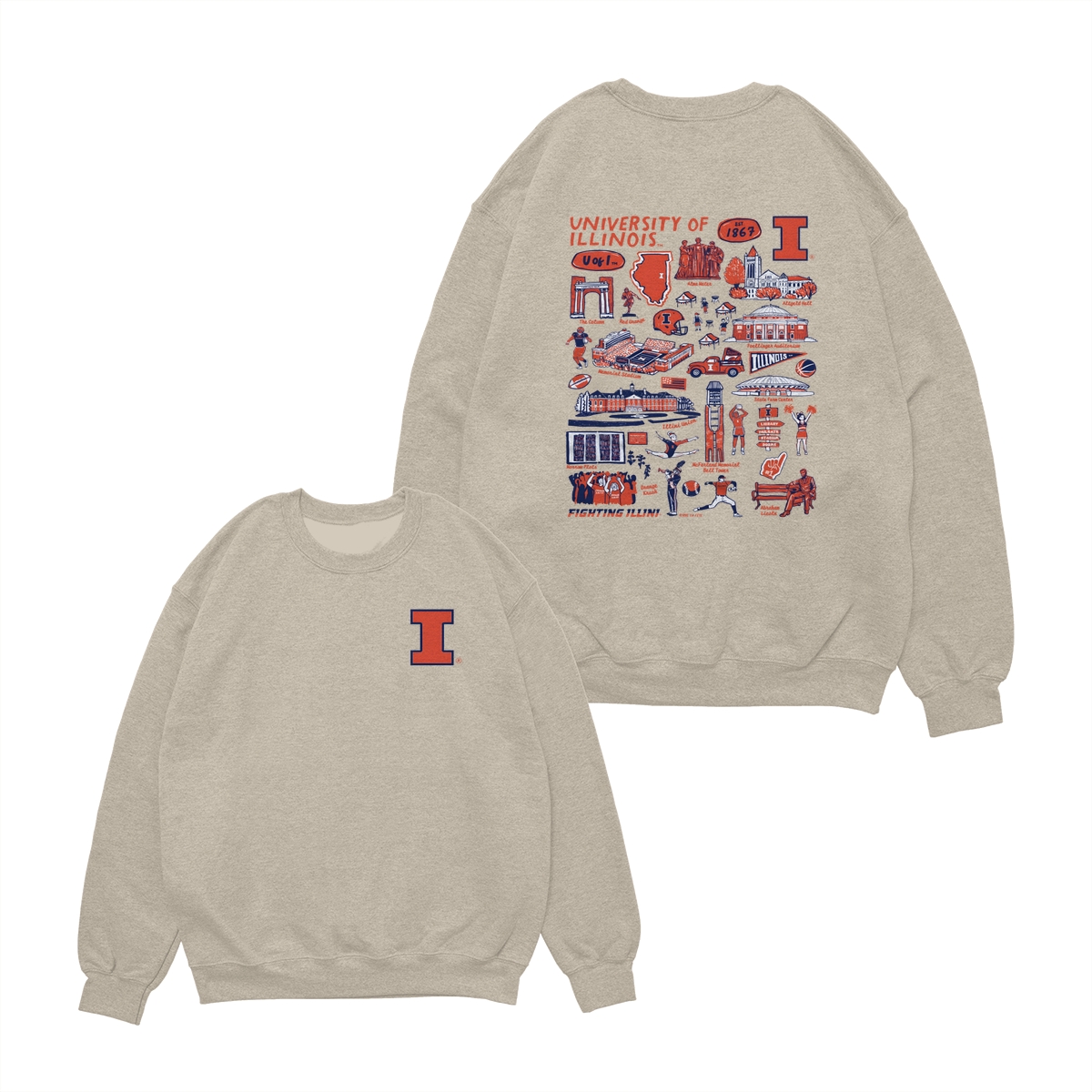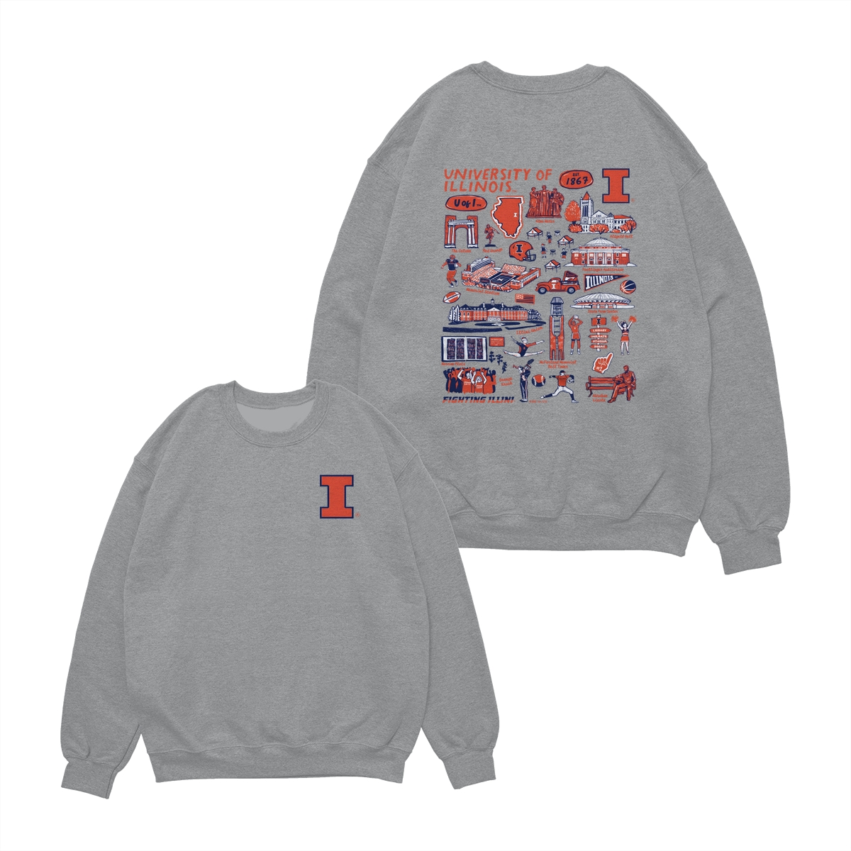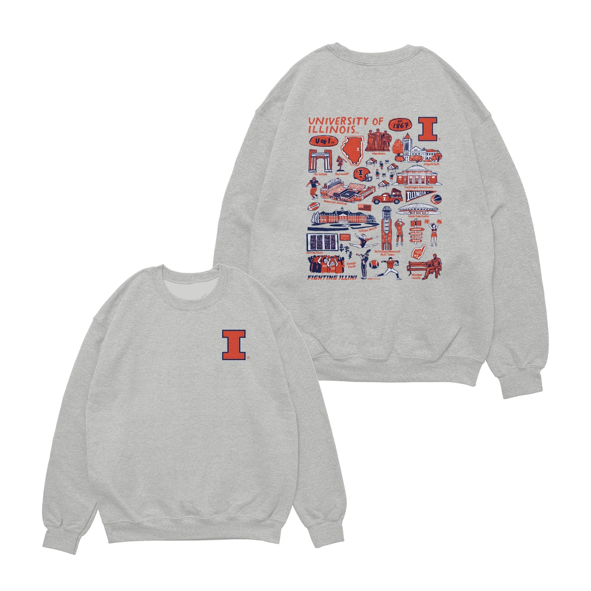 NCAA Illinois Fighting Illini Impressions Artwork Sweatshirt, University of Illinois Sweatshirt, UIUC Shirt, Fighting Illini Fans Shirt, Sport Tops
