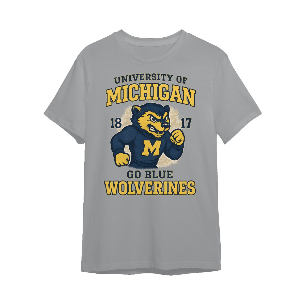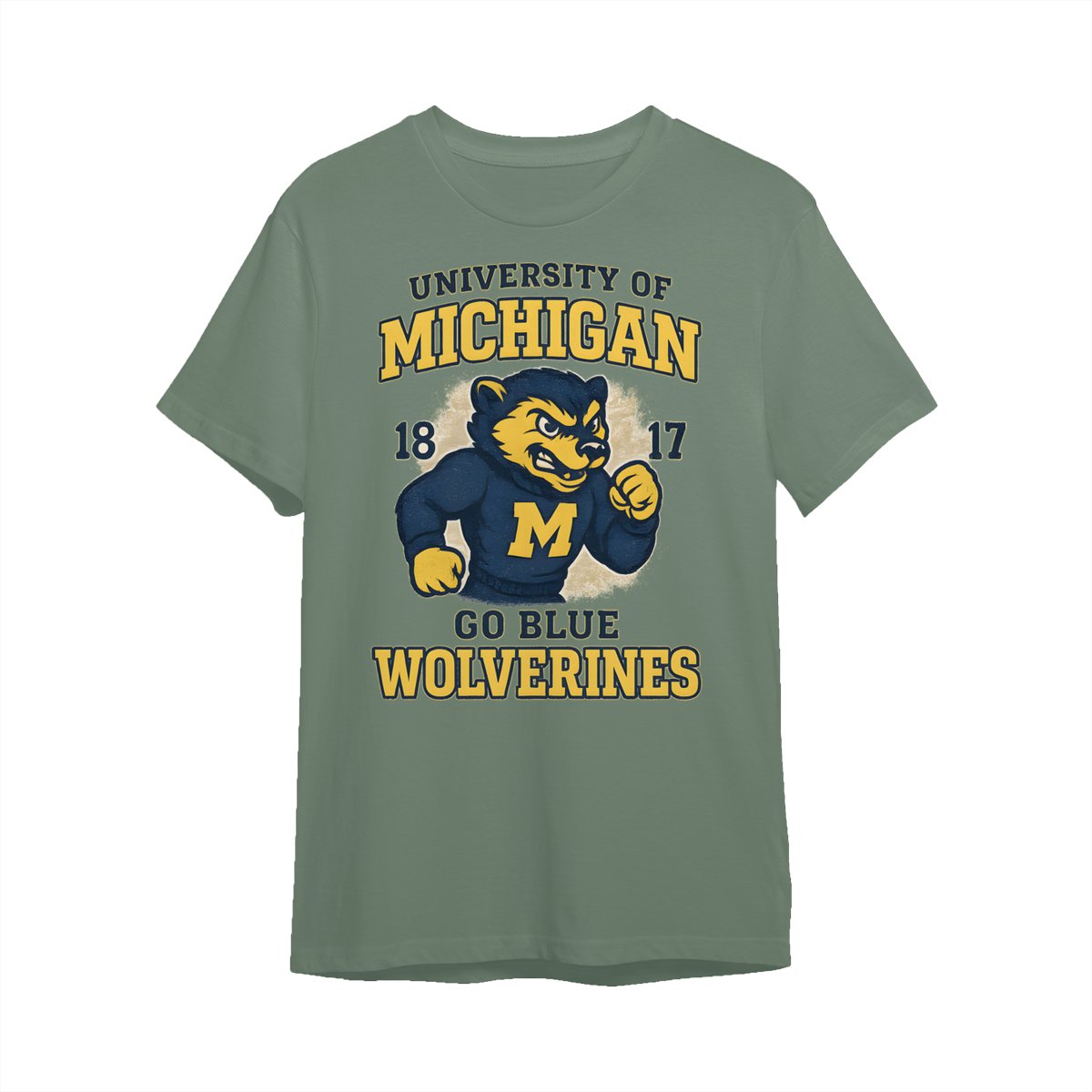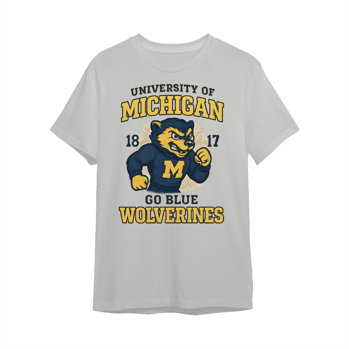 NCAA Michigan Team Heritage Shirt, Classic College Football Tee Classic Cotton Crewneck , Gift for Sports Fans Hand-Drawn T-Shirt