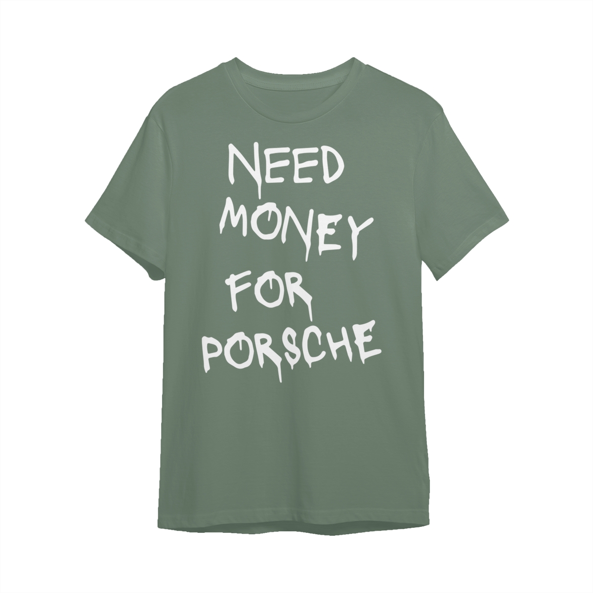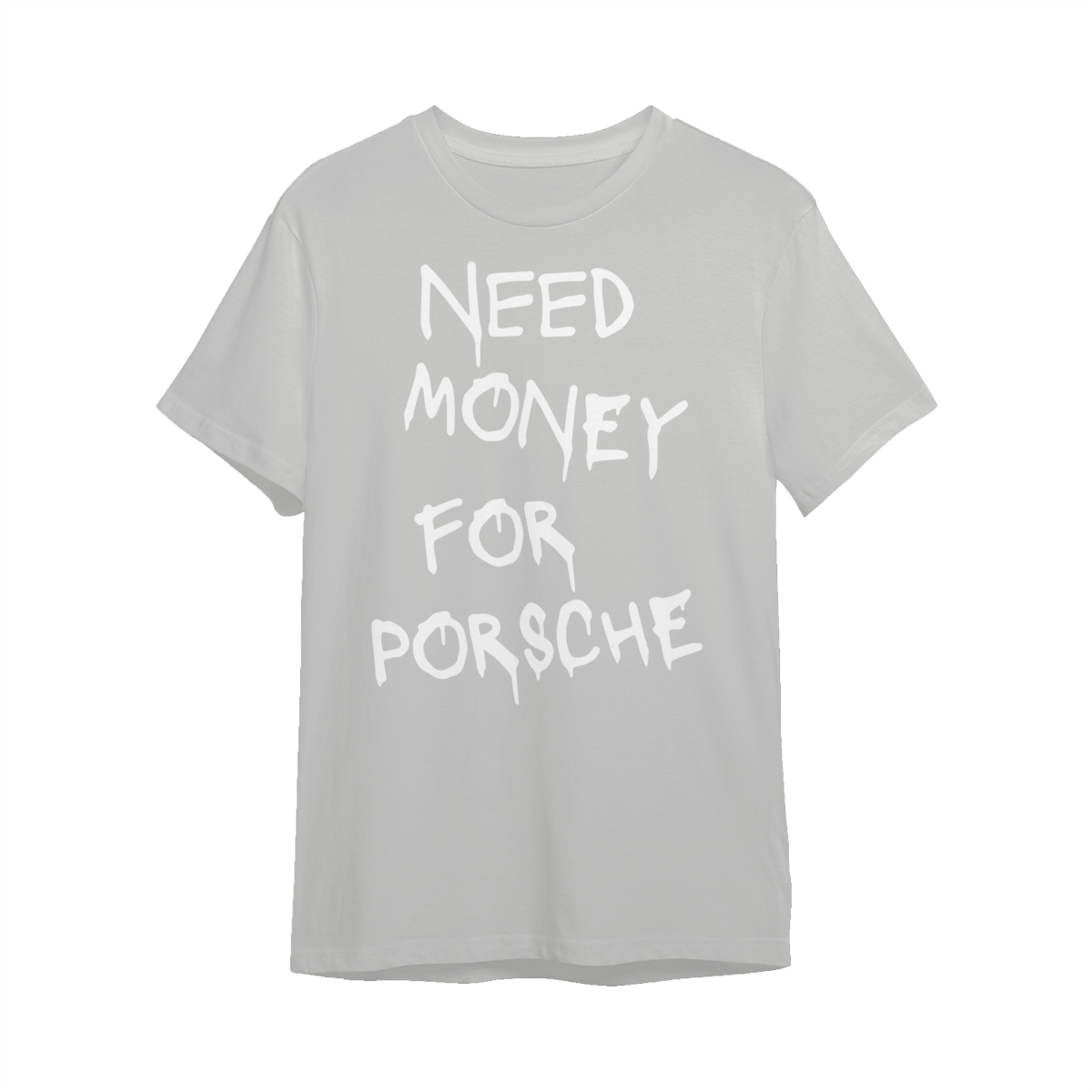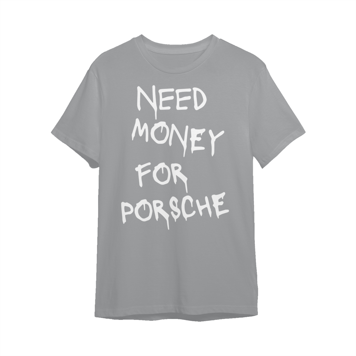 Need money for Porsche [Back print] Graphic print T shirt Casual Stylish Menswear T-Shirt Outfit Tops Cotton Love Crewneck Tshirt design Tee Streetwear