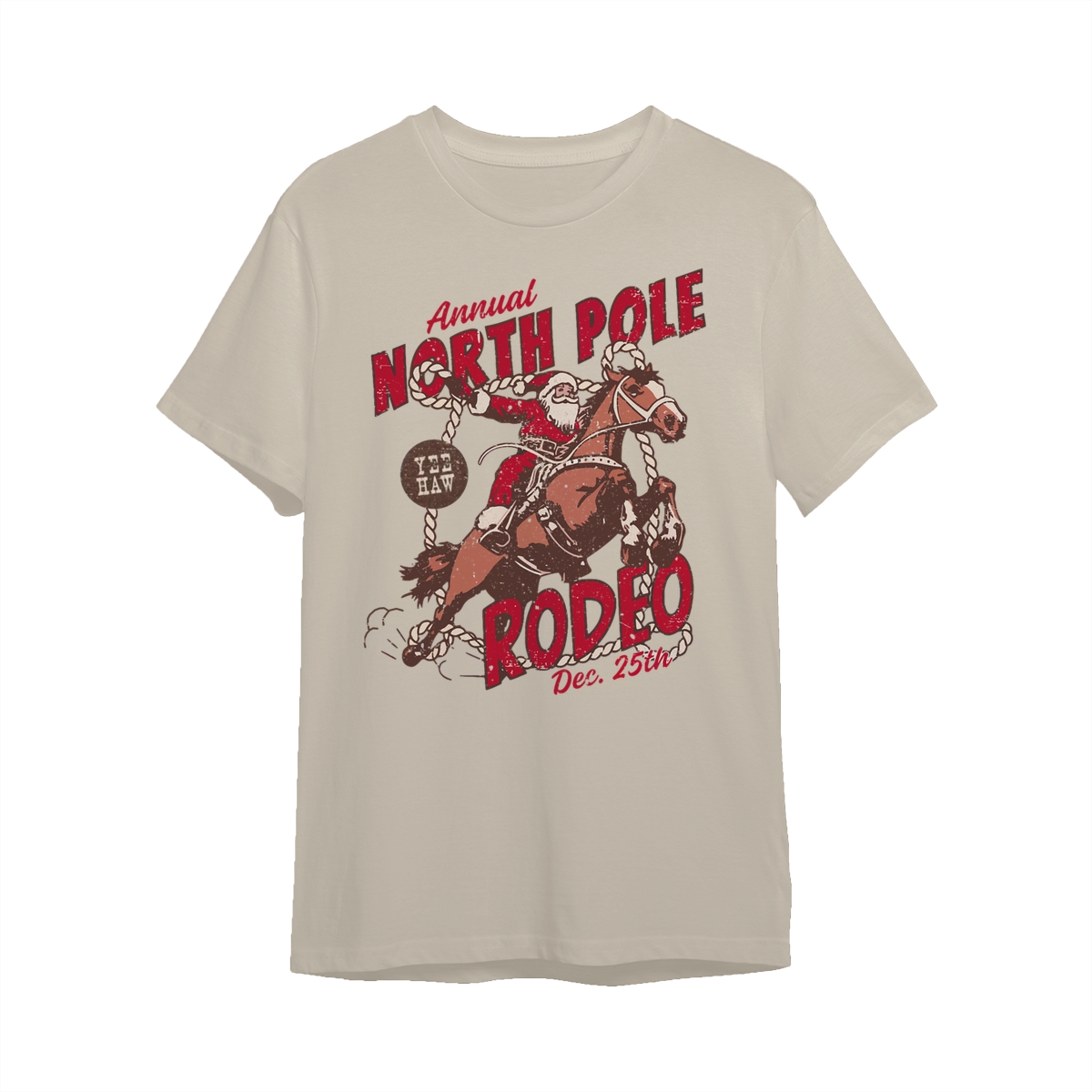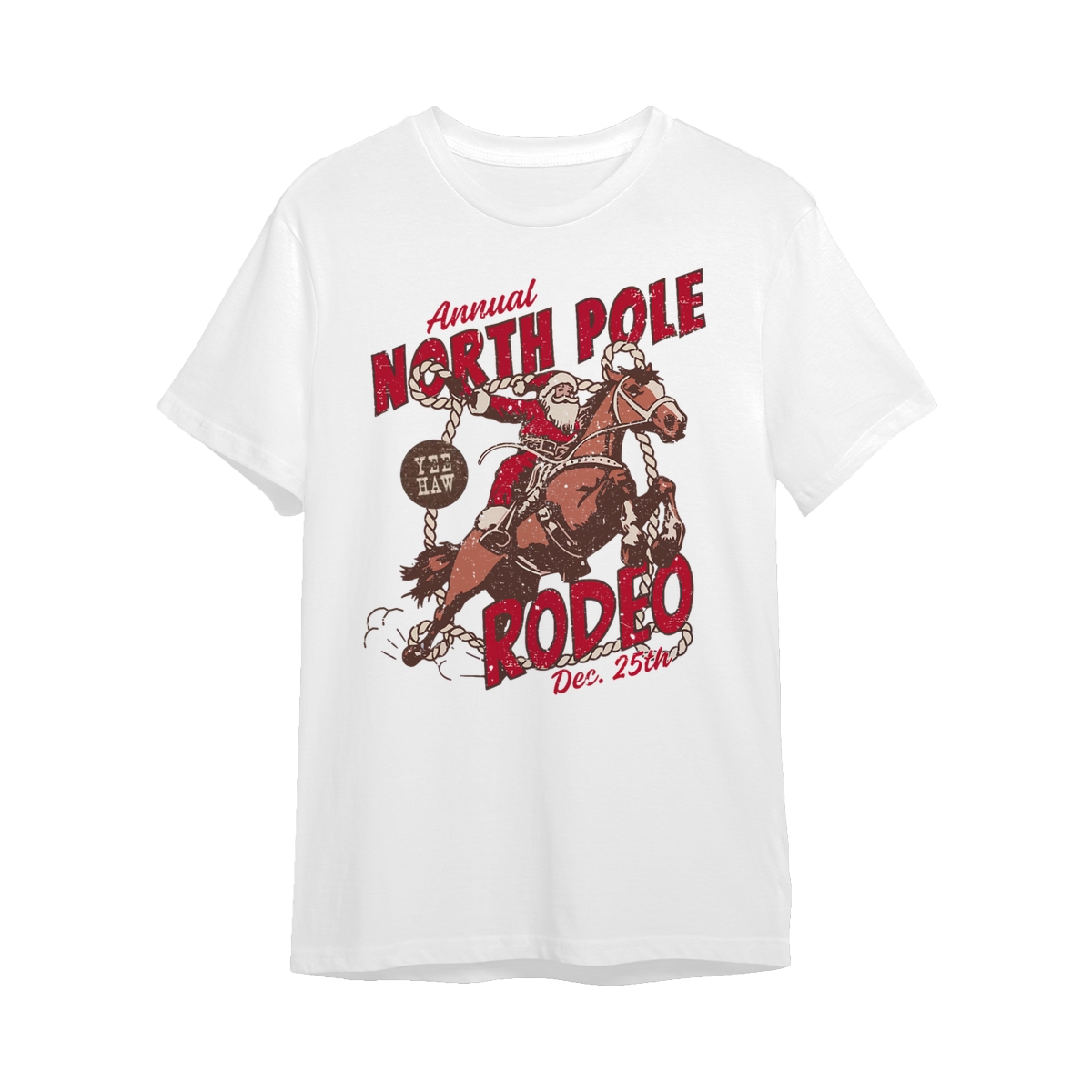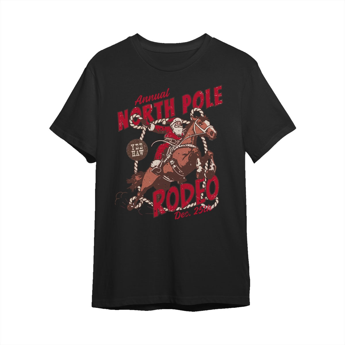 North Pole Rodeo Sweatshirt, Country Christmas Western T-Shirt, Cowboy Santa Claus Crewneck, Vintage Groovy Festive Top, Holiday Rodeo Graphic Shirt