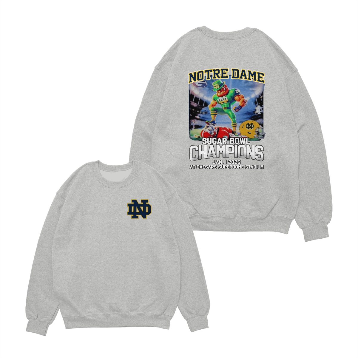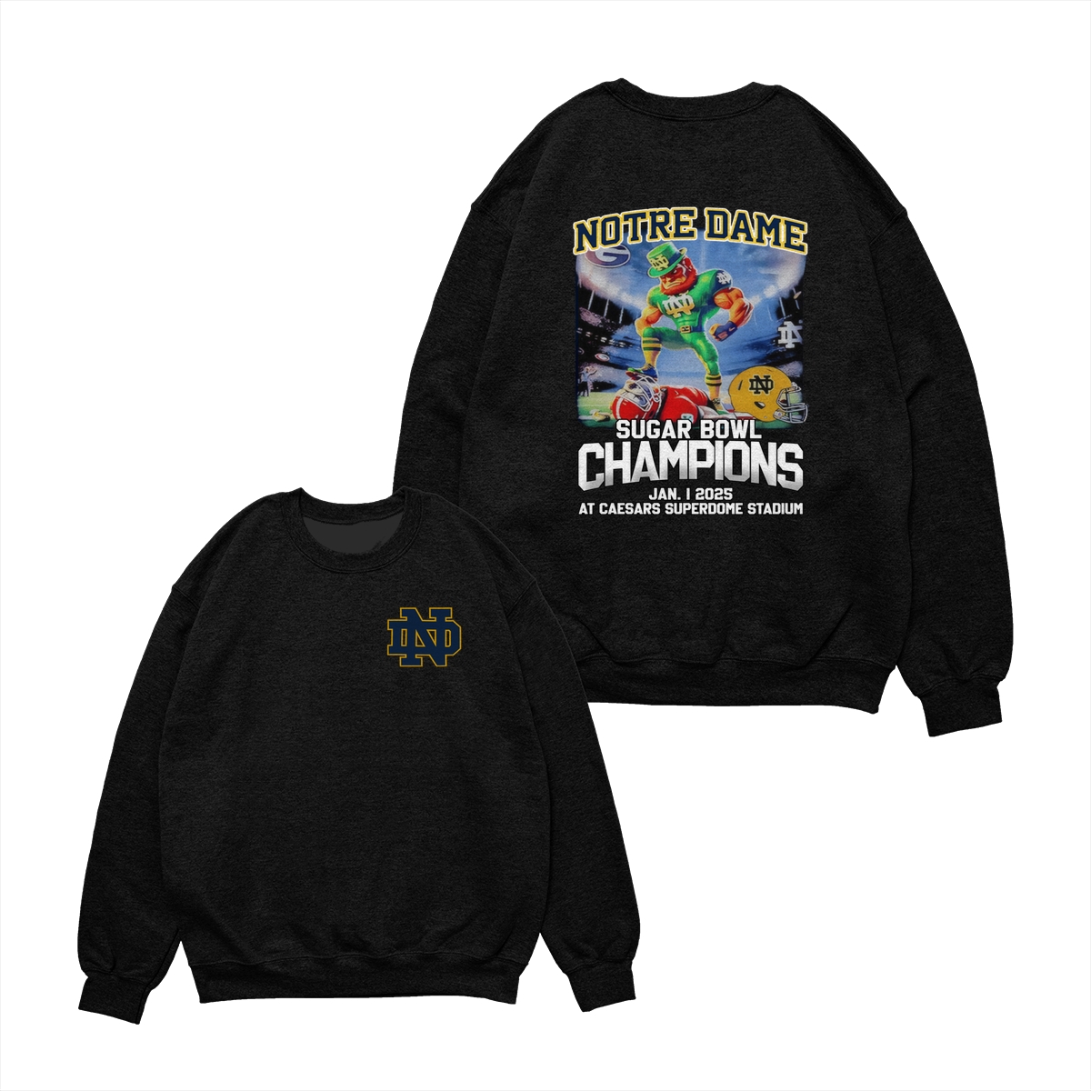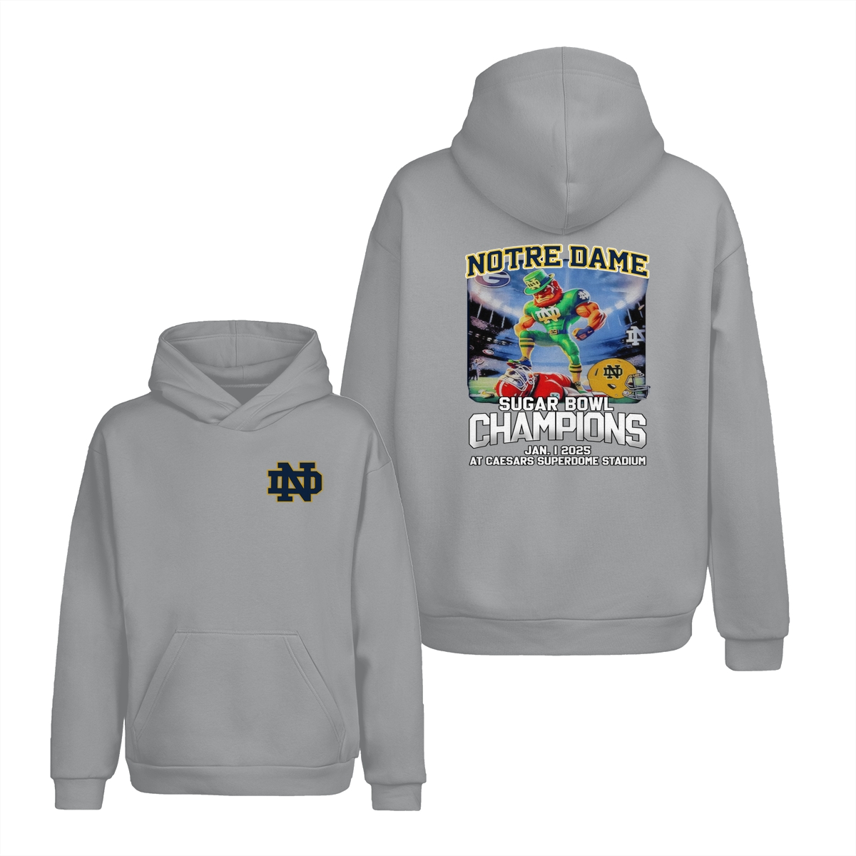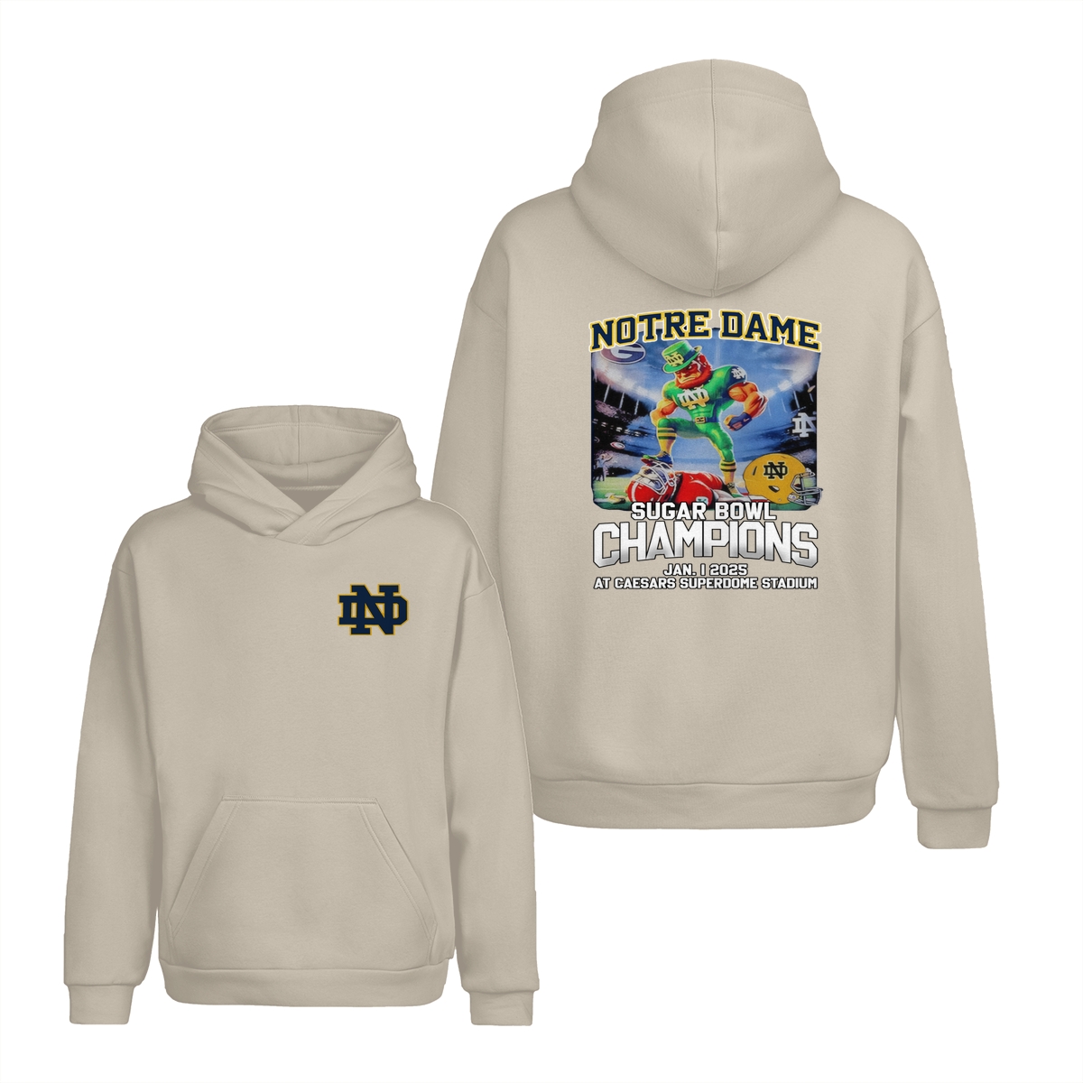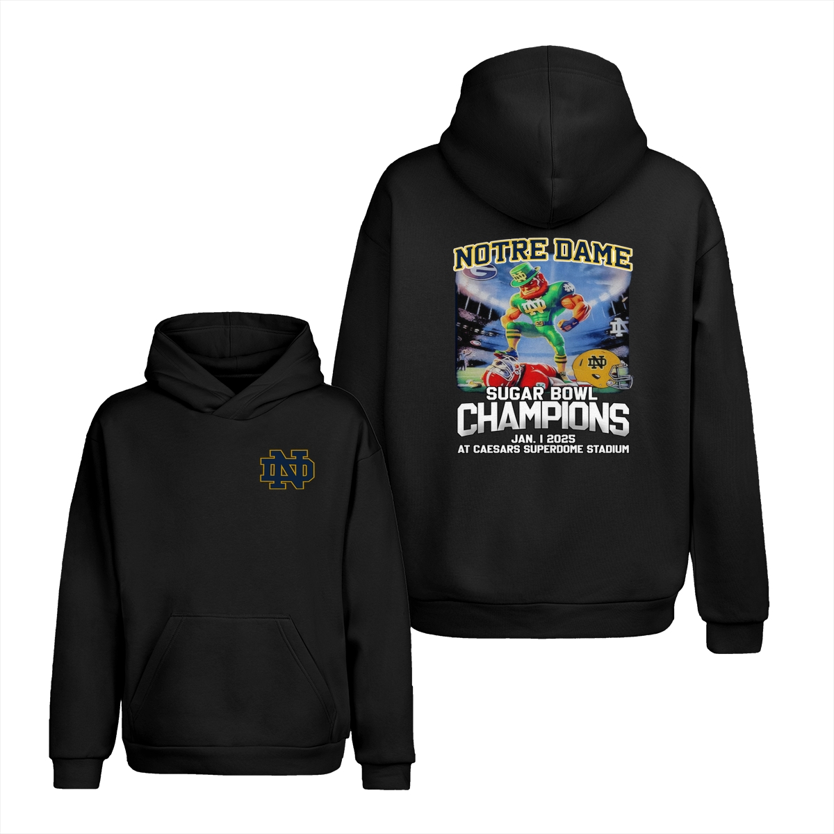 Notre Dame Fighting Irish 2025 Sugar Bowl Champs Shirt Mascot Shirt Classic Cotton Sweaters Menswear football fan Stylish Hoodie Love Sport