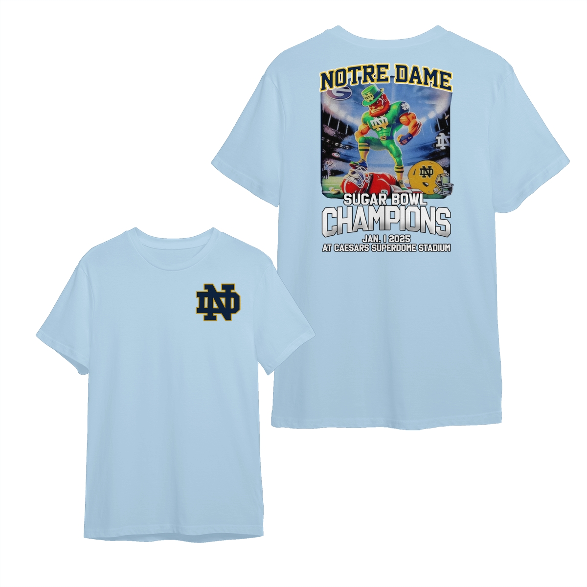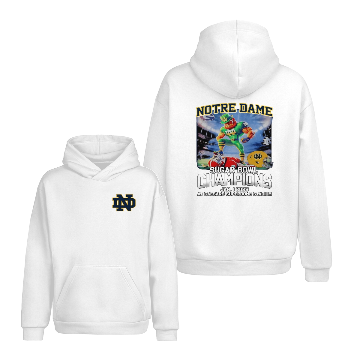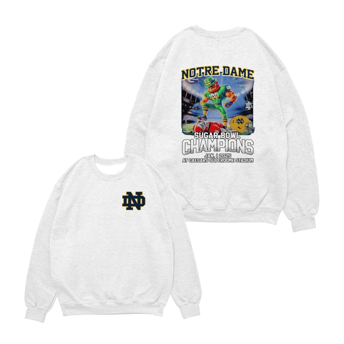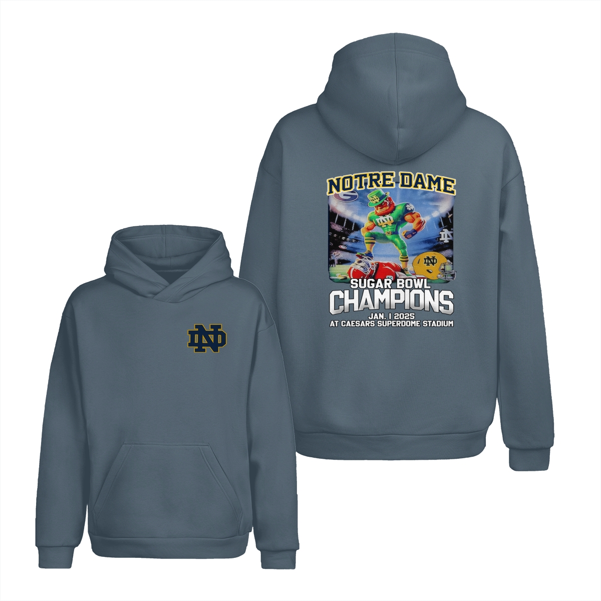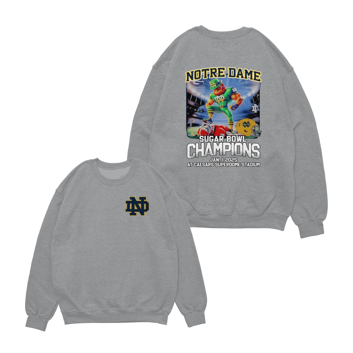 Notre Dame Fighting Irish 2025 Sugar Bowl Champs Shirt Mascot Shirt Classic Cotton Sweaters Menswear football fan Stylish Hoodie Love Sport