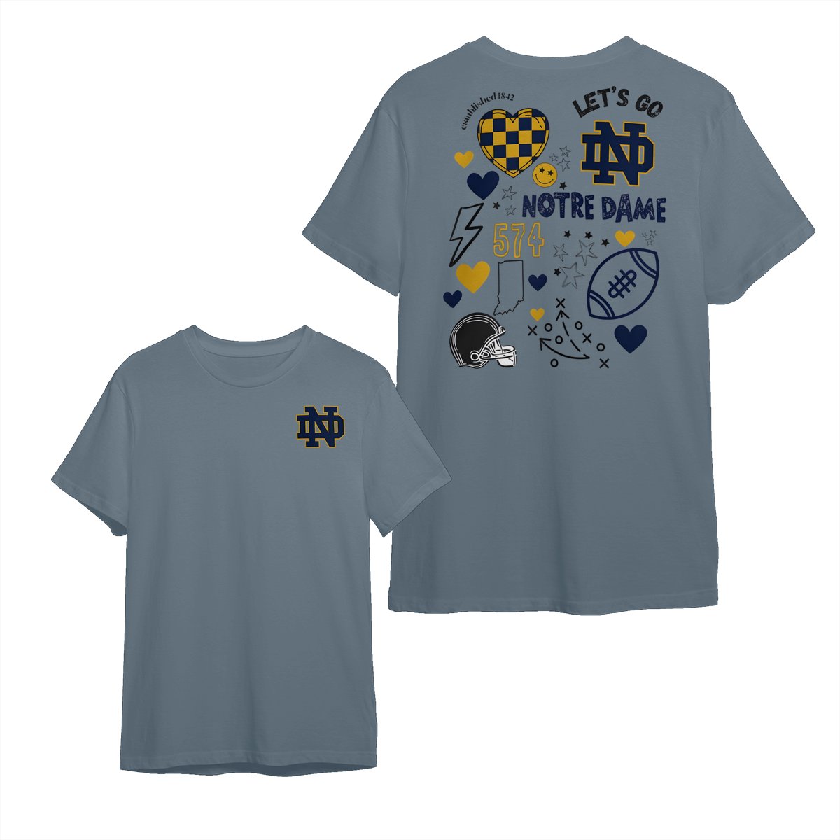 Notre Dame Fighting Irish Game Day Vintage Football T-Shirt, Retro Sport Style Crewneck Shirt for Football Fans, Unisex, Graphic tee, Vintage College Football, Classic College NCAA Shirt Top Cotton Full Size Full Color Fit Womenswear Menswear Bottom Check