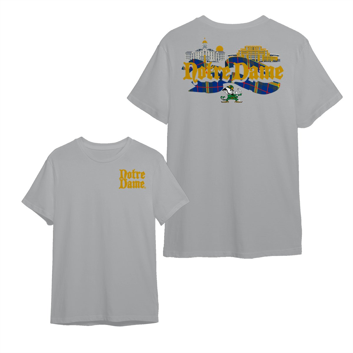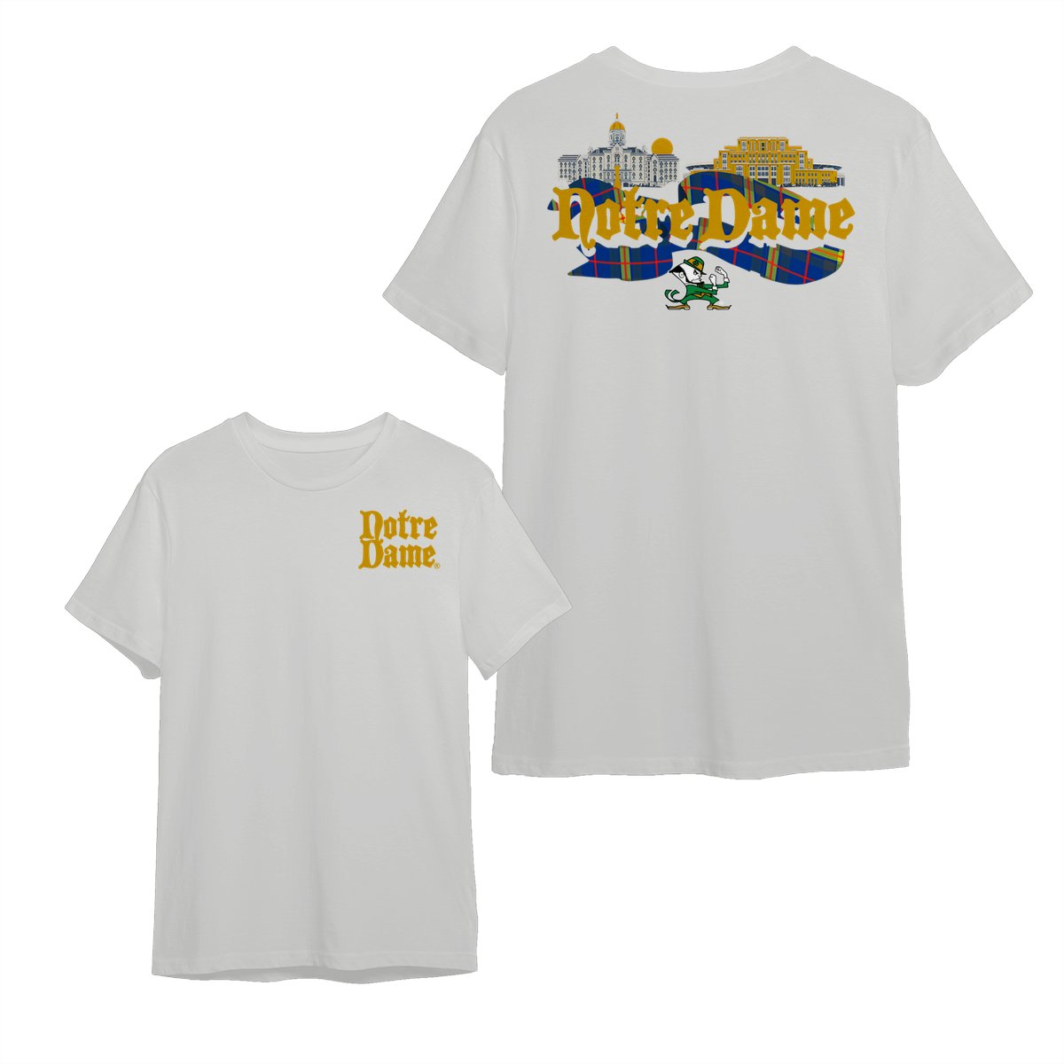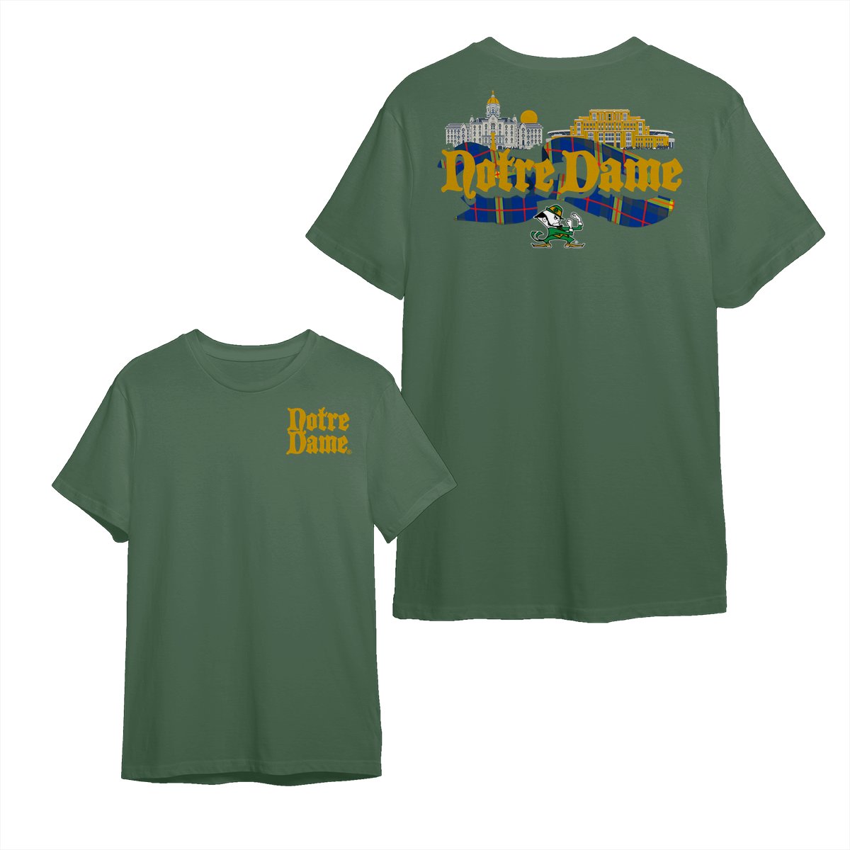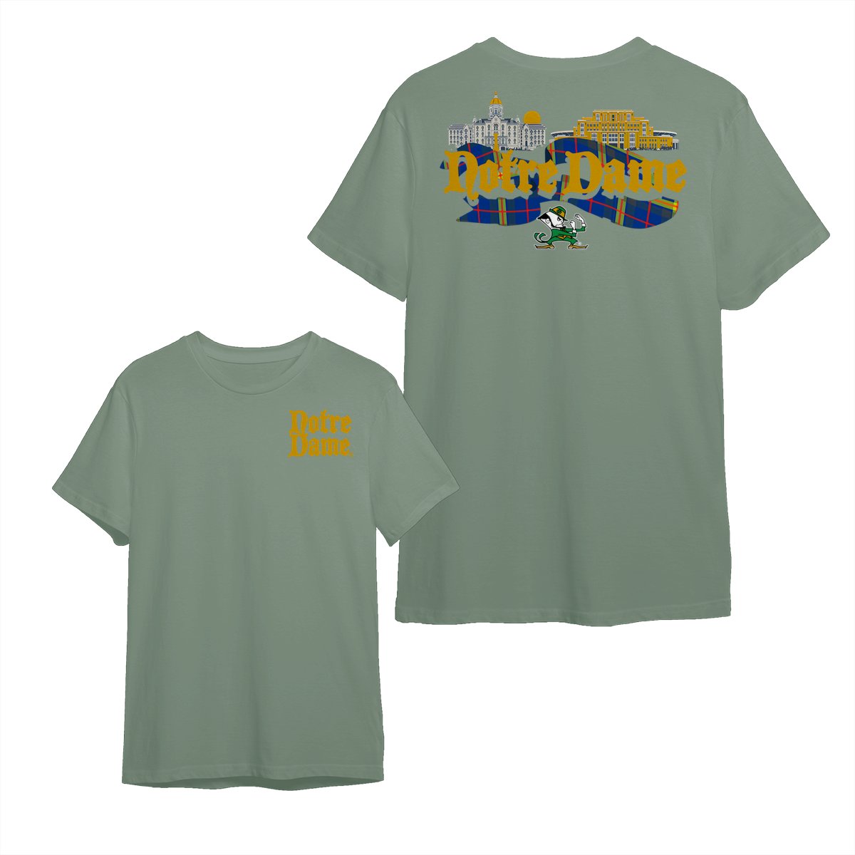 Notre Dame Fighting Irish T-Shirt, Sunset Graphic Tee with Retro ND Logo, College Campus Style Unisex Football Shirt