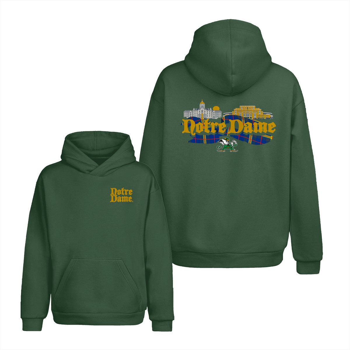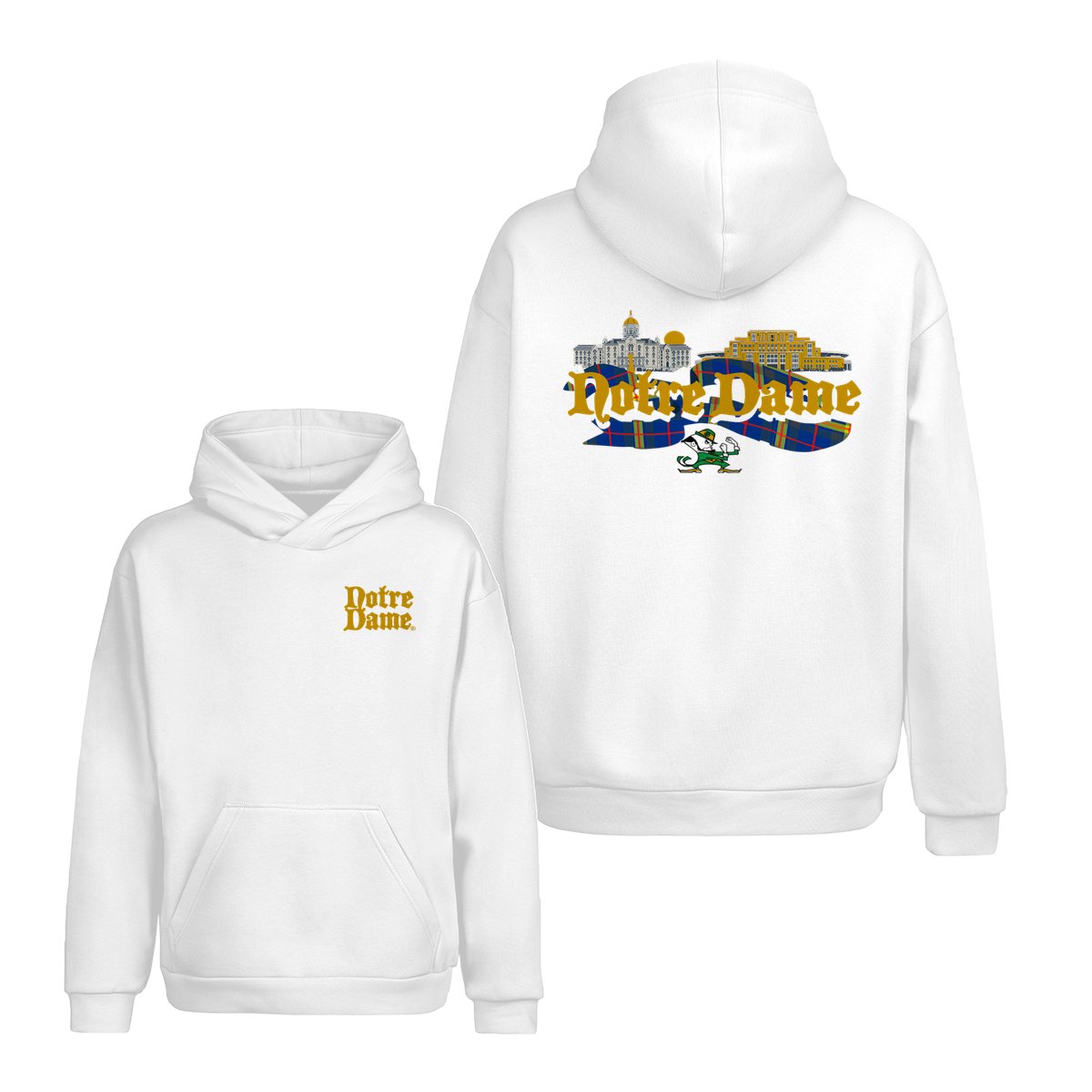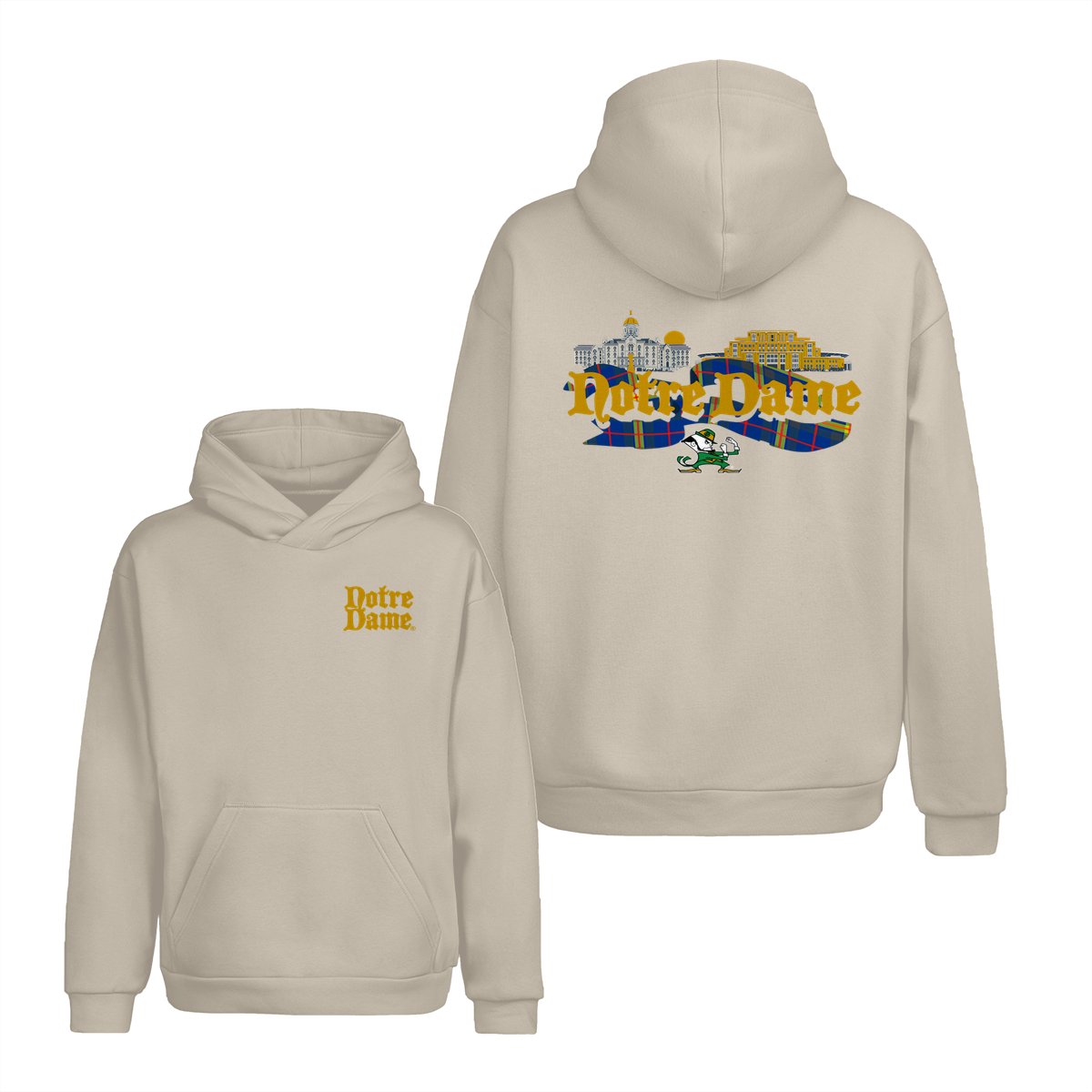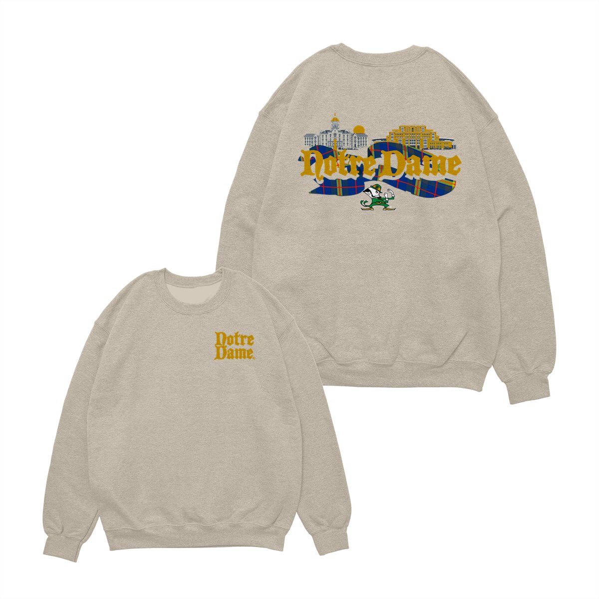 Notre Dame Fighting Irish T-Shirt, Sunset Graphic Tee with Retro ND Logo, College Campus Style Unisex Football Shirt