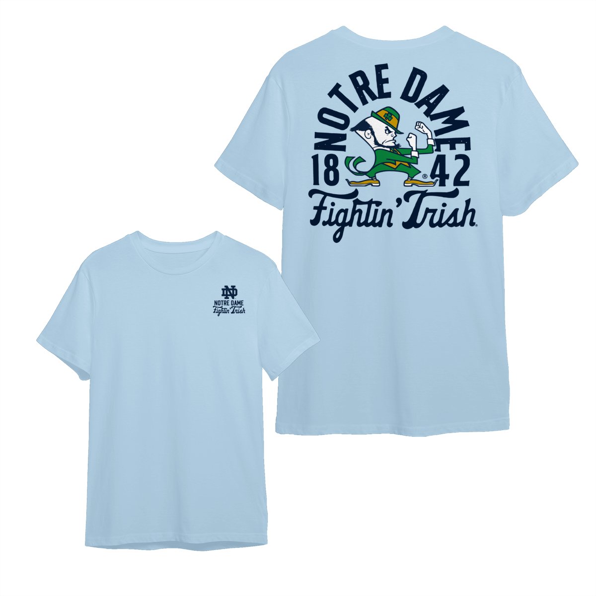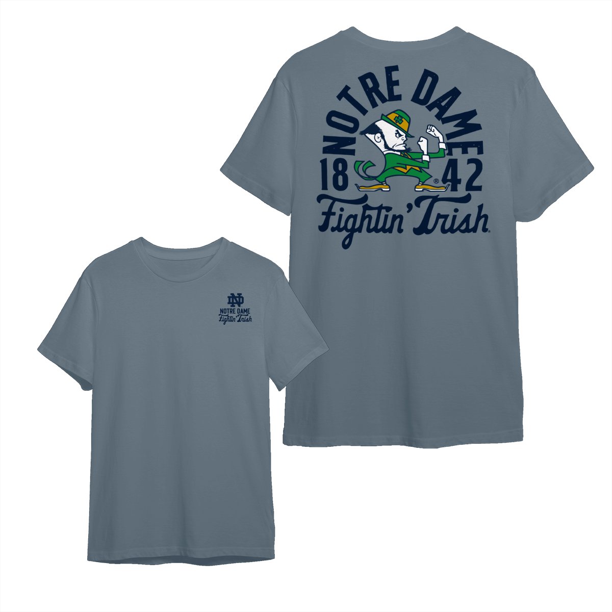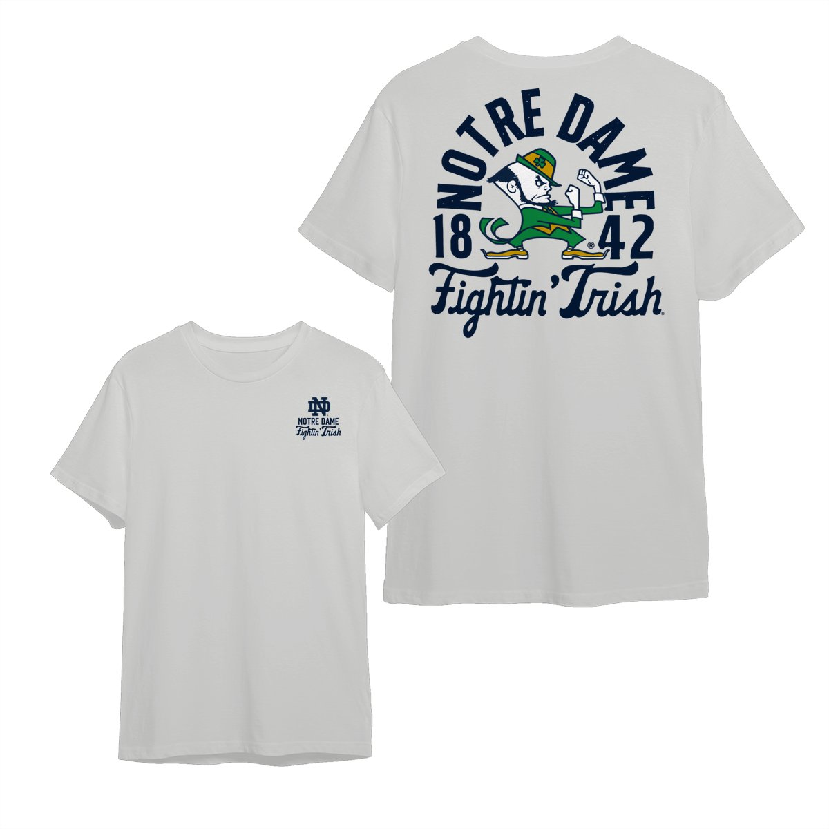 Notre Dame Fighting Irish Team NCAA Graphic Mascot Overlay 2 Side T-Shirt, Vintage College Graphic Tee, Sport Fan Gift Shirt, Men’s Oversized Athletic Tshirt