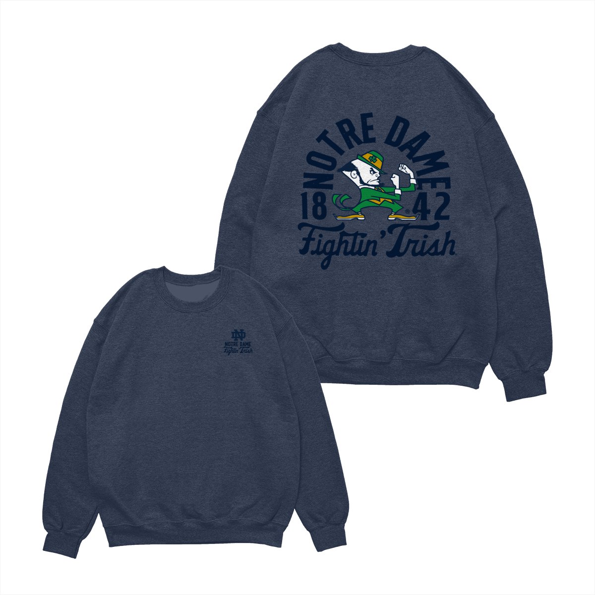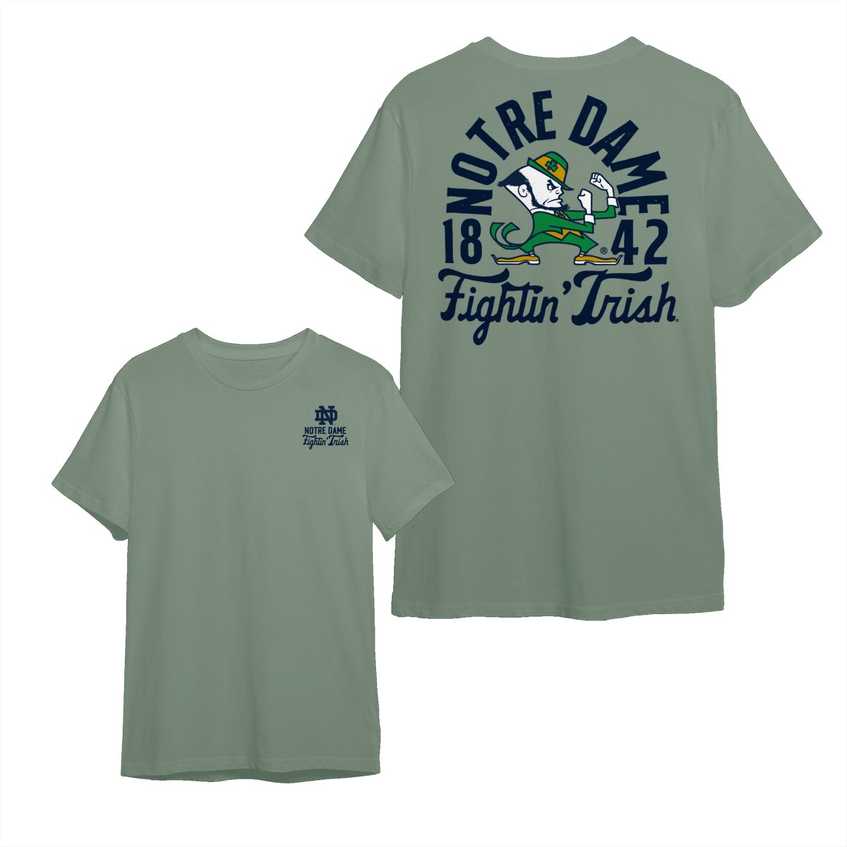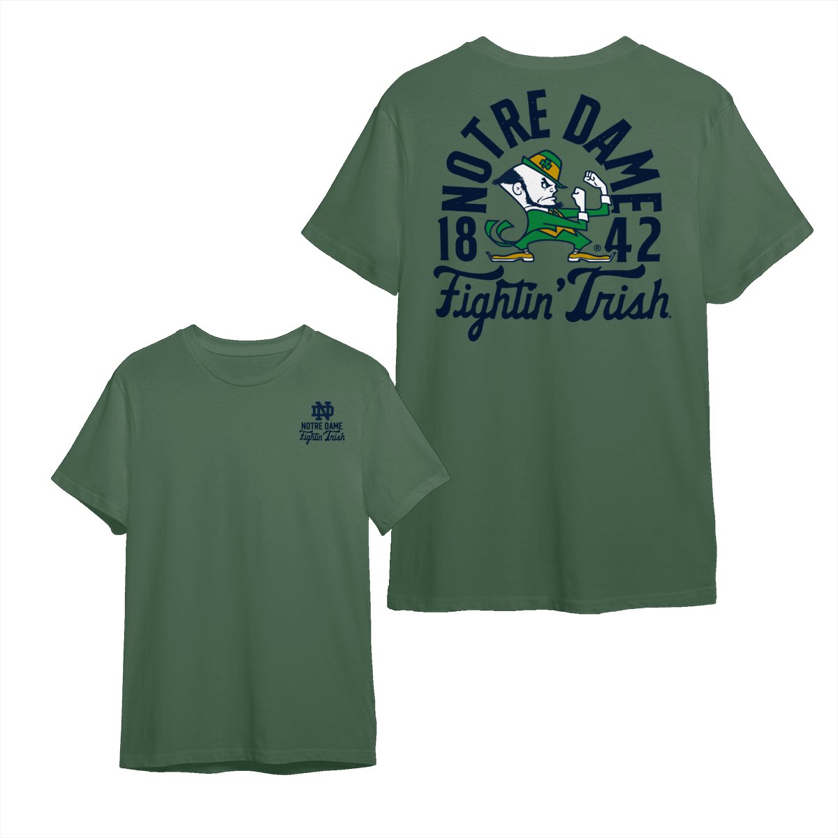 Notre Dame Fighting Irish Team NCAA Graphic Mascot Overlay 2 Side T-Shirt, Vintage College Graphic Tee, Sport Fan Gift Shirt, Men’s Oversized Athletic Tshirt