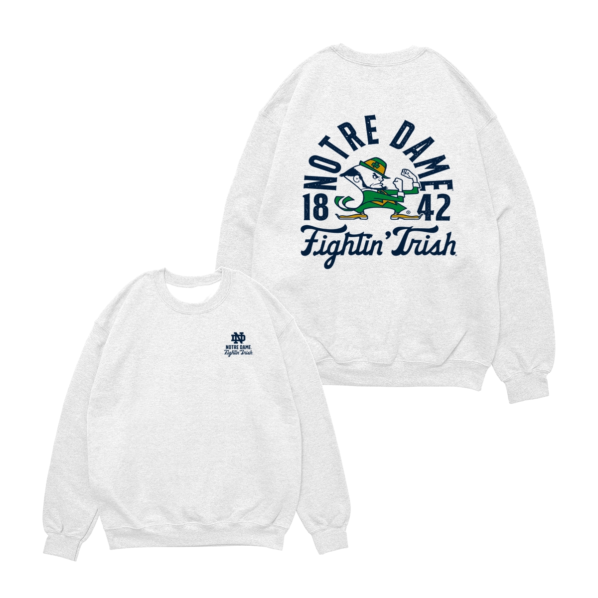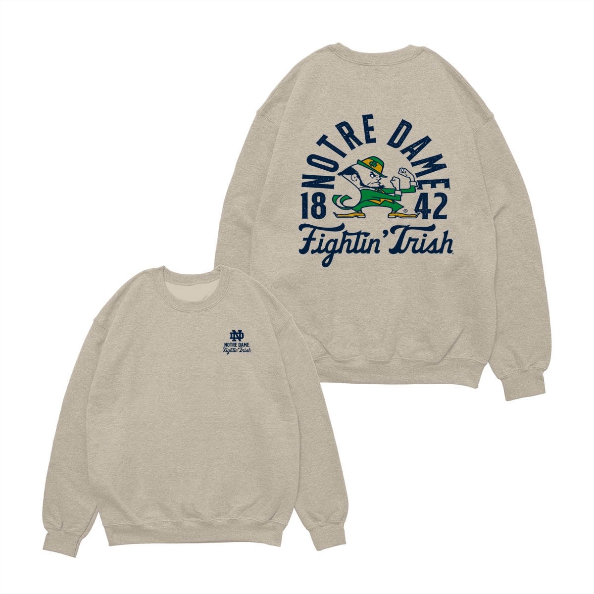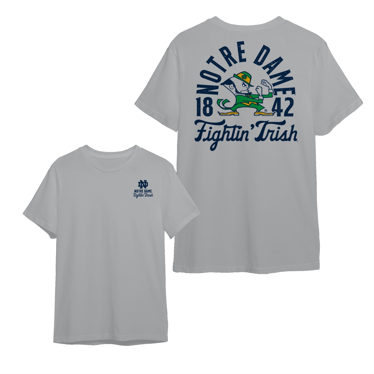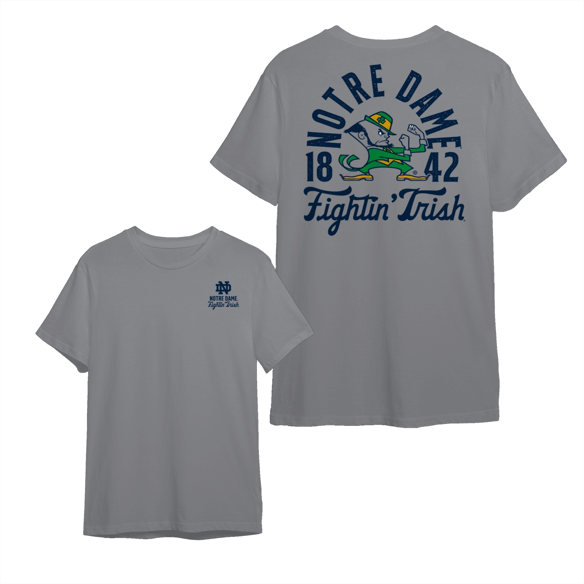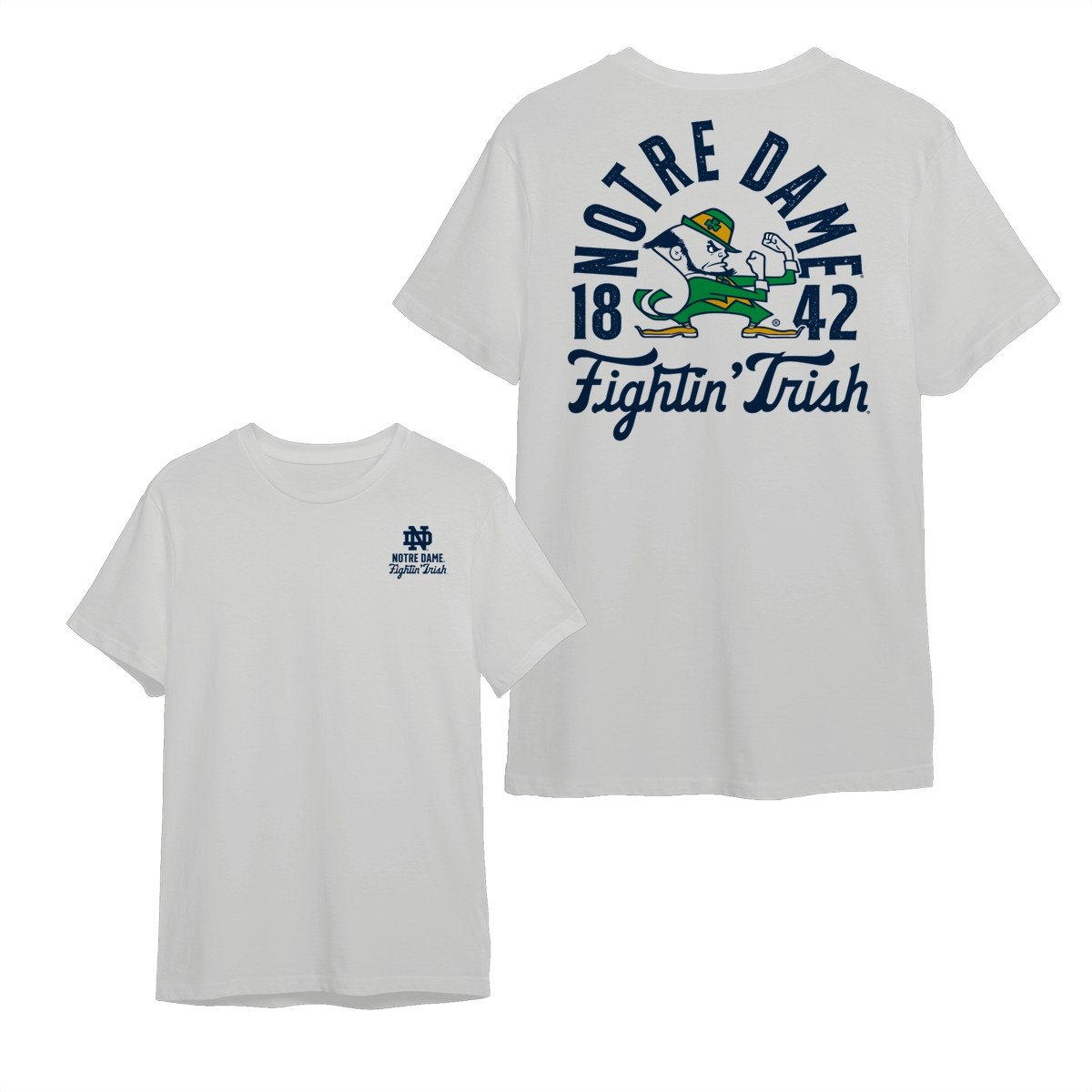 Notre Dame FIghting Irish Teams NCAA Pullover T-Shirt, Double-Sided College Mascot Graphic Tee, Vintage All-Team Style, Oversized Crewneck for Men’s Athletics