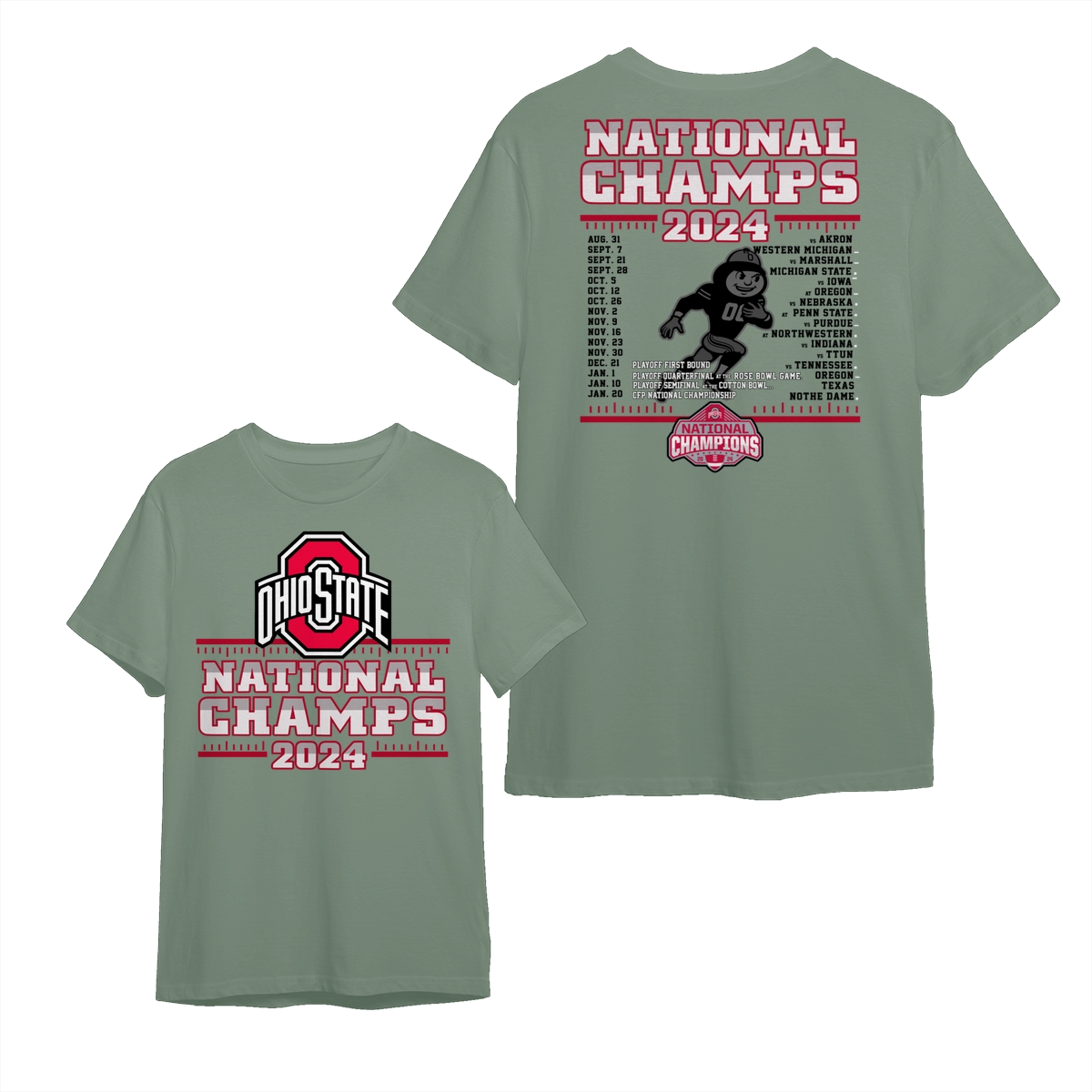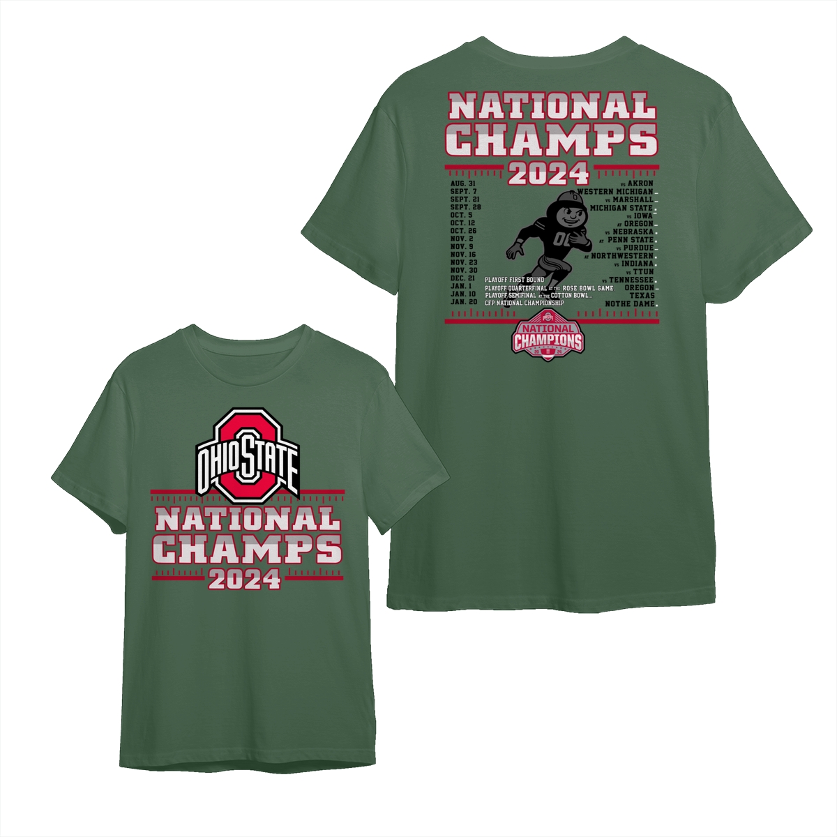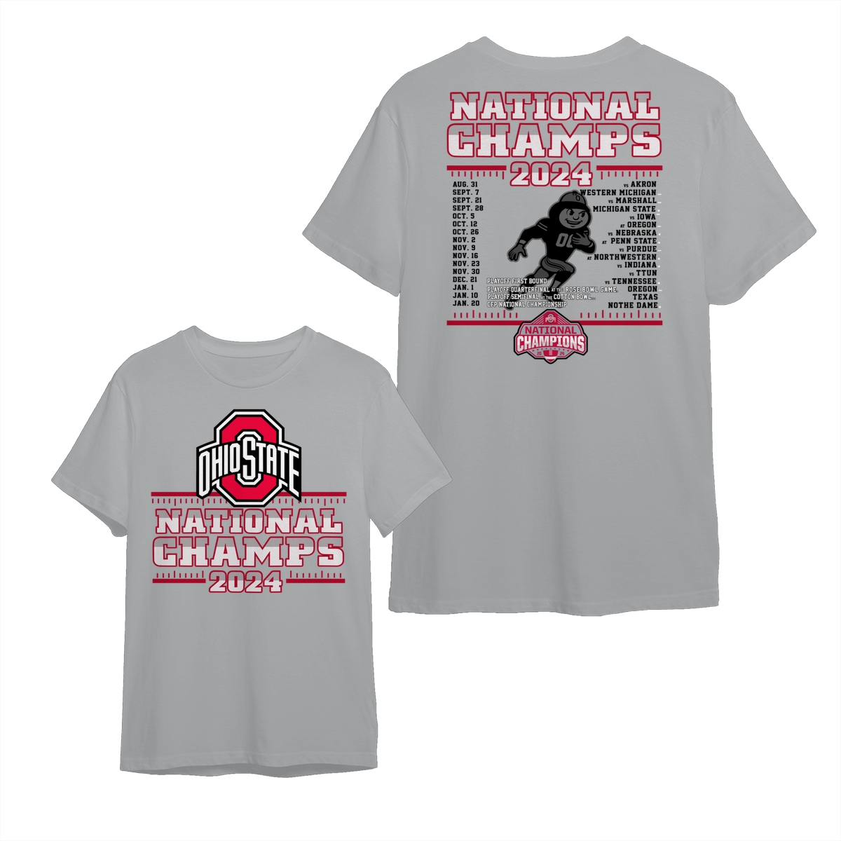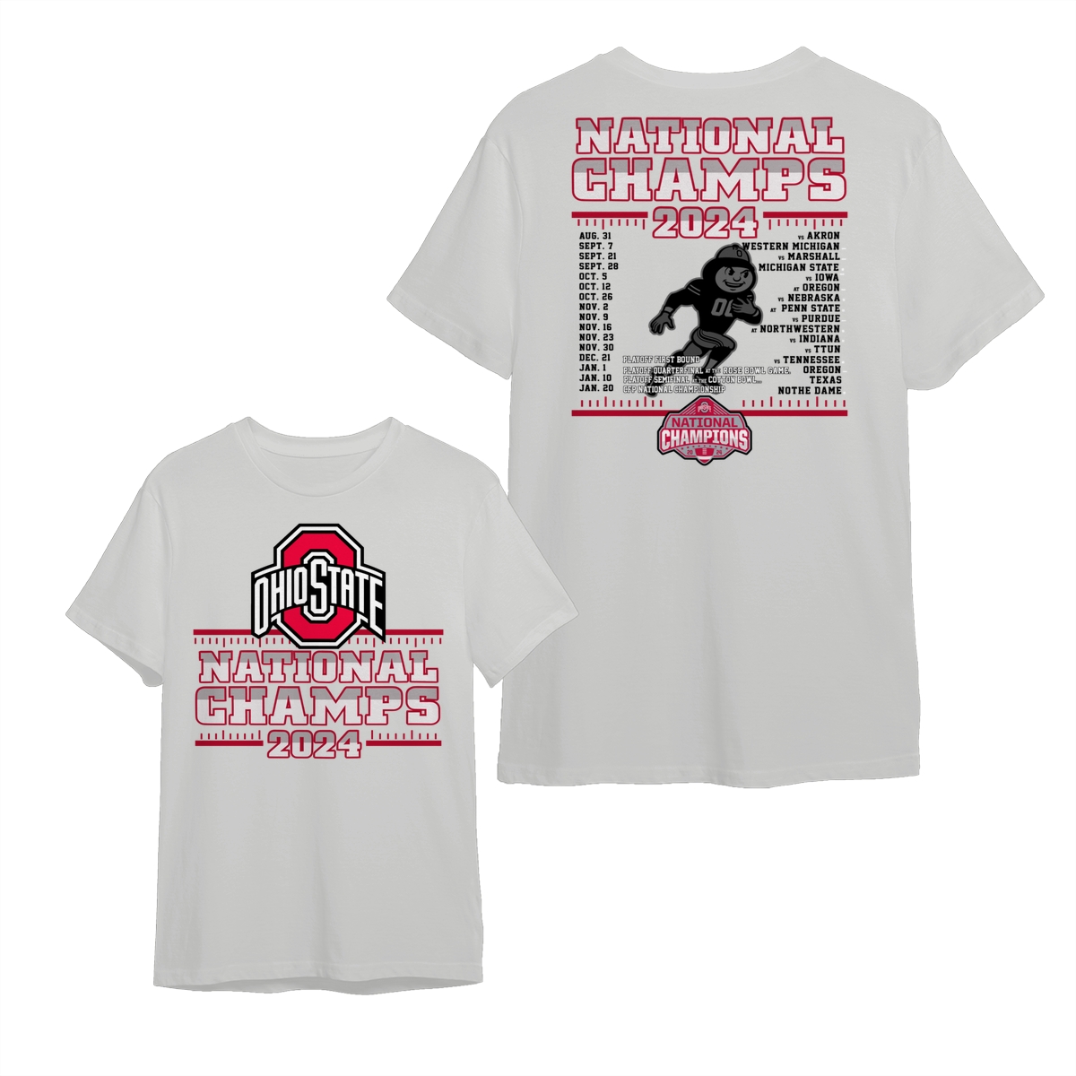 Ohio State Buckeyes College Football Playoff 2024 National Champions Schedule T-Shirt, Front and Back Graphic Tee for Fans