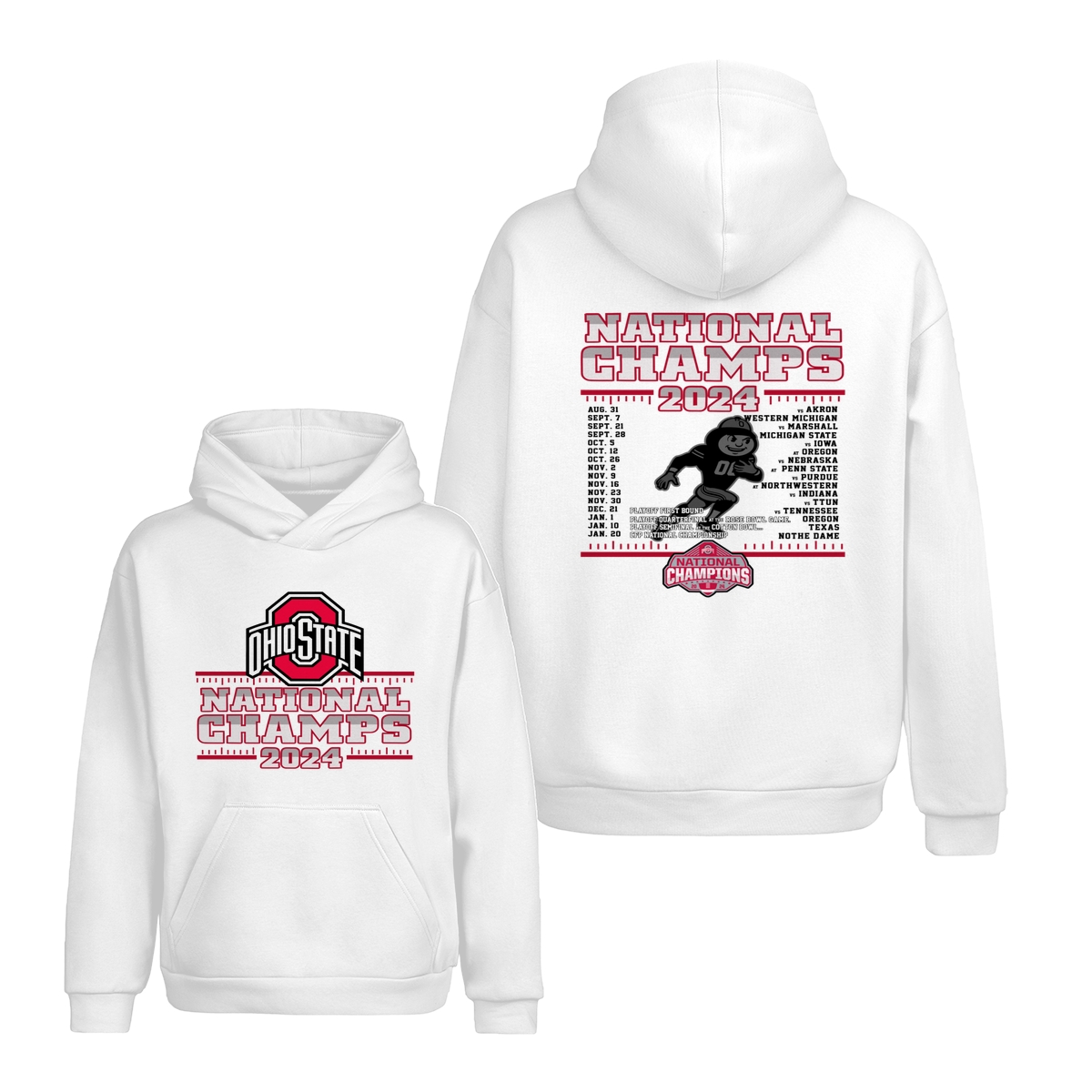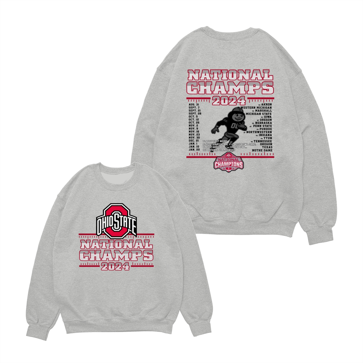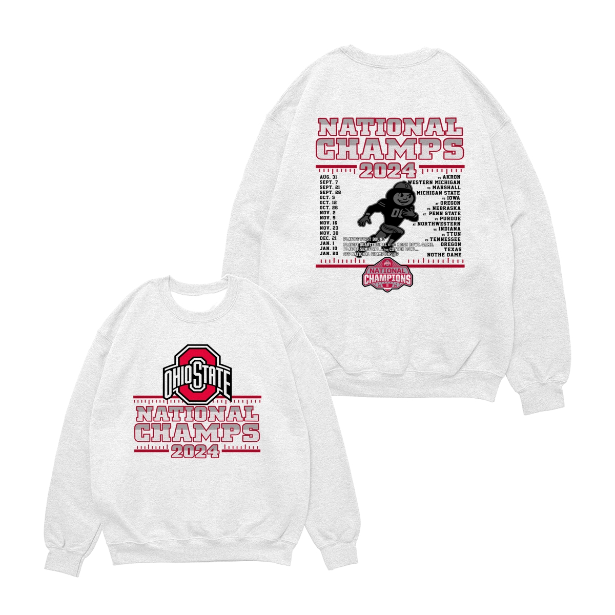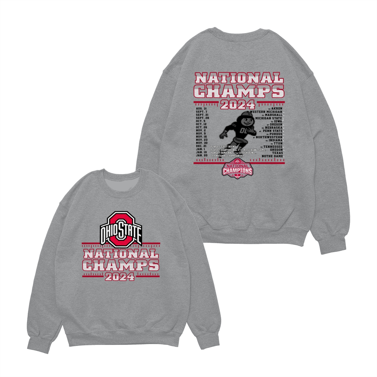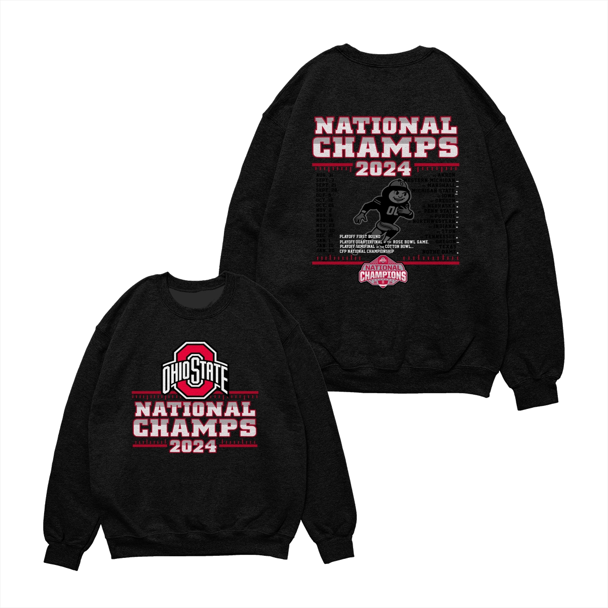 Ohio State Buckeyes College Football Playoff 2024 National Champions Schedule T-Shirt, Front and Back Graphic Tee for Fans
