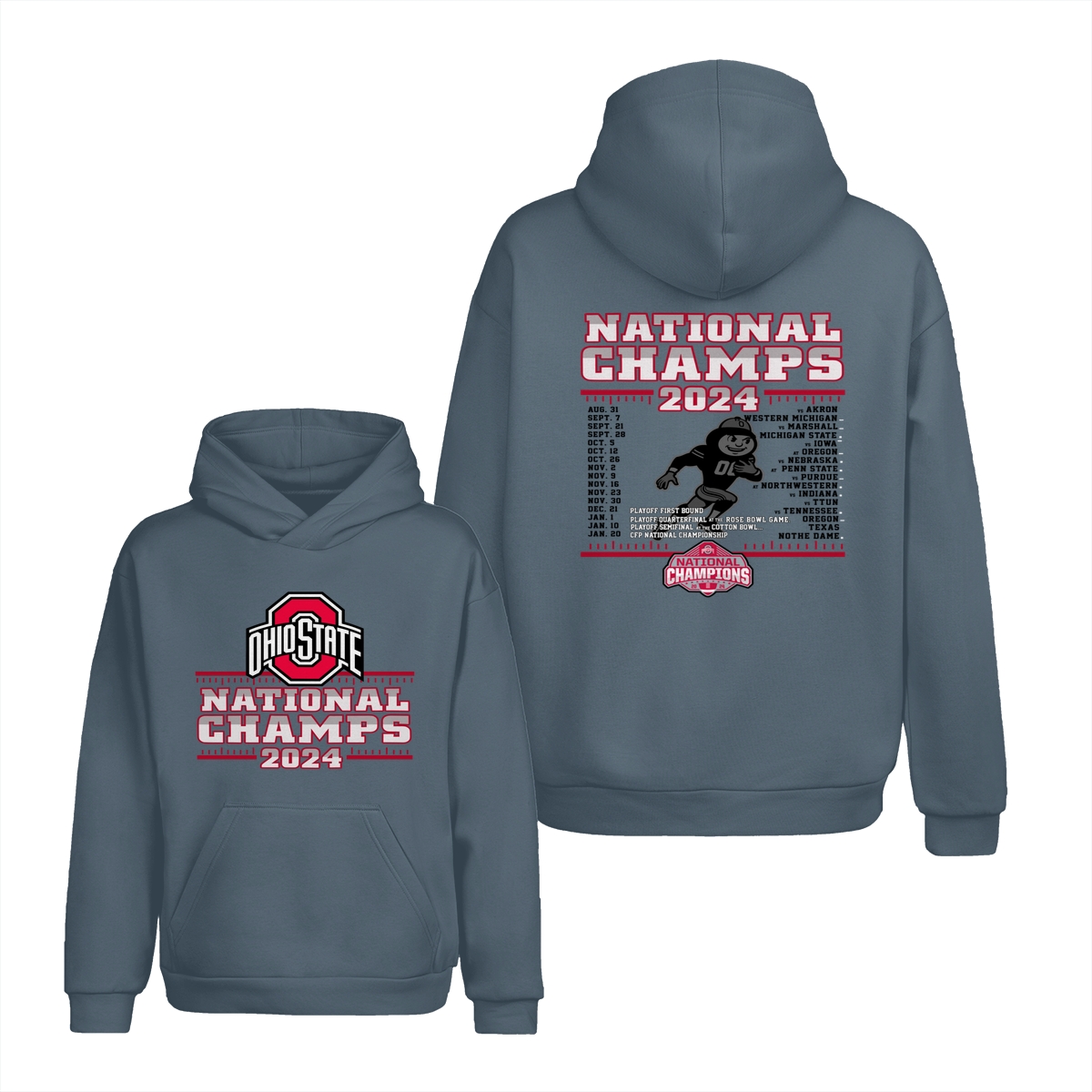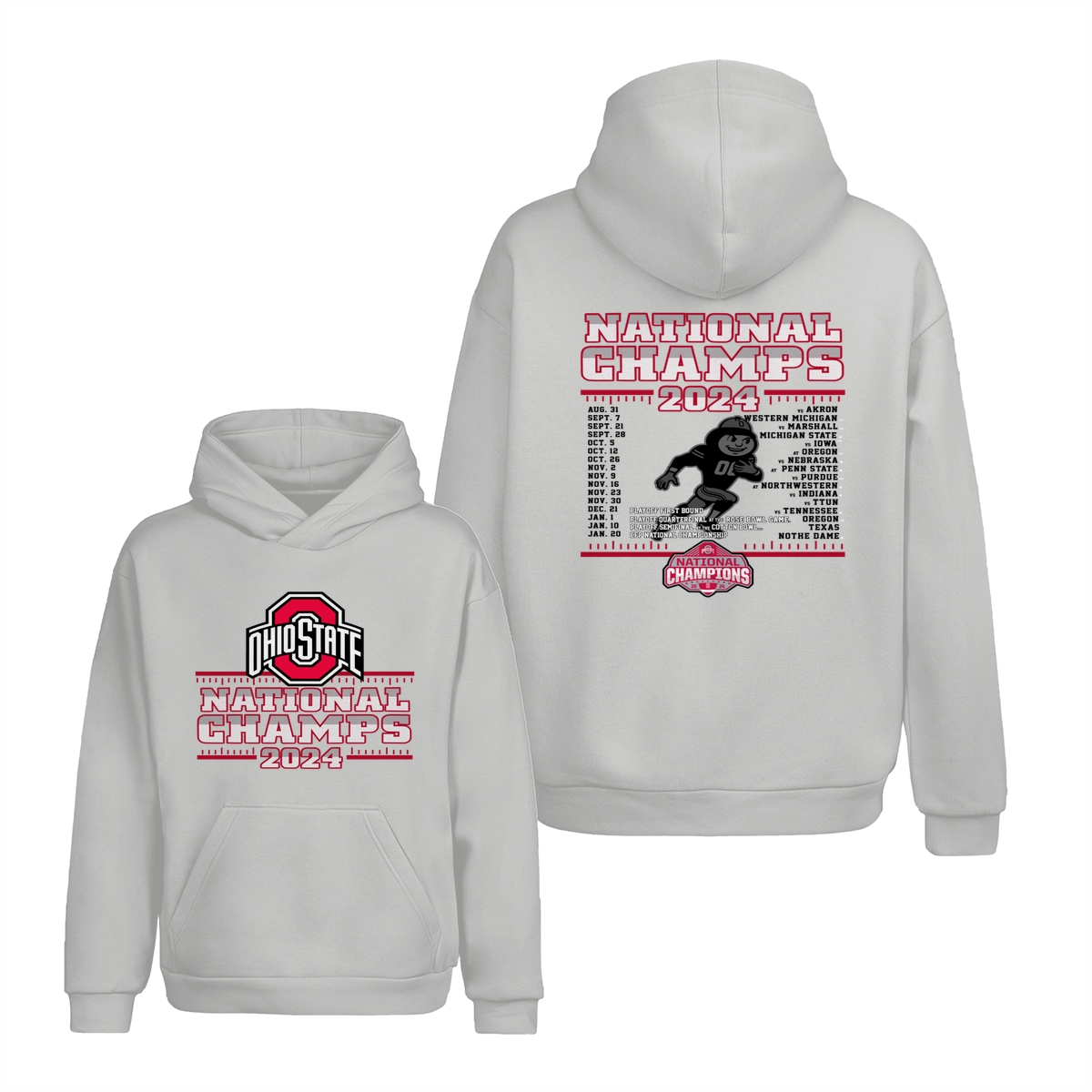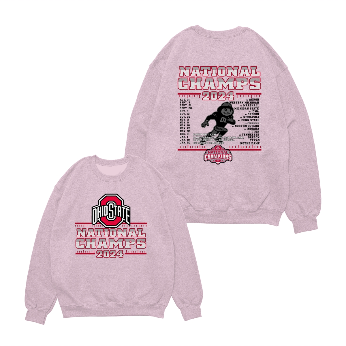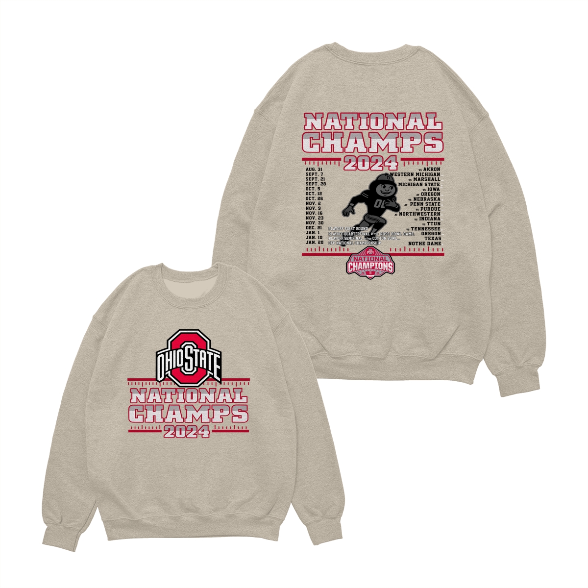 Ohio State Buckeyes College Football Playoff 2024 National Champions Schedule T-Shirt, Front and Back Graphic Tee for Fans