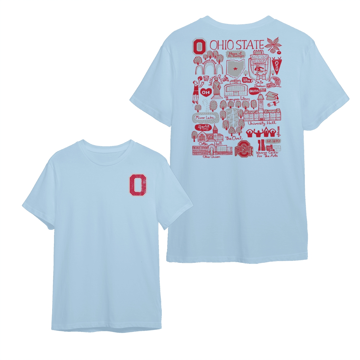 Ohio State Buckeyes Impressions Artwork T-Shirt, Vintage NCAA Ohio State T-Shirt 2 Side College Tee, Gift For Men, For Women, Gift For Fans.