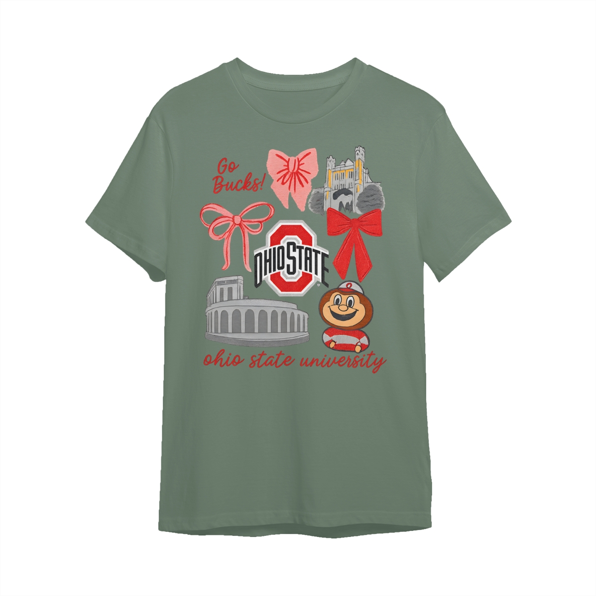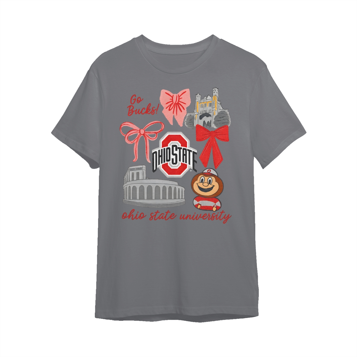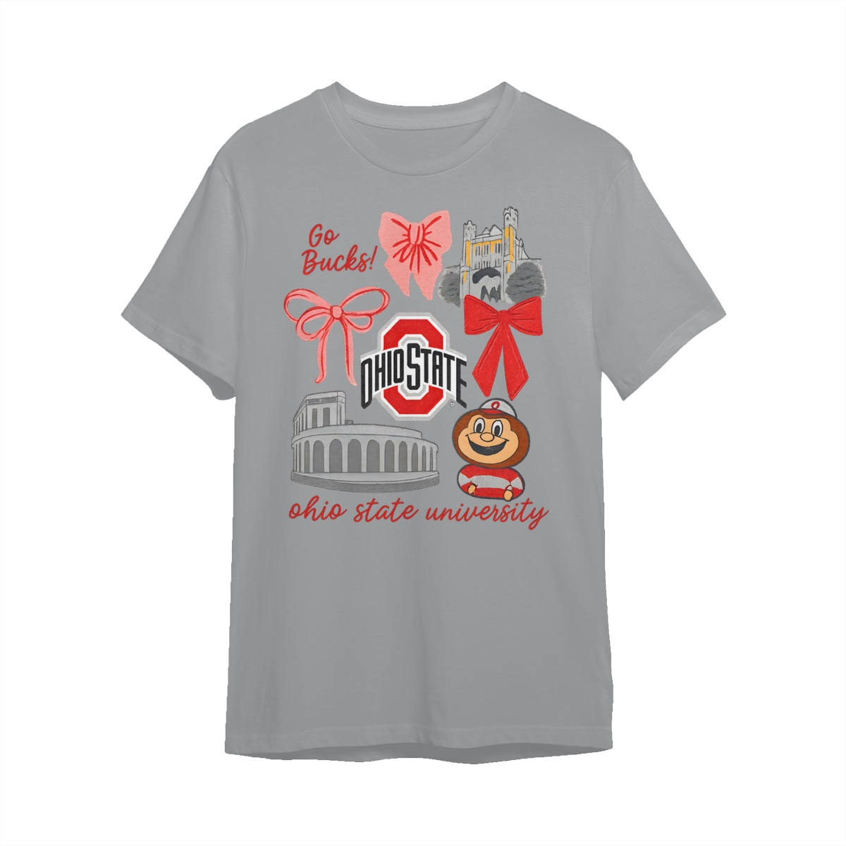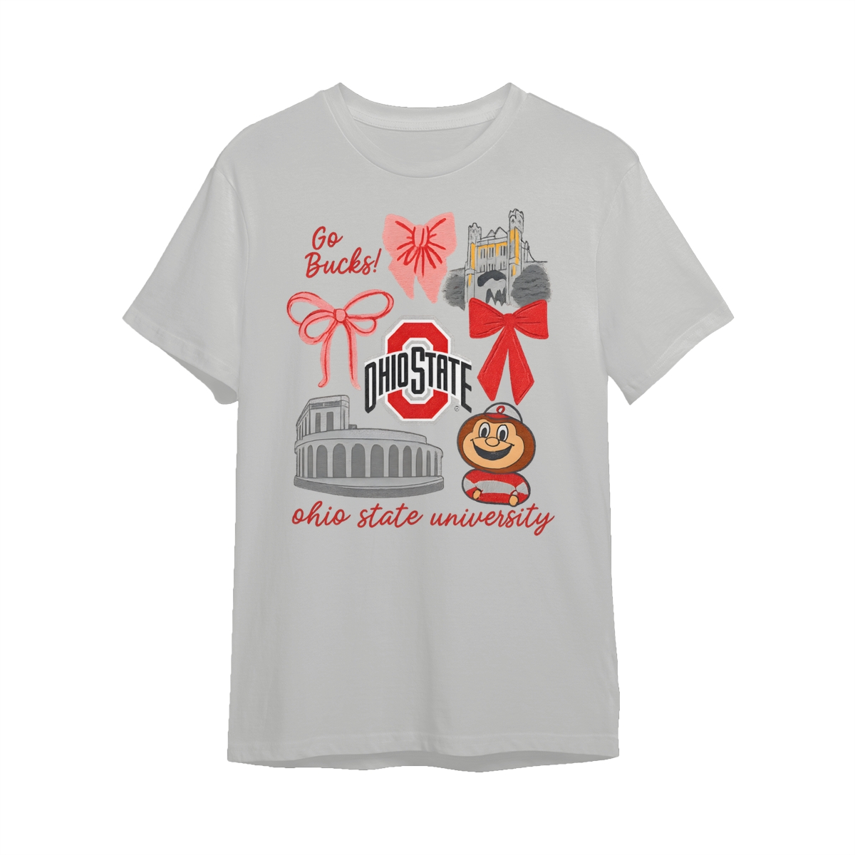 Ohio State Buckeyes Vintage Coquette NCAA College T-Shirt – Teams Retro Cotton Crewneck, Preppy Girly Game Day Outfit, Cute Football Fan Tee, Sporty Fall Season Top, Trendy Gift for College Game Lovers Hand-Drawn T-Shirt