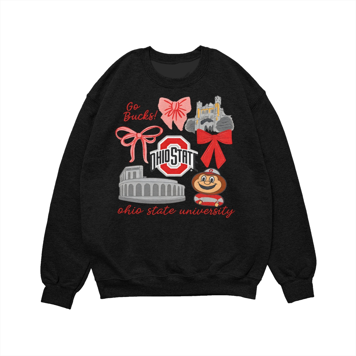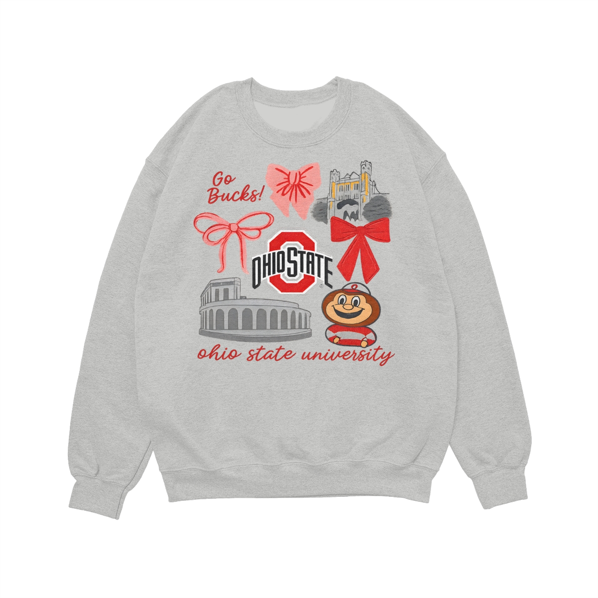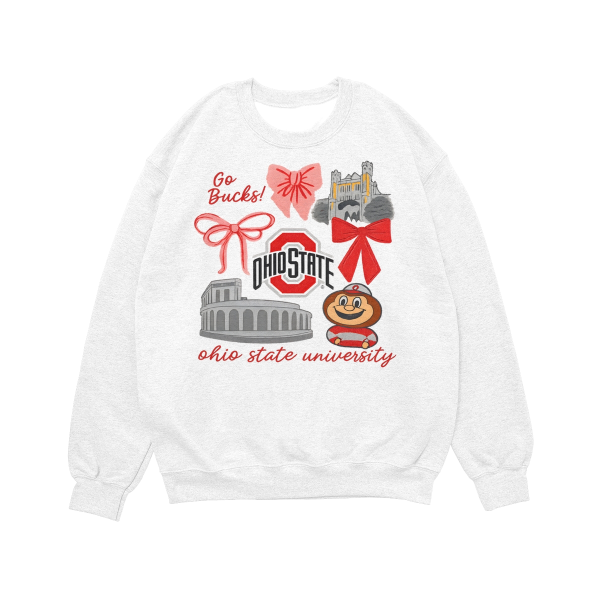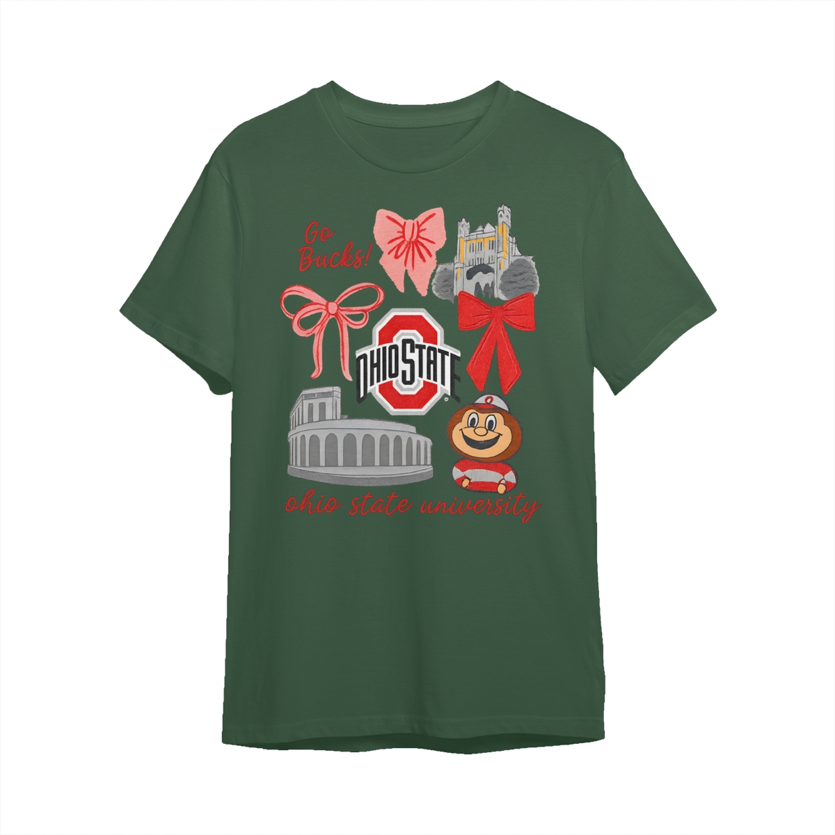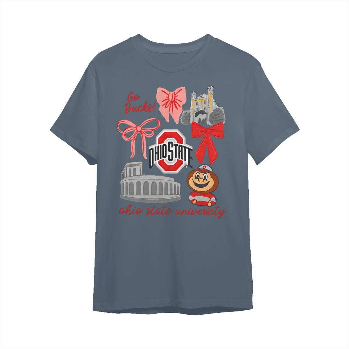 Ohio State Buckeyes Vintage Coquette NCAA College T-Shirt – Teams Retro Cotton Crewneck, Preppy Girly Game Day Outfit, Cute Football Fan Tee, Sporty Fall Season Top, Trendy Gift for College Game Lovers Hand-Drawn T-Shirt