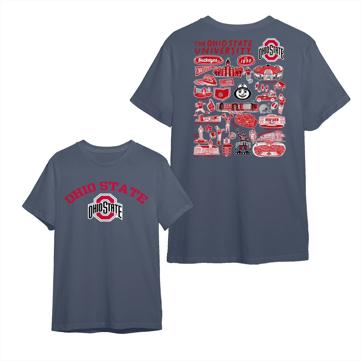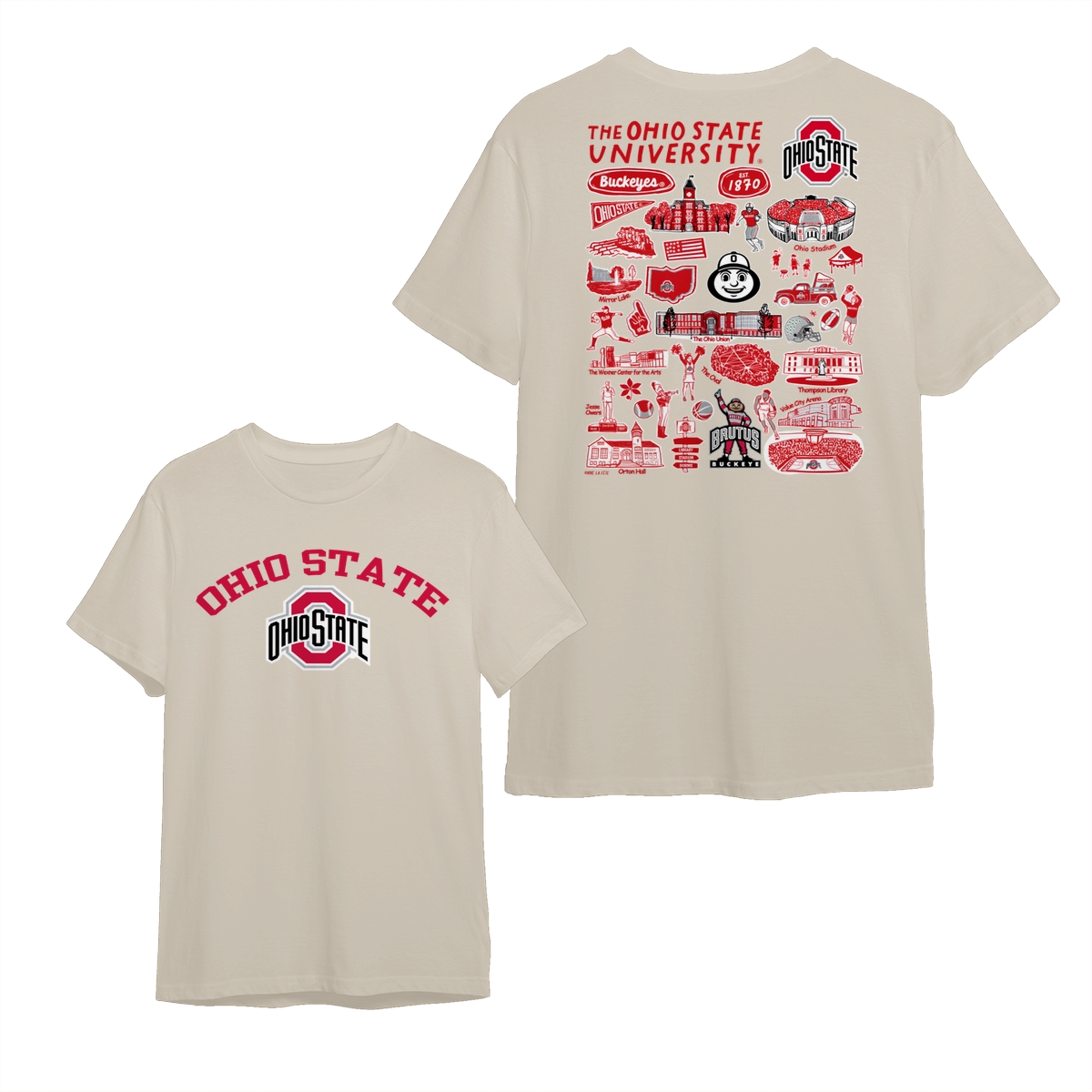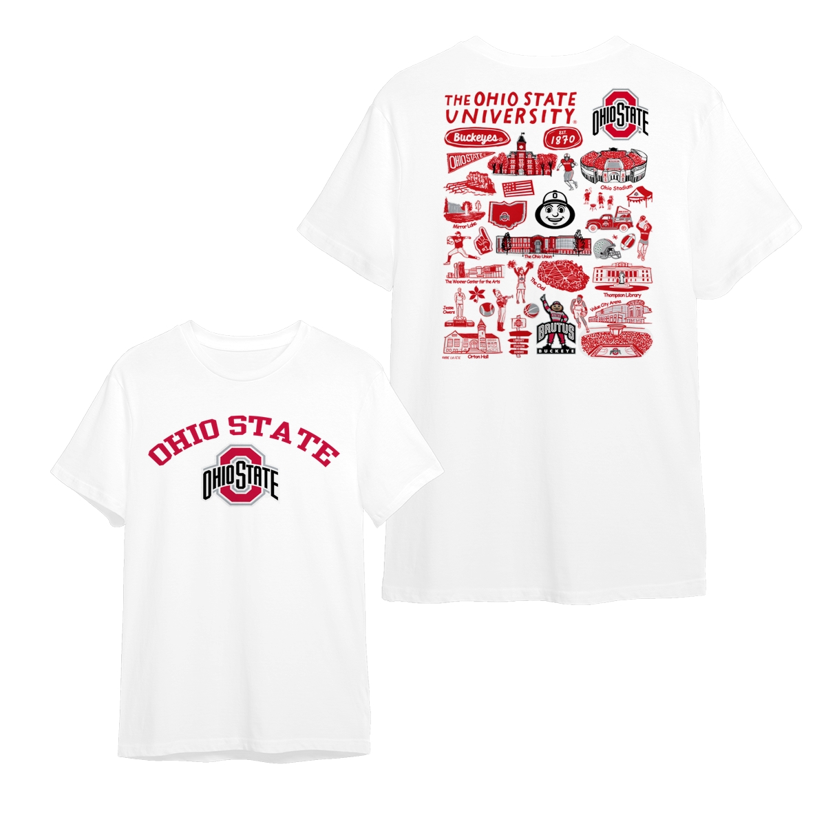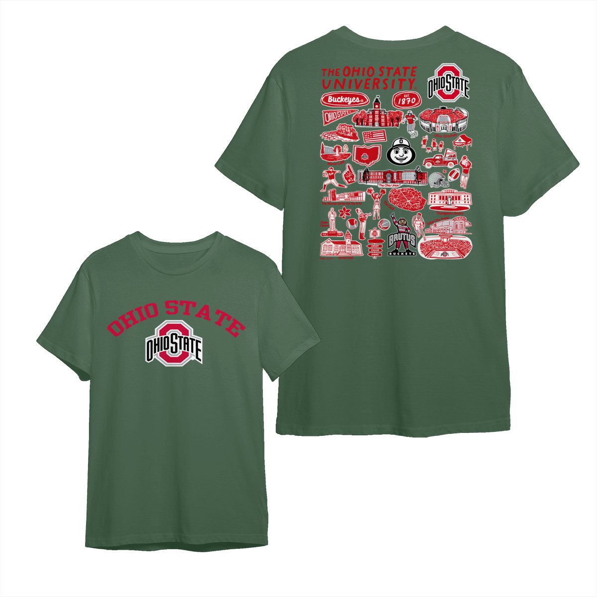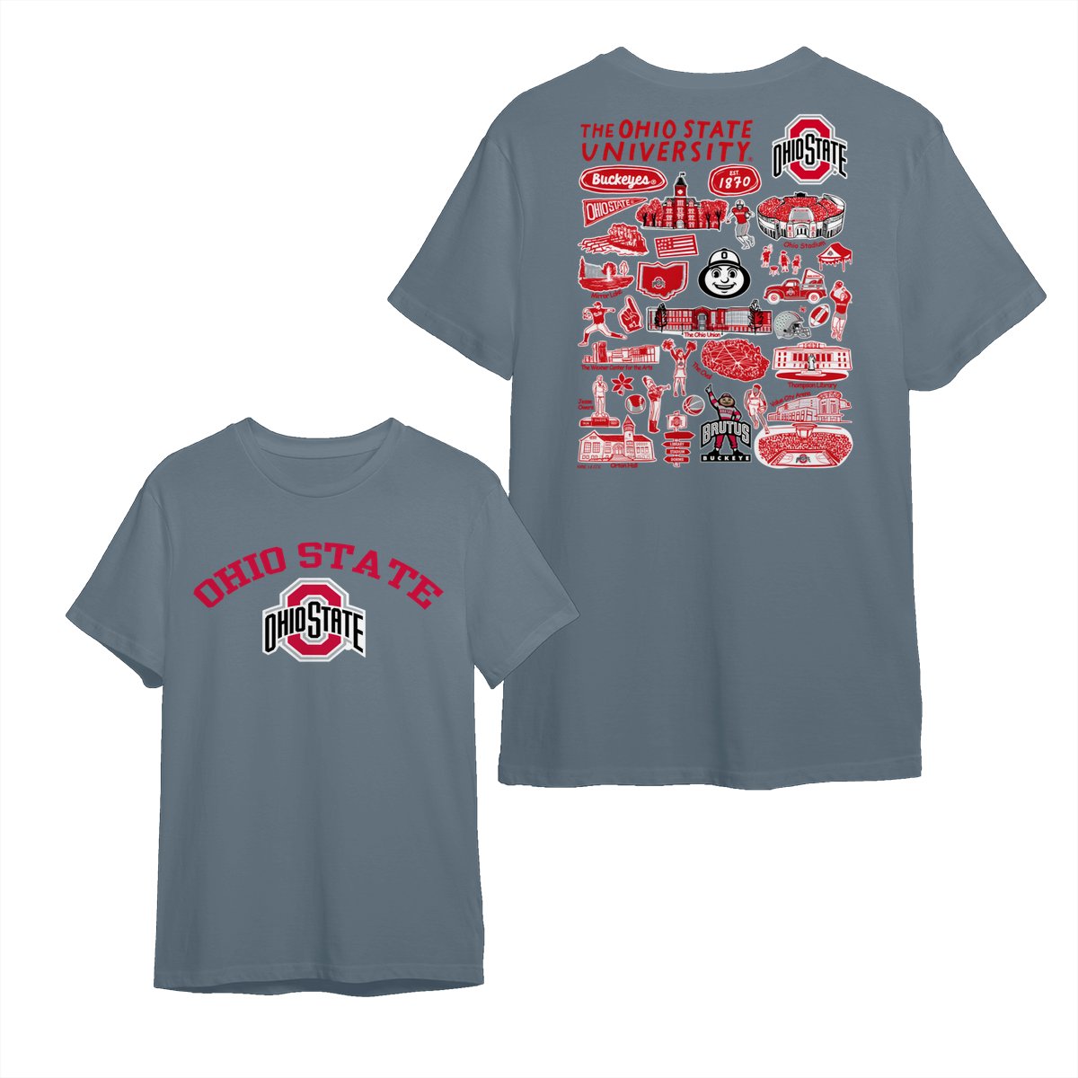 Ohio State College NCAA Graphic T-Shirts – Hand-Drawn Logo & Campus Designs, Unisex Style, Perfect for Fans, Mens and Womens Gift, Comfortable Casual Wear for Sports Lovers