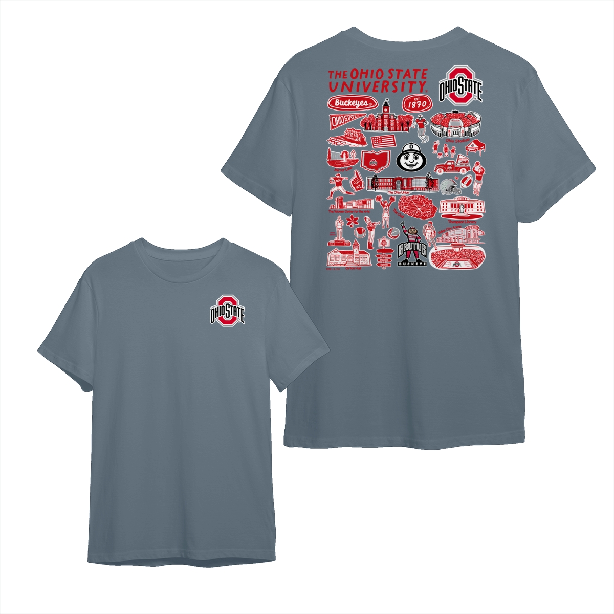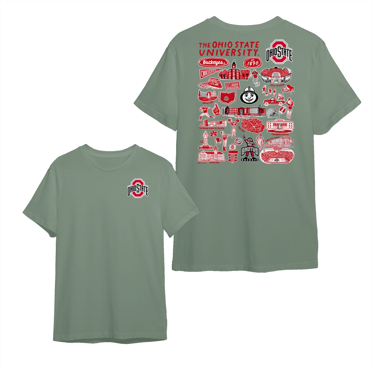Ohio Team College T-Shirt – White Color, Customize your College, Hand-Drawn University Impressions Artwork Tee for Women & Men, Casual Cotton Top, Menswear & Womenswear