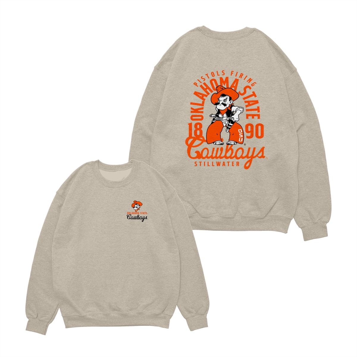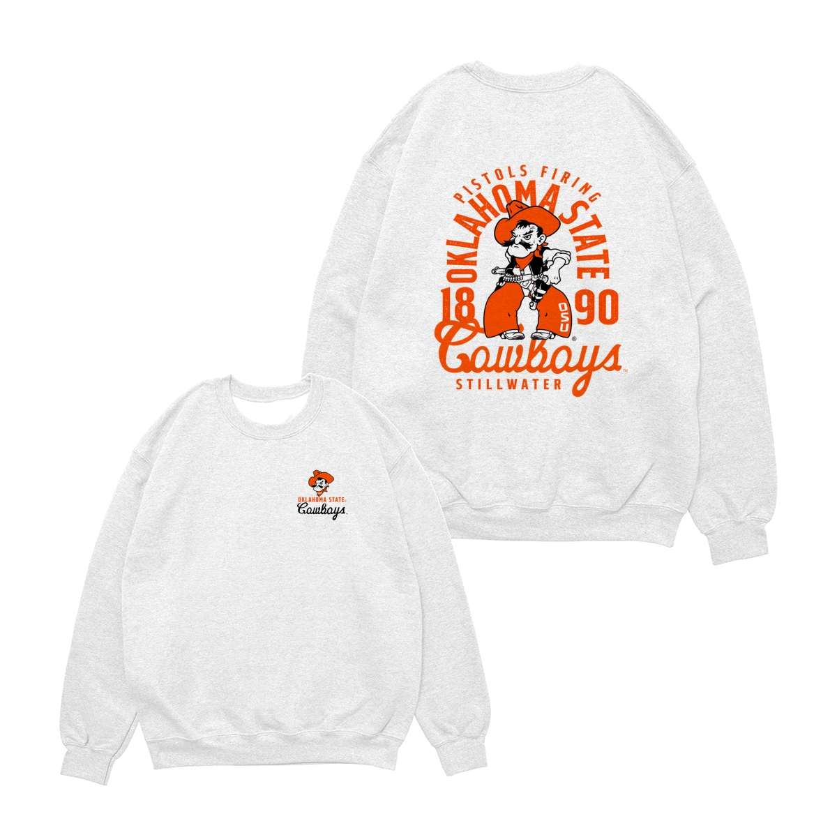 Oklahoma State Cowboys Shirt Pistols Firing OSU 1890 Graphic Sweatshirt, Stillwater College Game Day Pullover, Ash Grey Hoodie for Cowboys Fans, Vintage Unisex Campus Spirit Wear