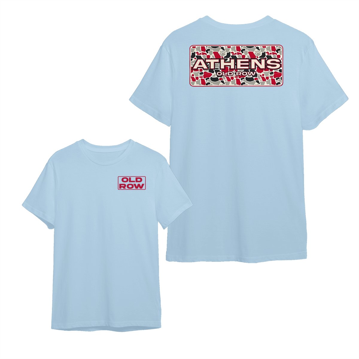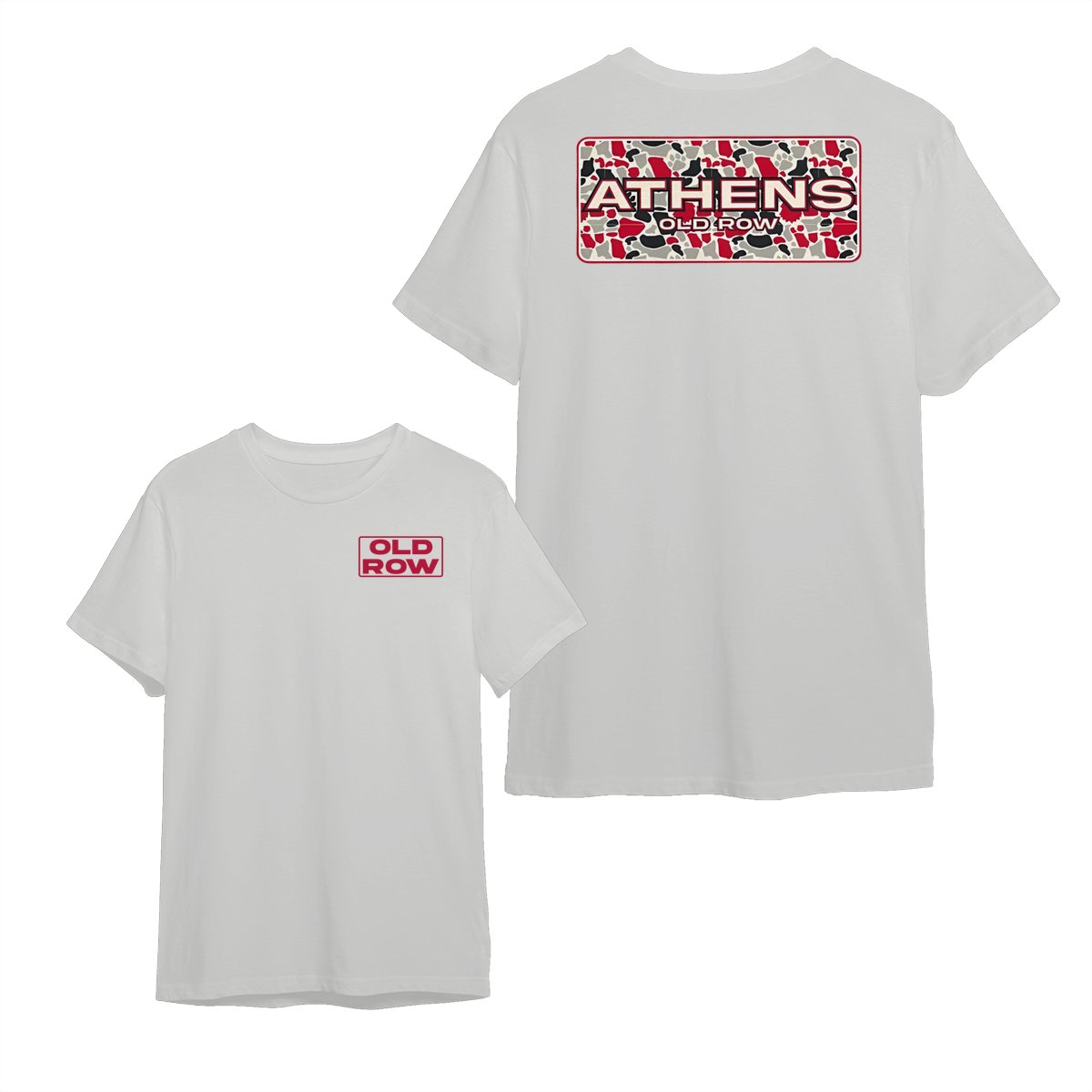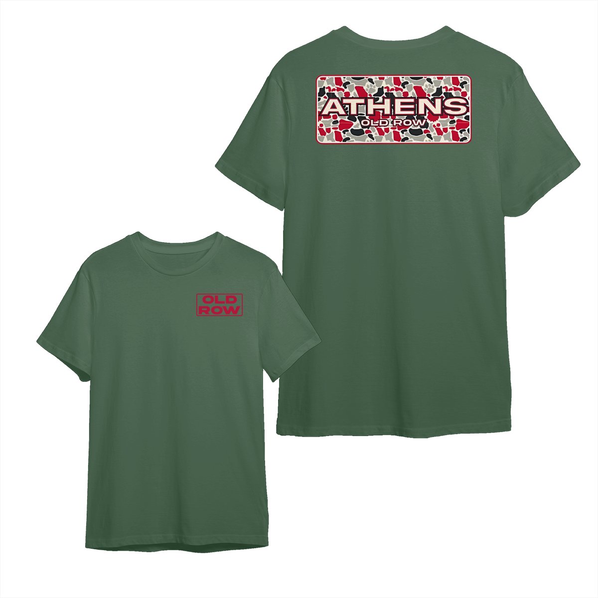 Old Row Athens Outdoor Graphic T-Shirt – Classic Camo Print Design, Premium Cotton Shirt for College Students, Outdoor Enthusiasts, and University Spirit Fans.