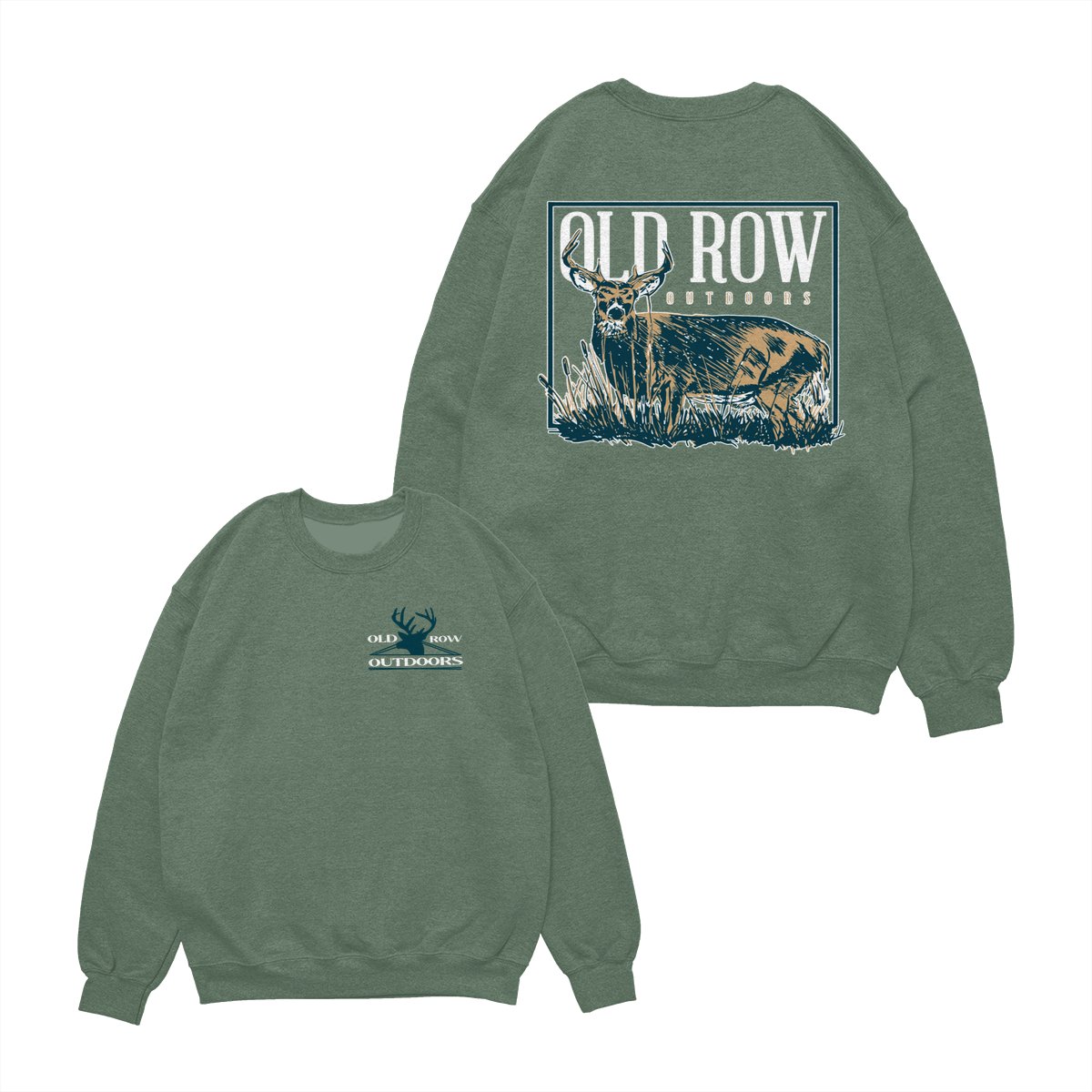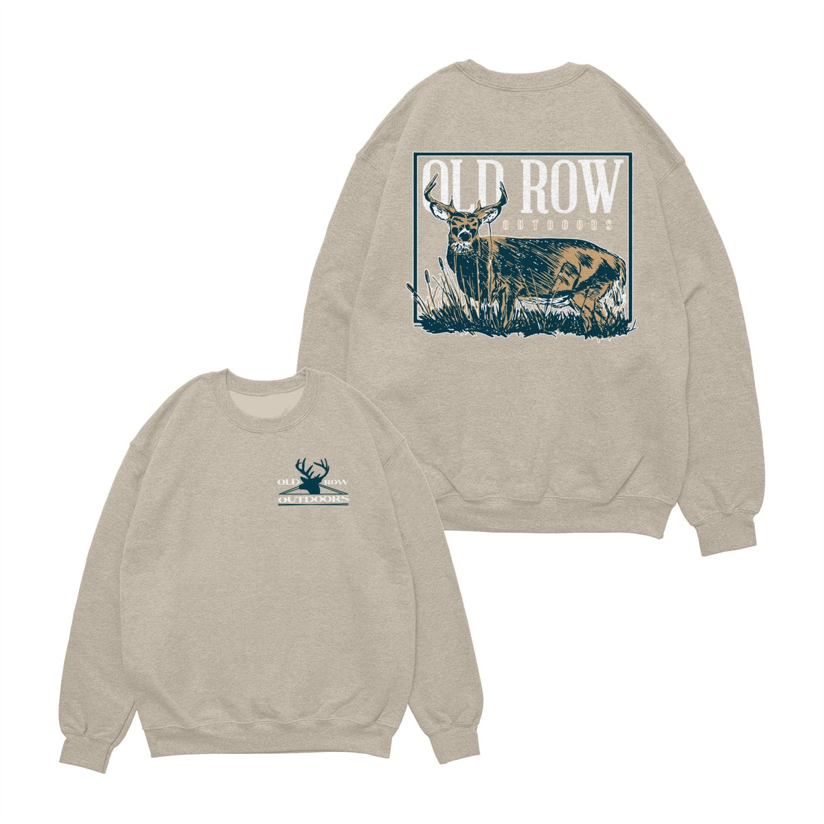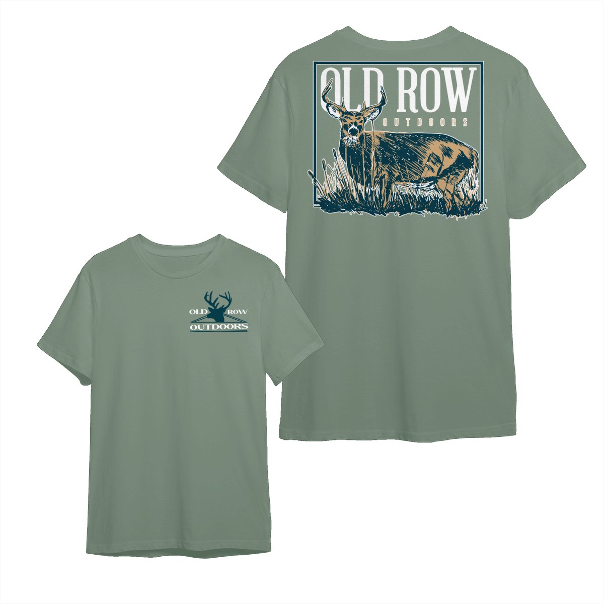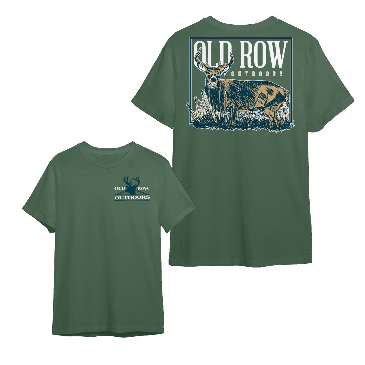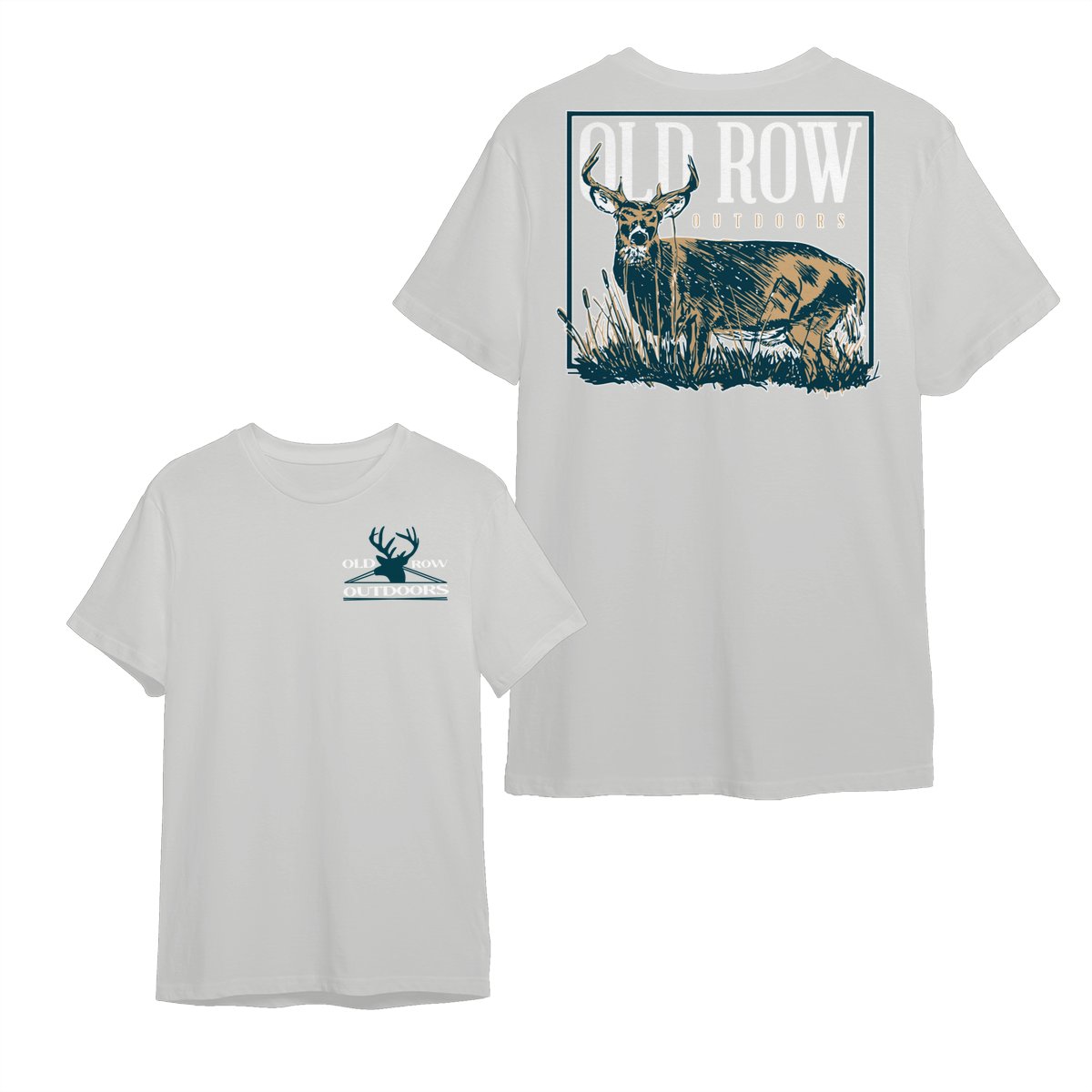Old Row Outdoor Natural Deer 2 Sides Shirt for Men, Husband Gifts, Crewneck Casual Graphic Tees, Streetwear Tops, Unisex Apparel Made In The USA.