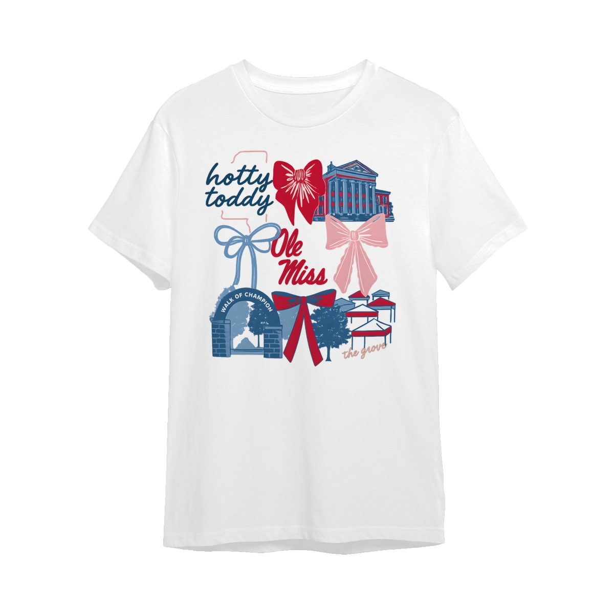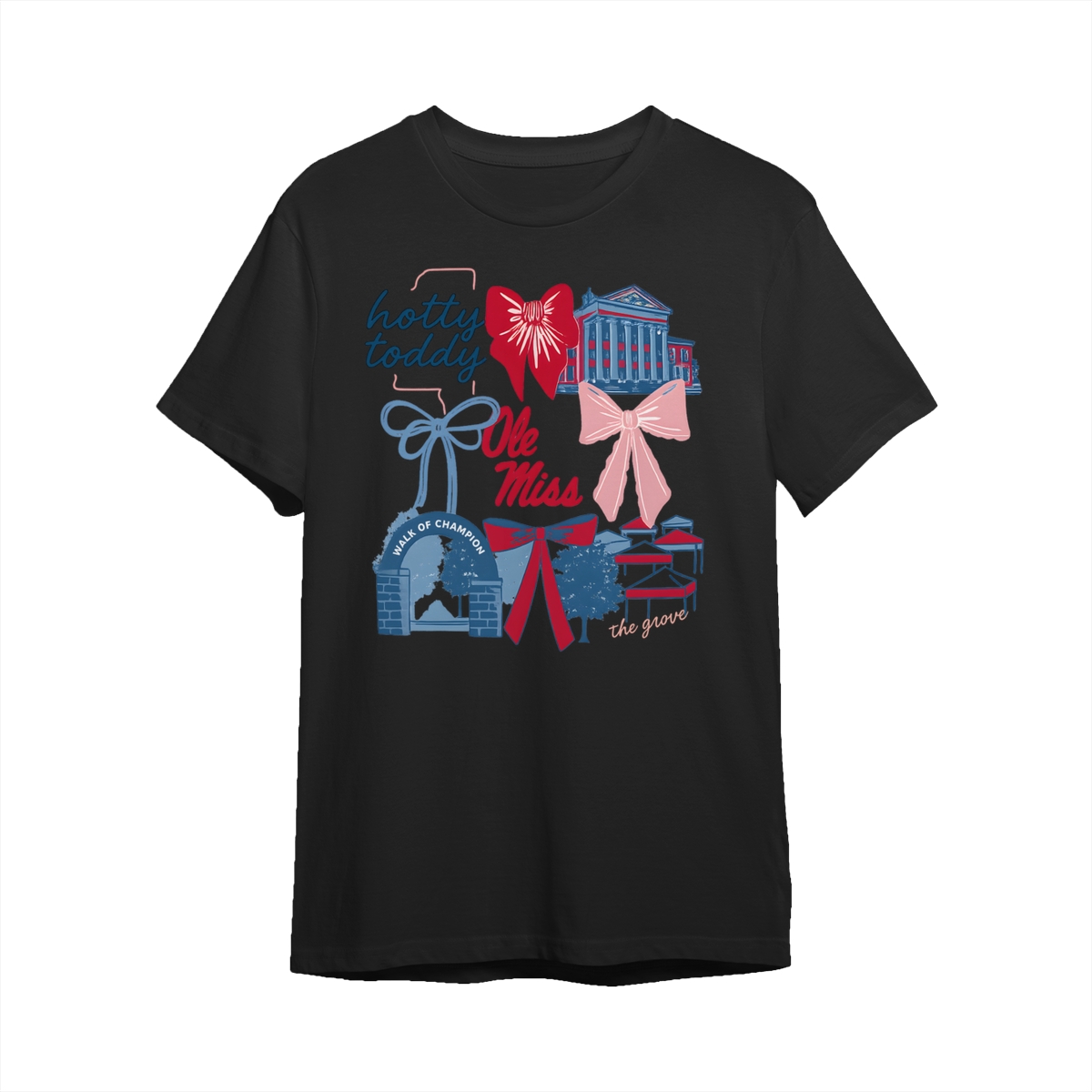 Ole Miss Hotty Toddy Bow Graphic T-Shirt, University of Mississippi Game Day Tee, Rebels Campus Spirit Shirt