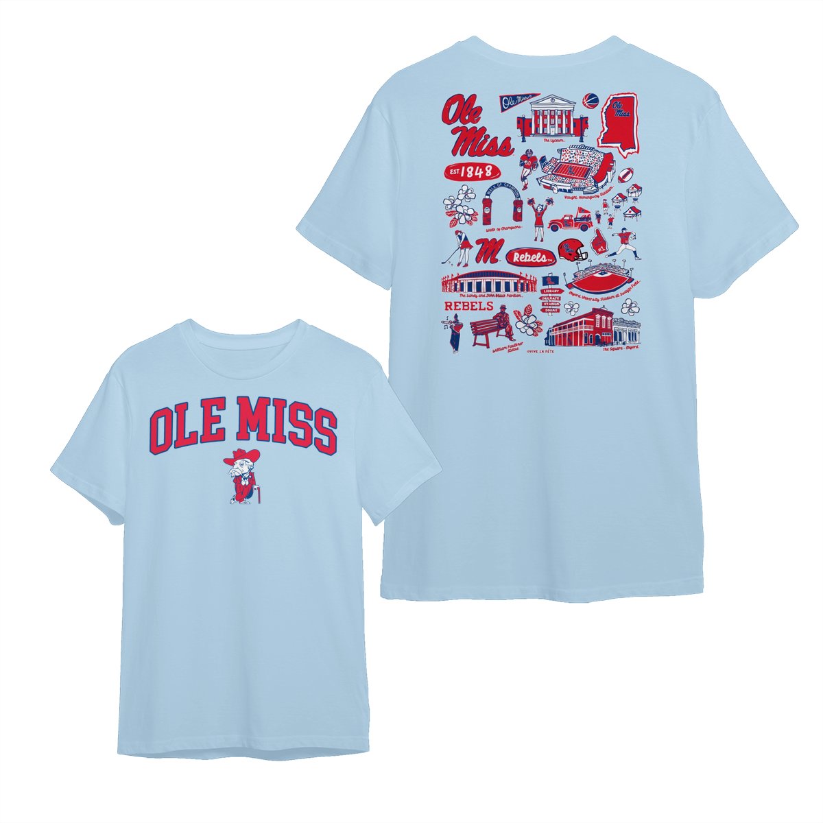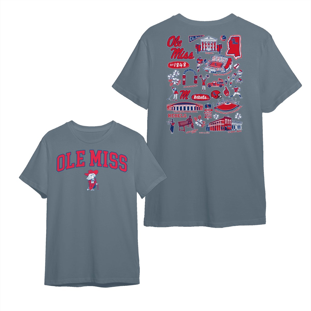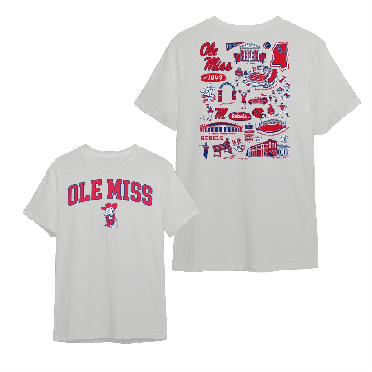 Ole Miss Team College NCAA Graphic T-Shirts – Hand-Drawn Logo & Campus Designs, Unisex Style, Perfect for Fans, Mens and Womens Gift, Comfortable Casual Wear for Sports Lovers