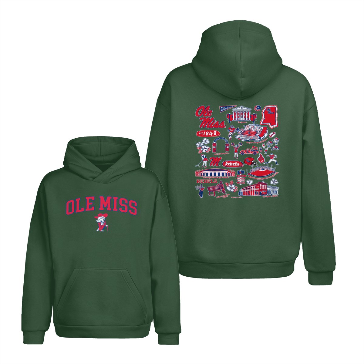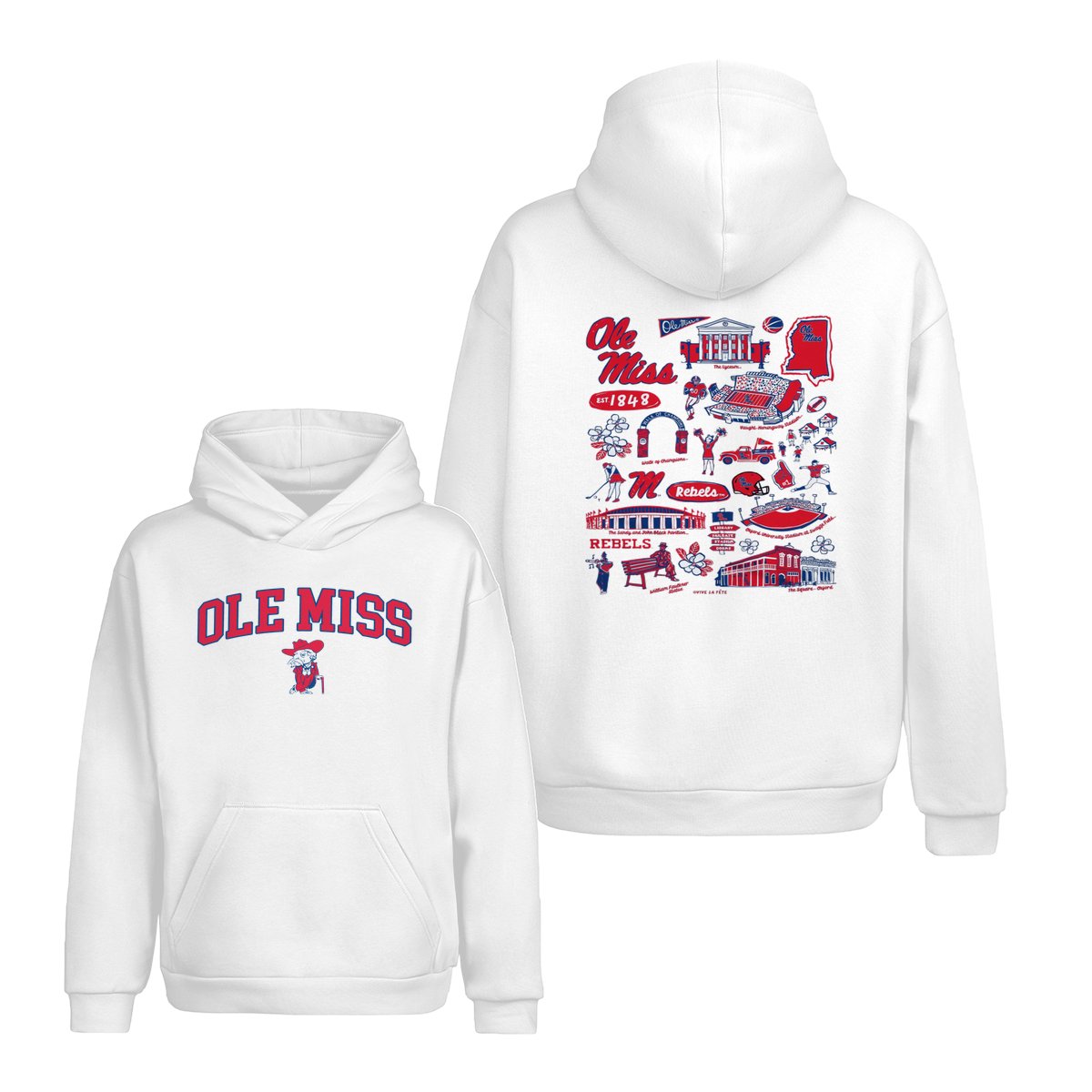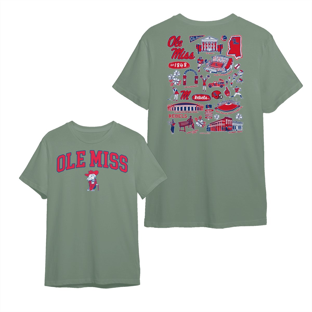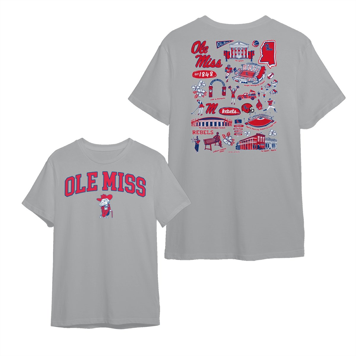 Ole Miss Team College NCAA Graphic T-Shirts – Hand-Drawn Logo & Campus Designs, Unisex Style, Perfect for Fans, Mens and Womens Gift, Comfortable Casual Wear for Sports Lovers