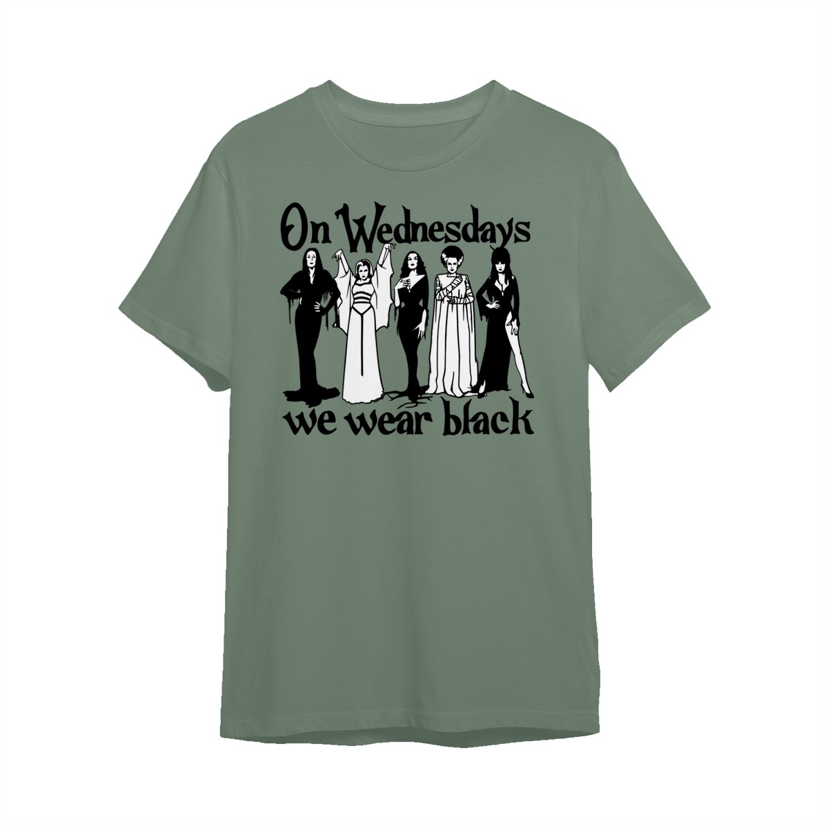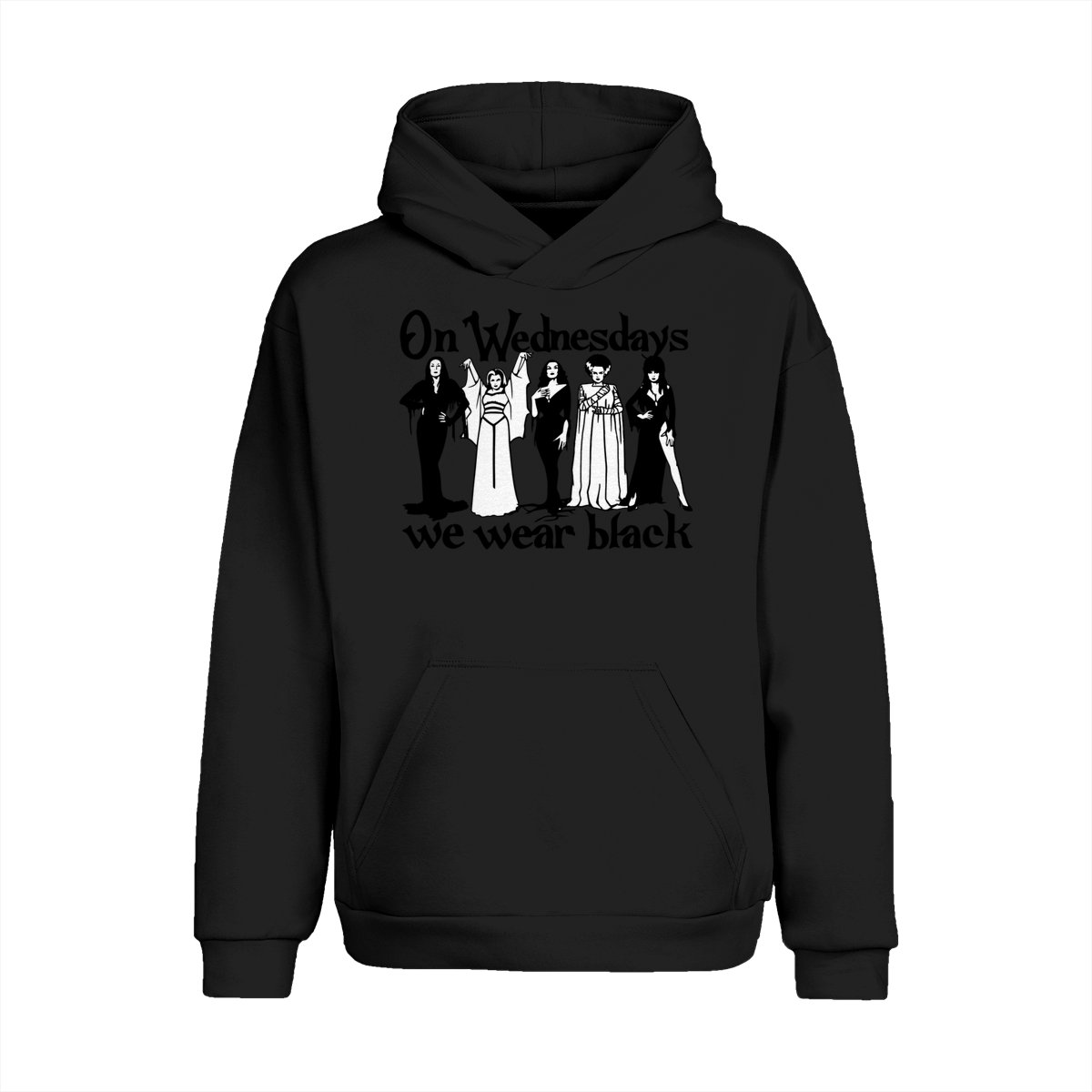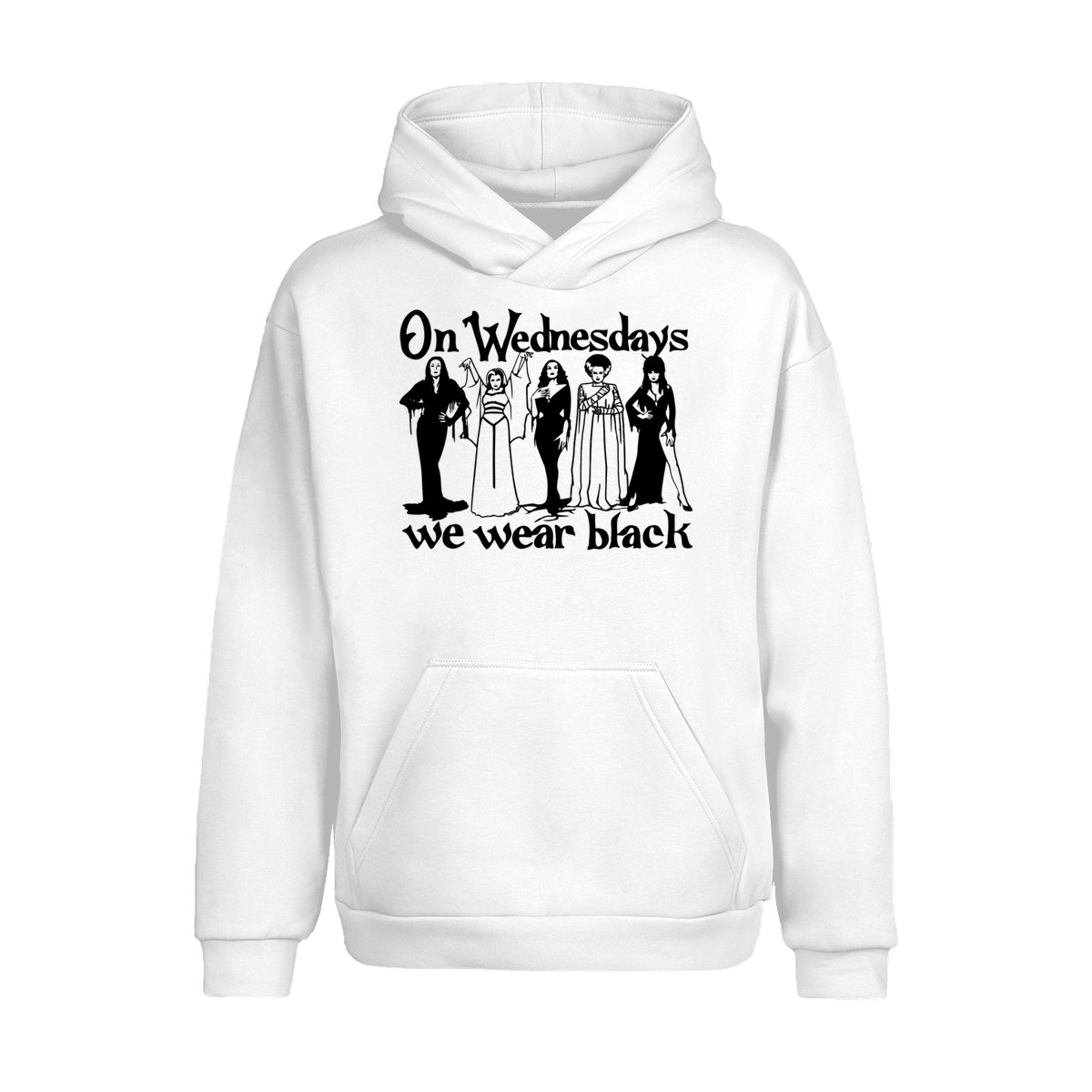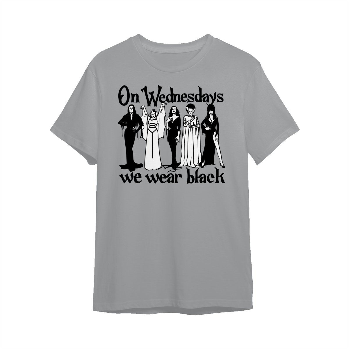 On Wednesdays We Wear Black Sweatshirt, Horror Goth Queens Morticia Addams, Lily Munster, Elvira, Vampira, The Bride Shirt, Halloween Gifts For Women and For Her Womenswear Long Sleeve Pullover Crewneck Tops