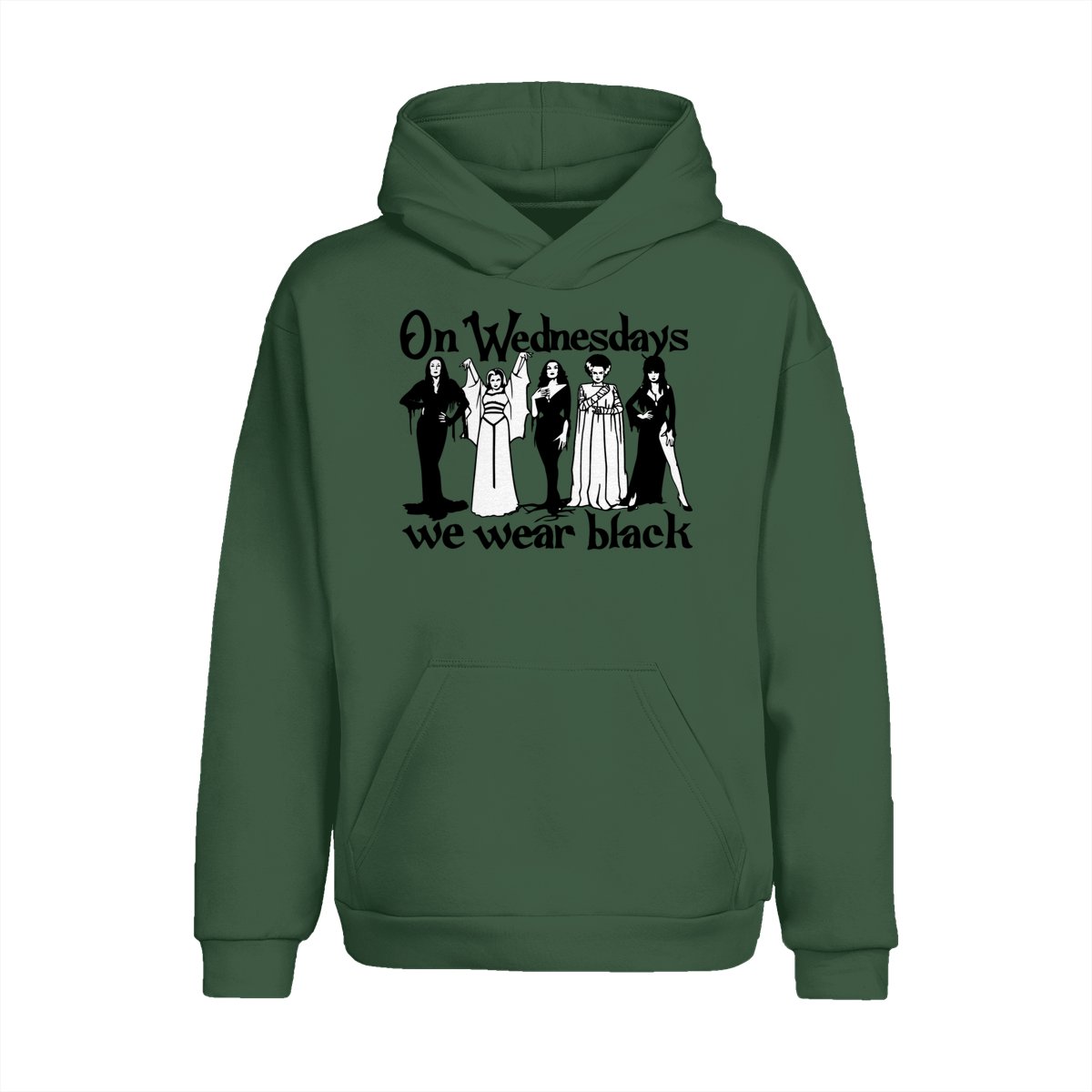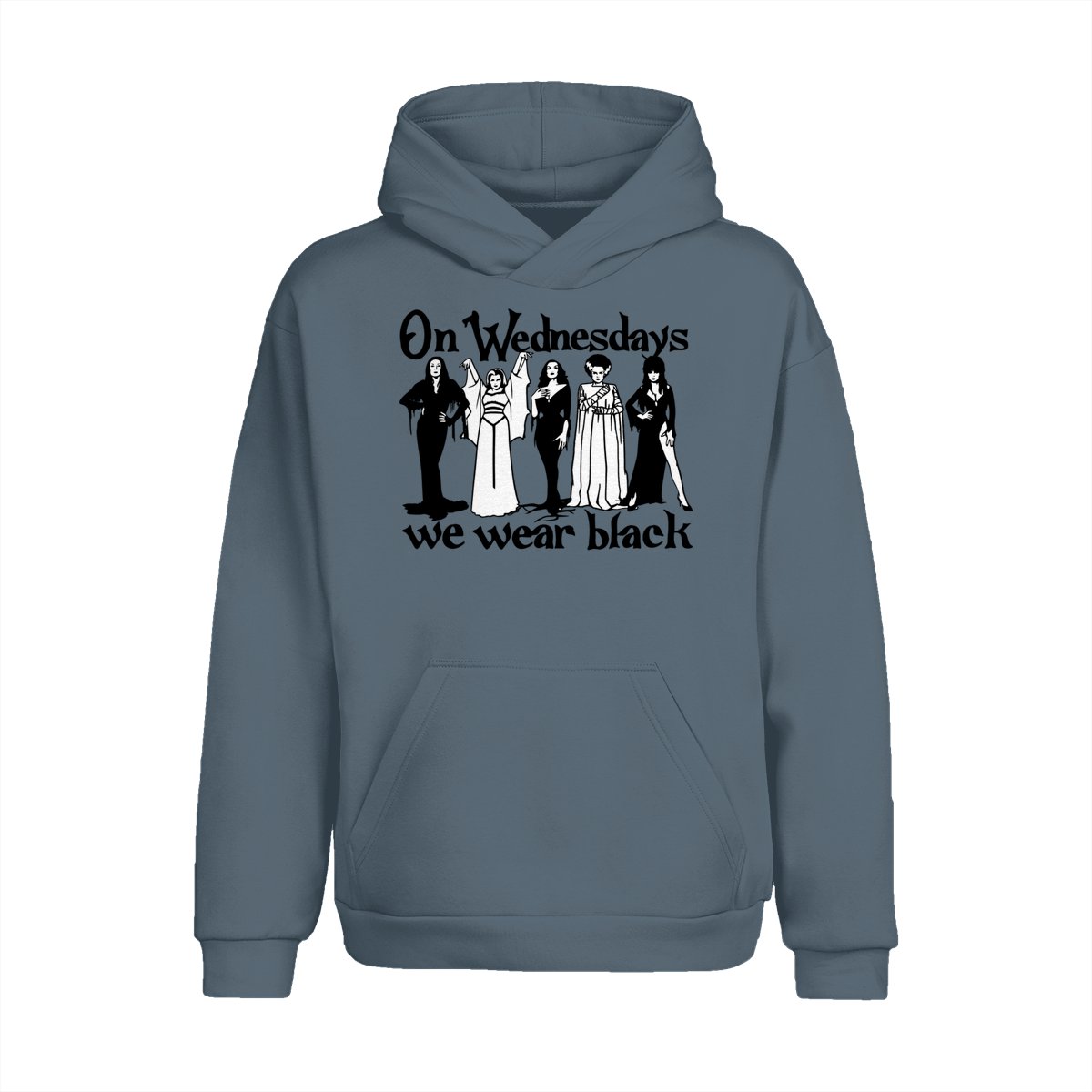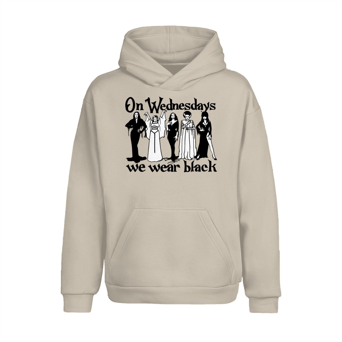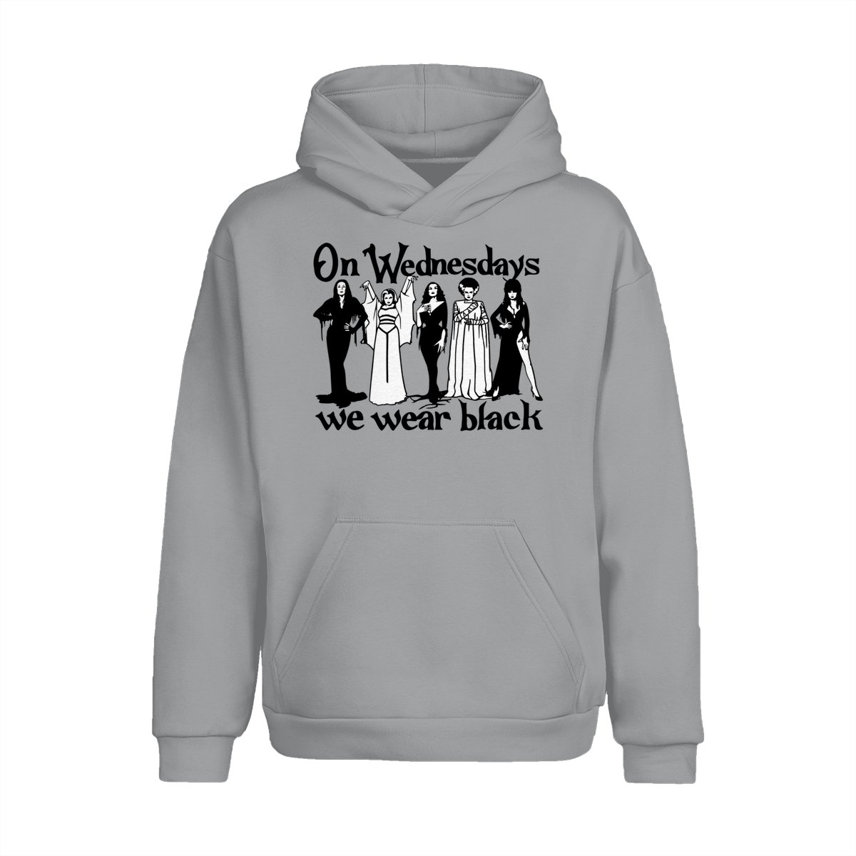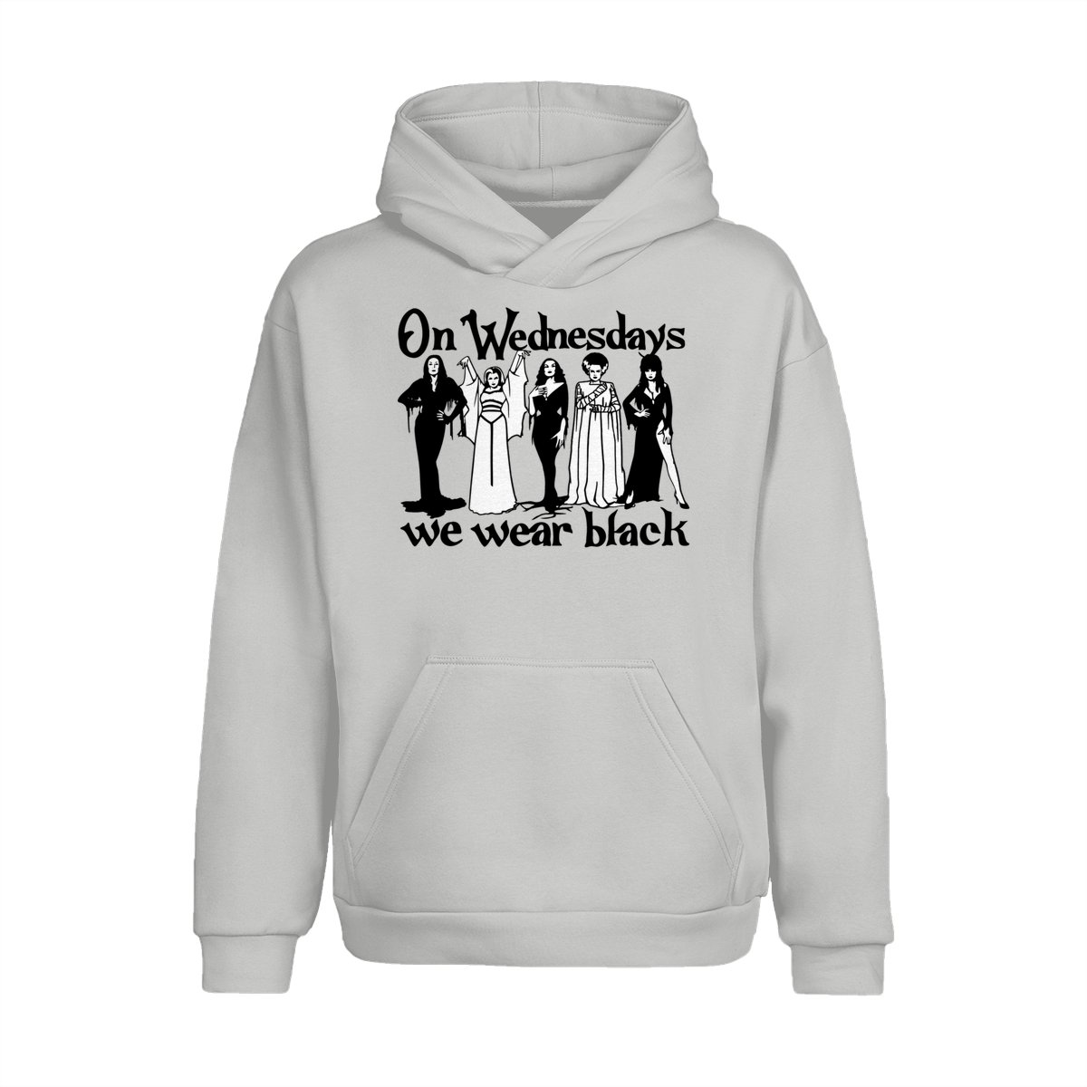 On Wednesdays We Wear Black Sweatshirt, Horror Goth Queens Morticia Addams, Lily Munster, Elvira, Vampira, The Bride Shirt, Halloween Gifts For Women and For Her Womenswear Long Sleeve Pullover Crewneck Tops