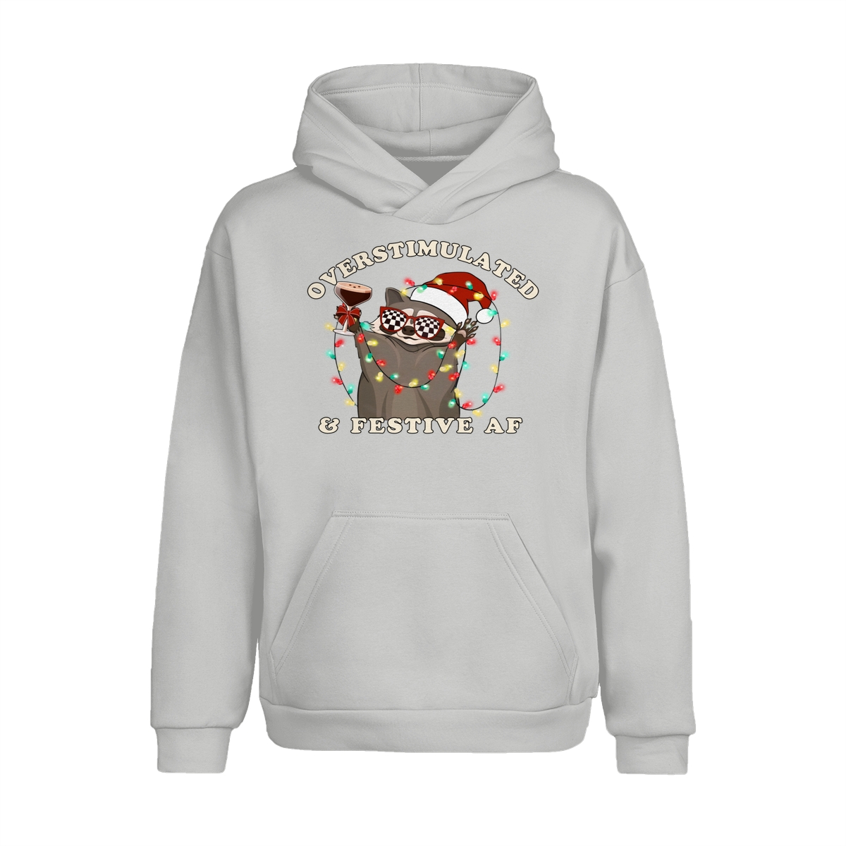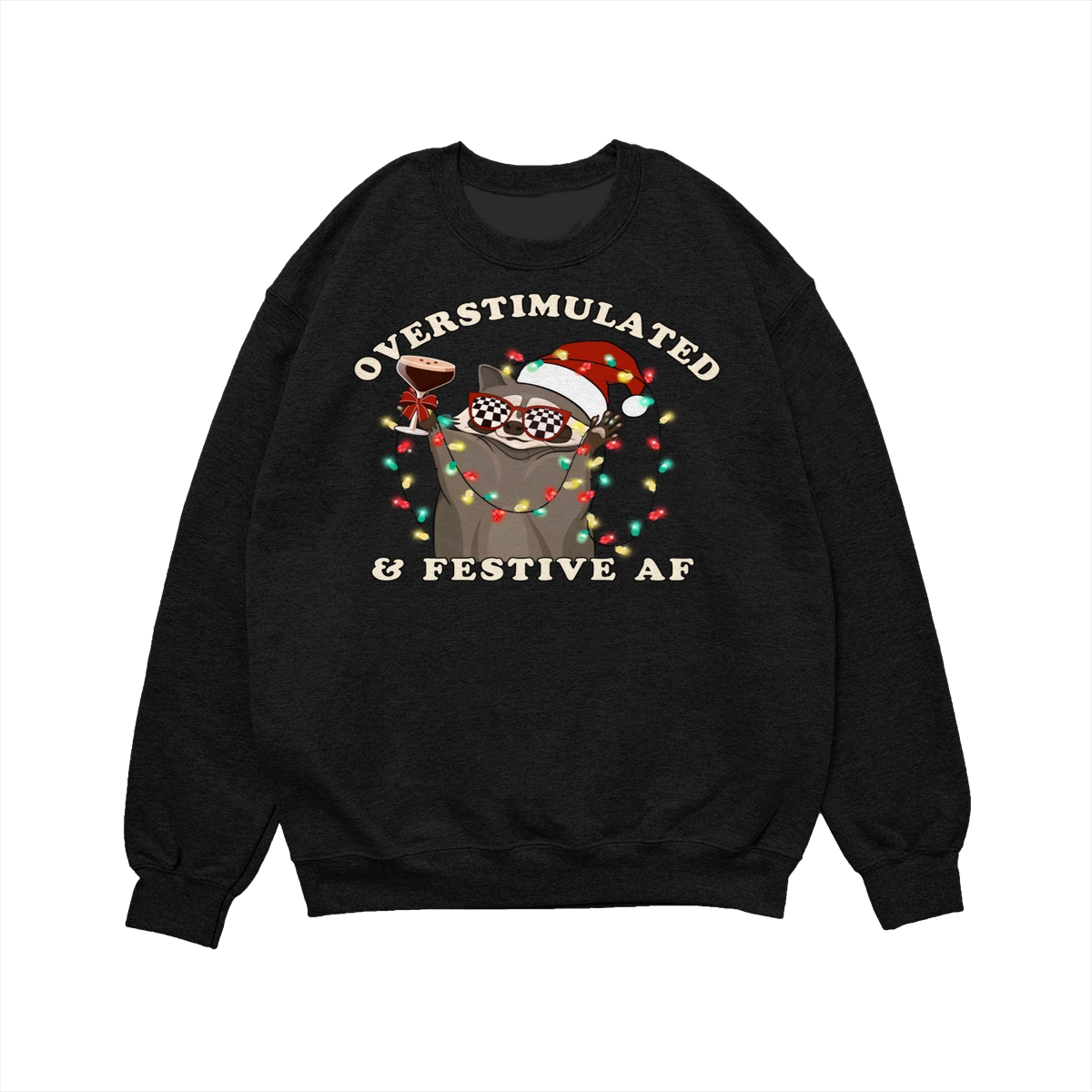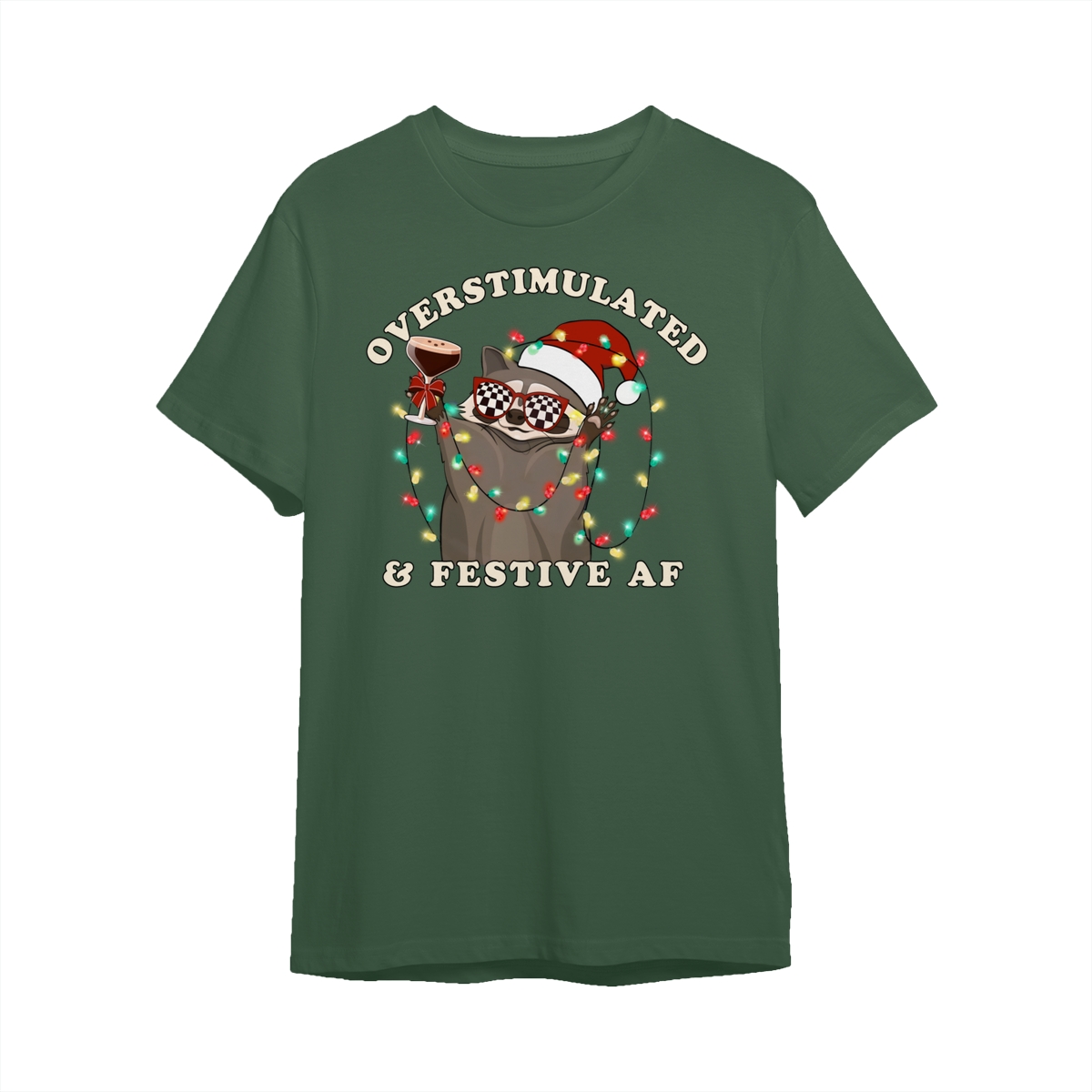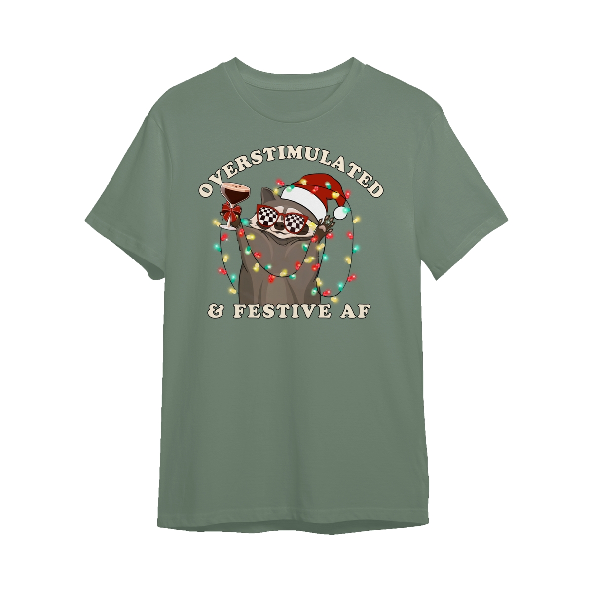 Overstimulated & Festive AF Raccoon Christmas T-Shirt, Espresso Martini Tangled Lights, Funny Weirdcore Meme Gift Shirt, Xmas Gifts