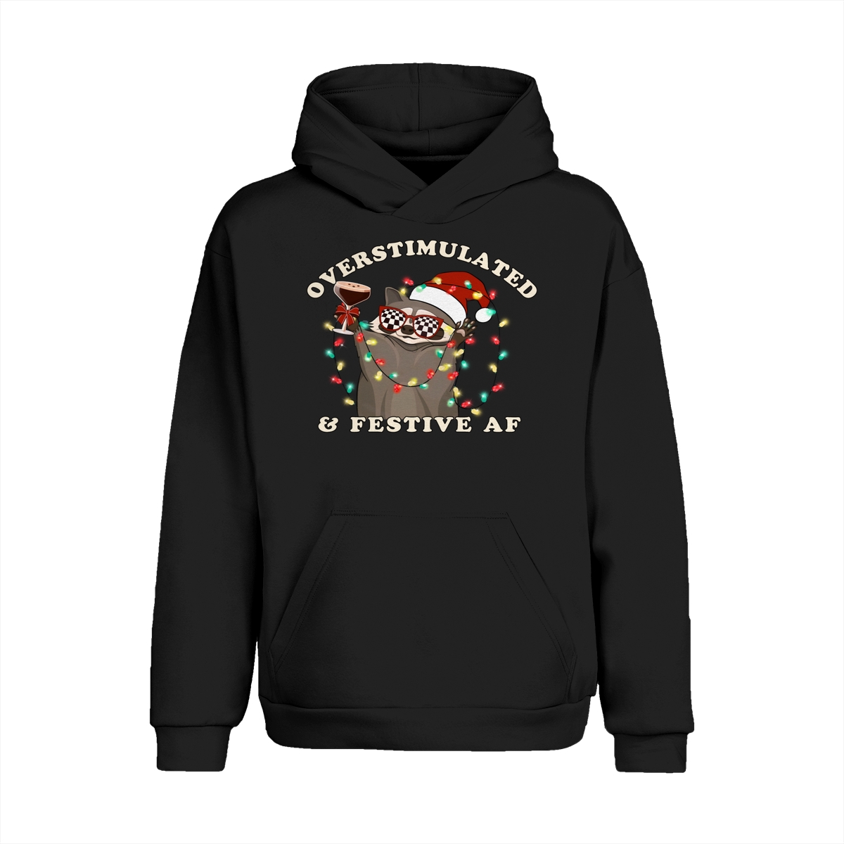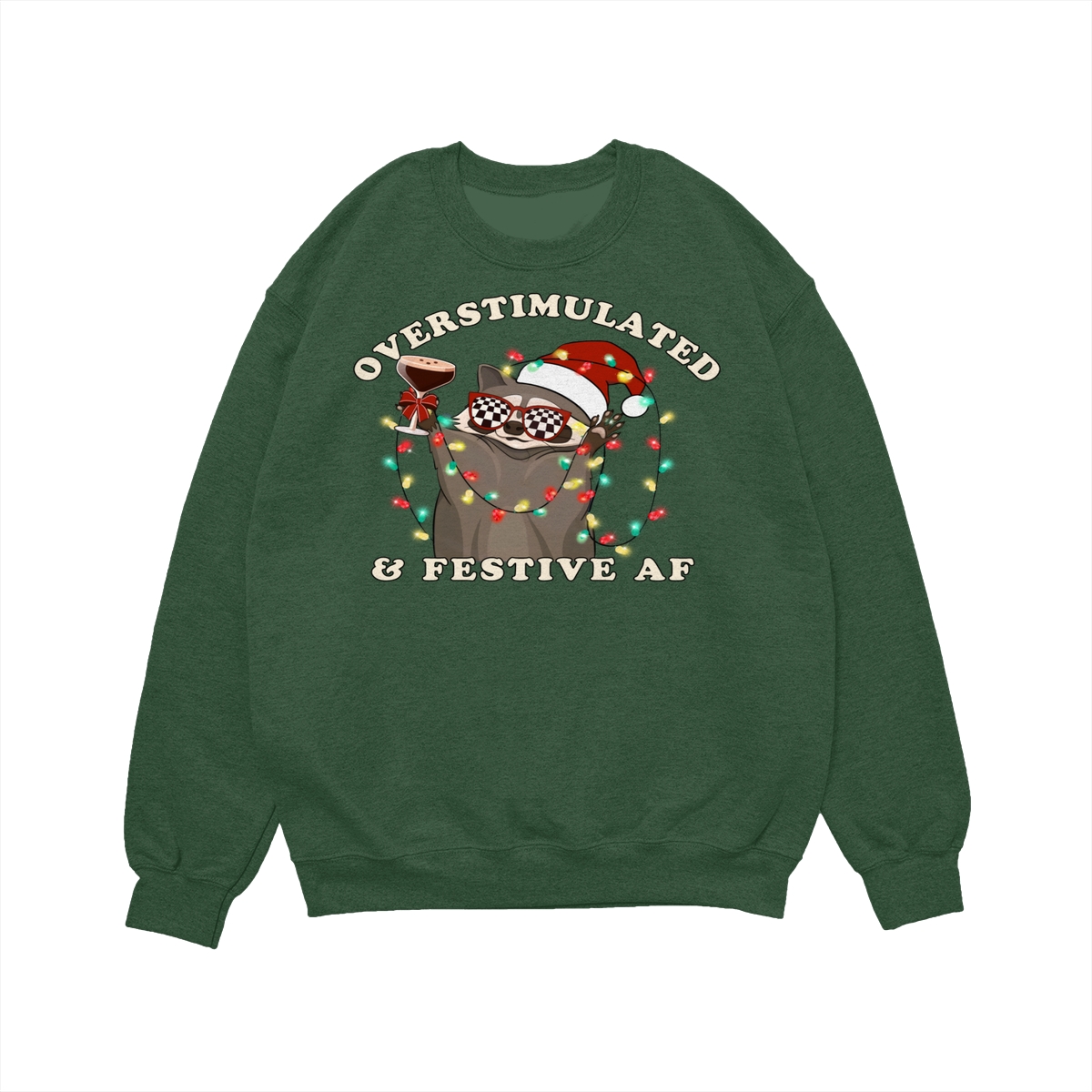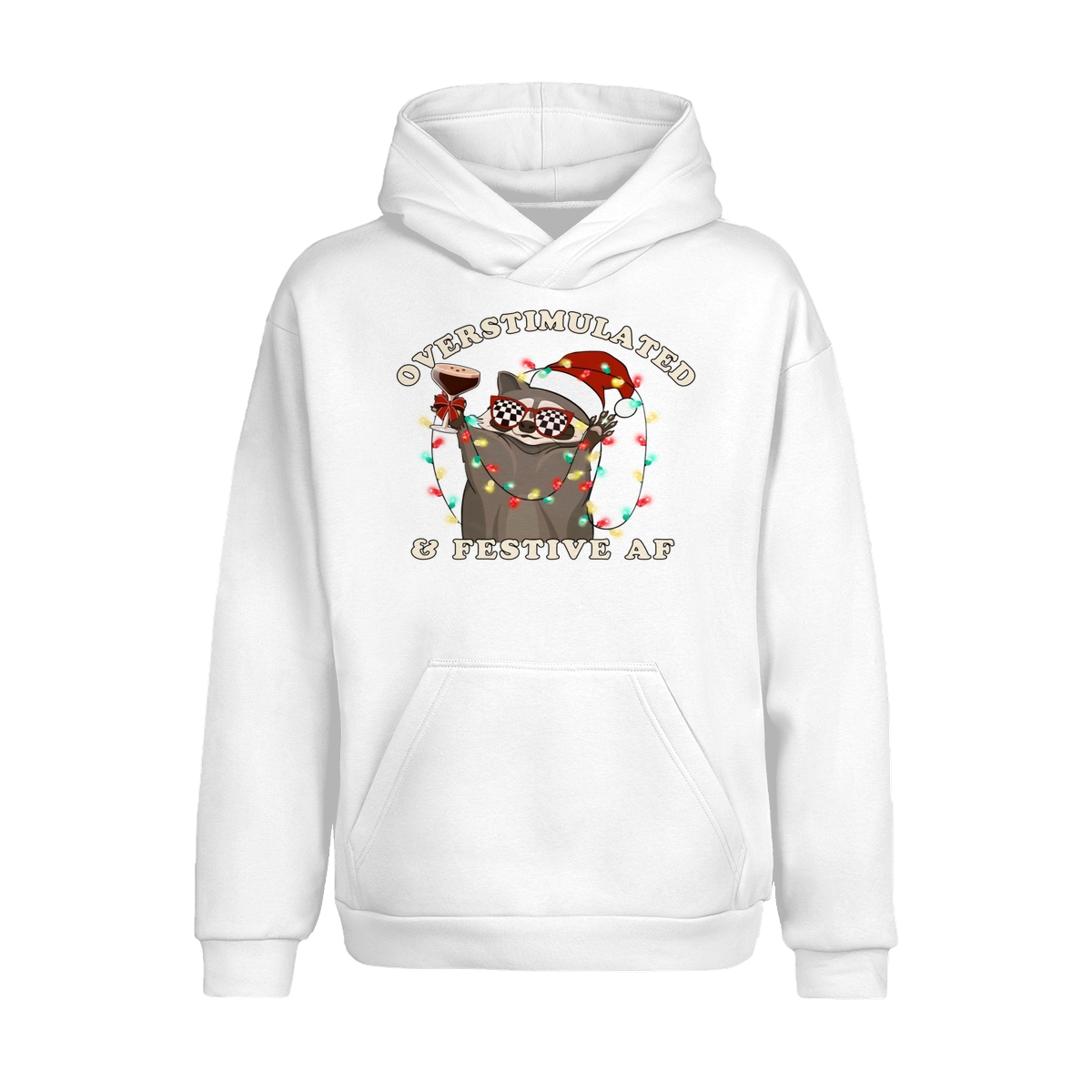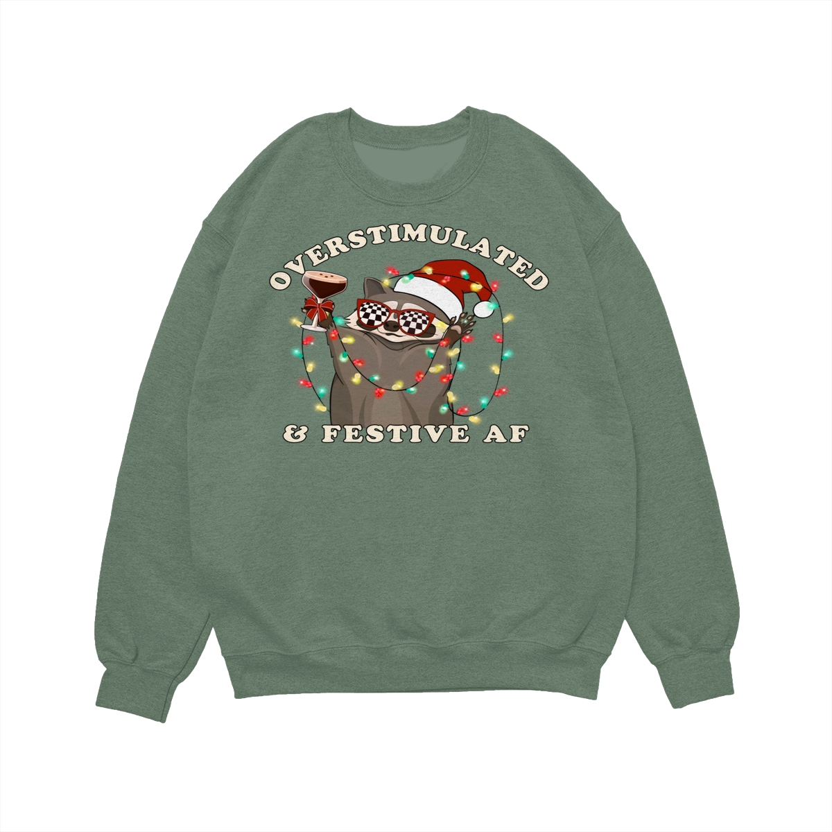 Overstimulated & Festive AF Raccoon Christmas T-Shirt, Espresso Martini Tangled Lights, Funny Weirdcore Meme Gift Shirt, Xmas Gifts