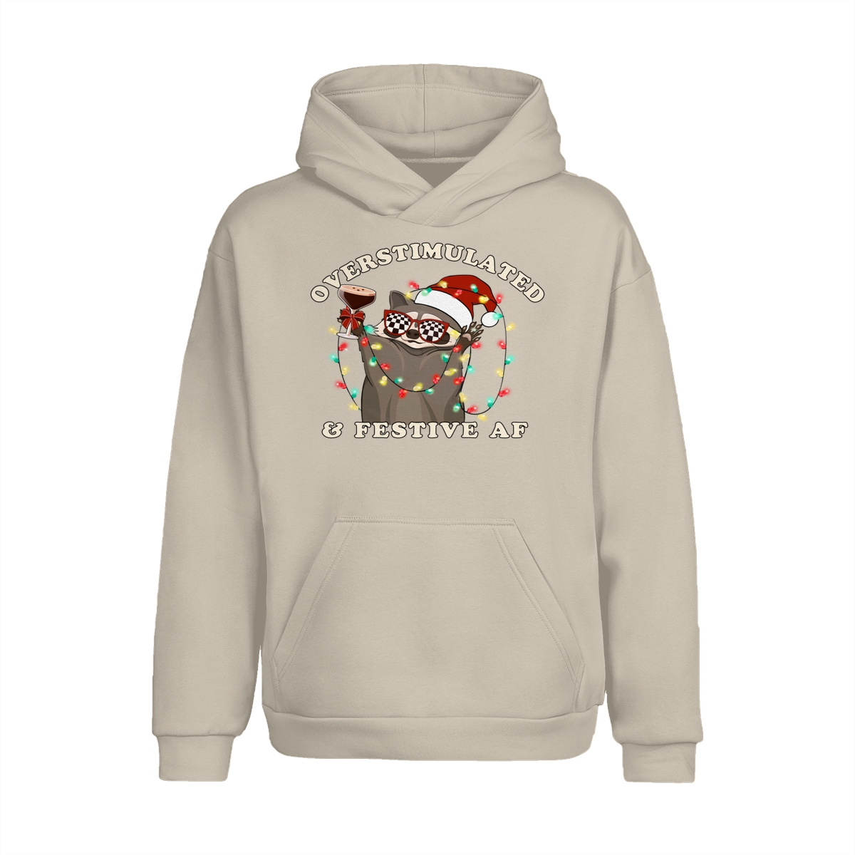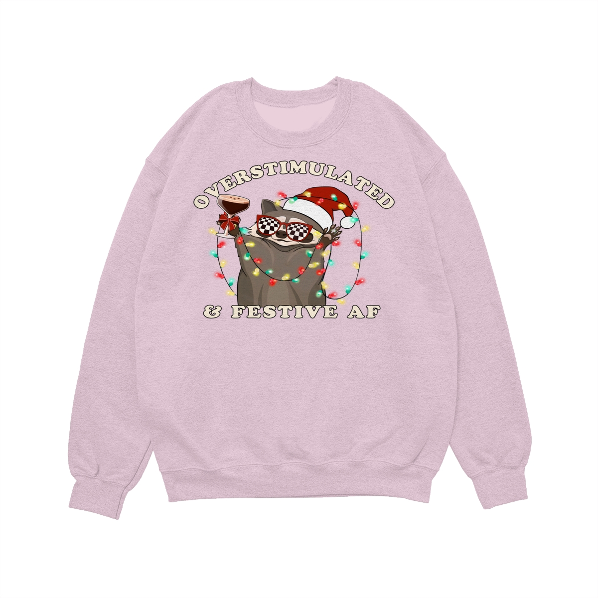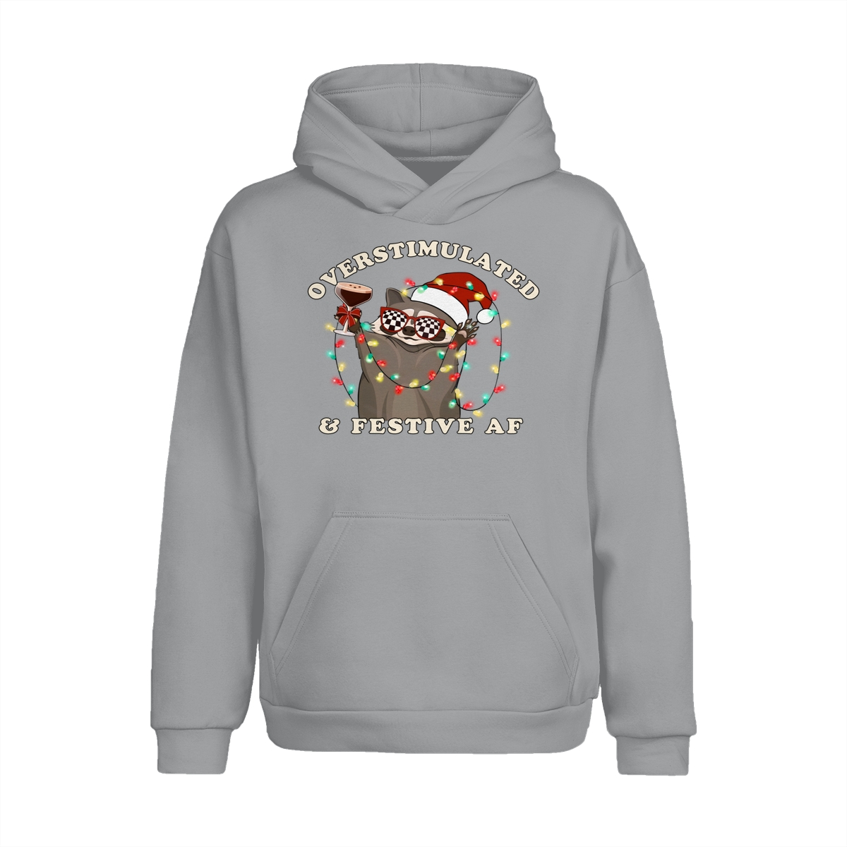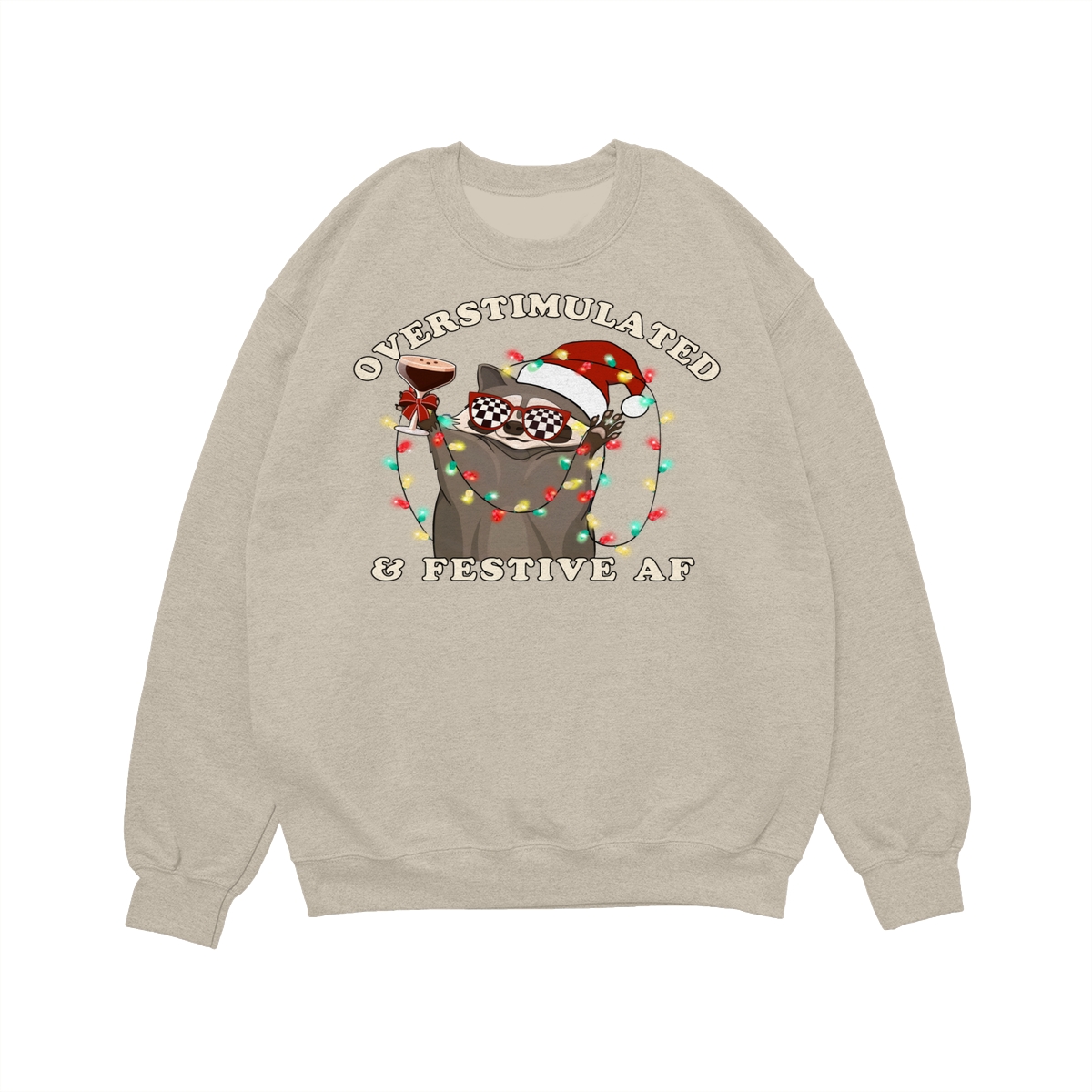 Overstimulated & Festive AF Raccoon Christmas T-Shirt, Espresso Martini Tangled Lights, Funny Weirdcore Meme Gift Shirt, Xmas Gifts