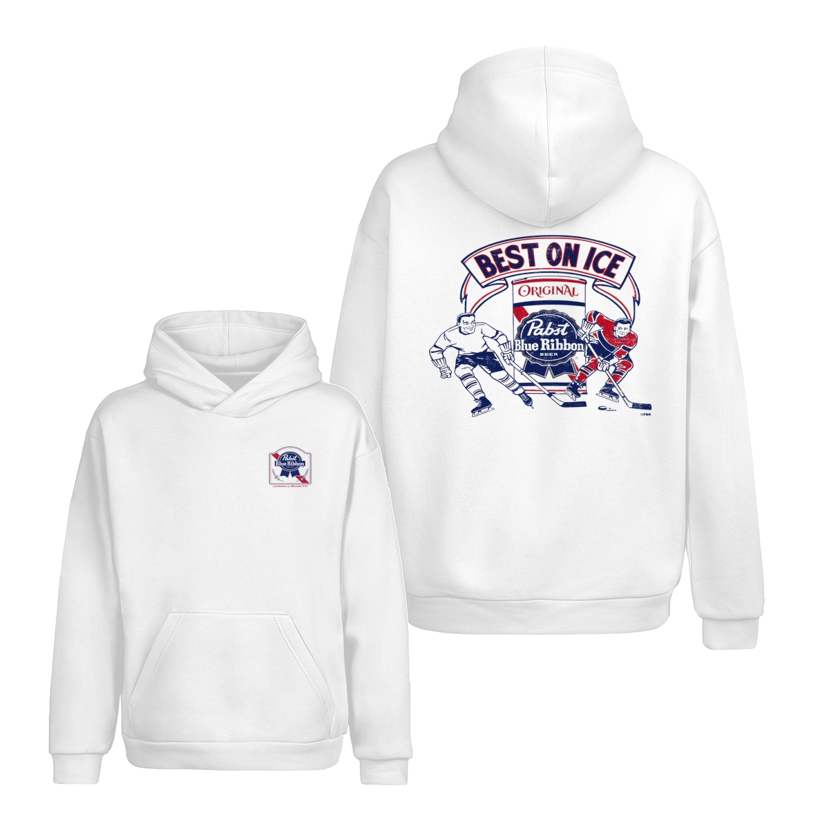 Pabst Blue Ribbon Best On Ice Hockey T-Shirt – Vintage Graphic Tee for Beer & Sports Fans – Retro Style Shirt Featuring Classic Ice Hockey Scene