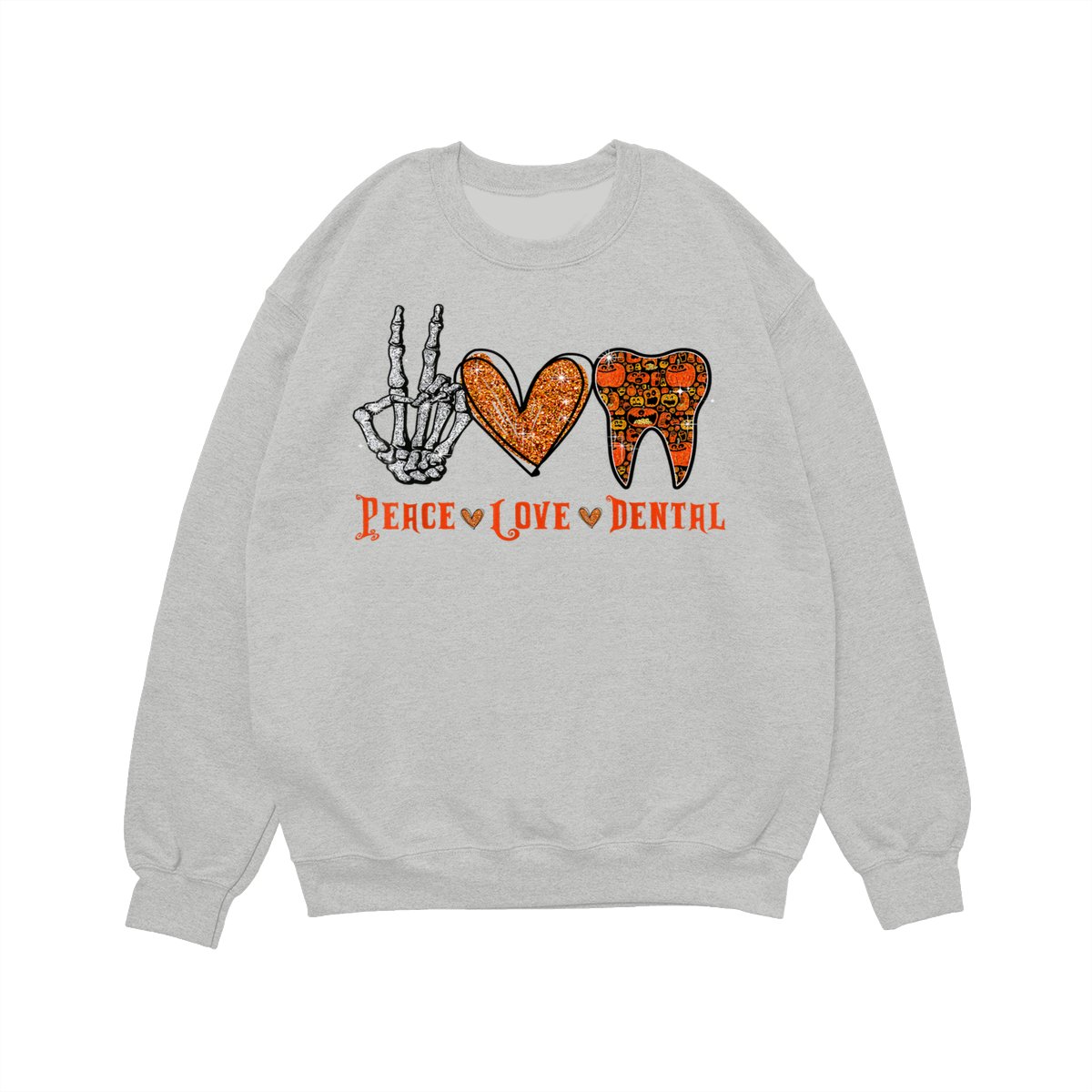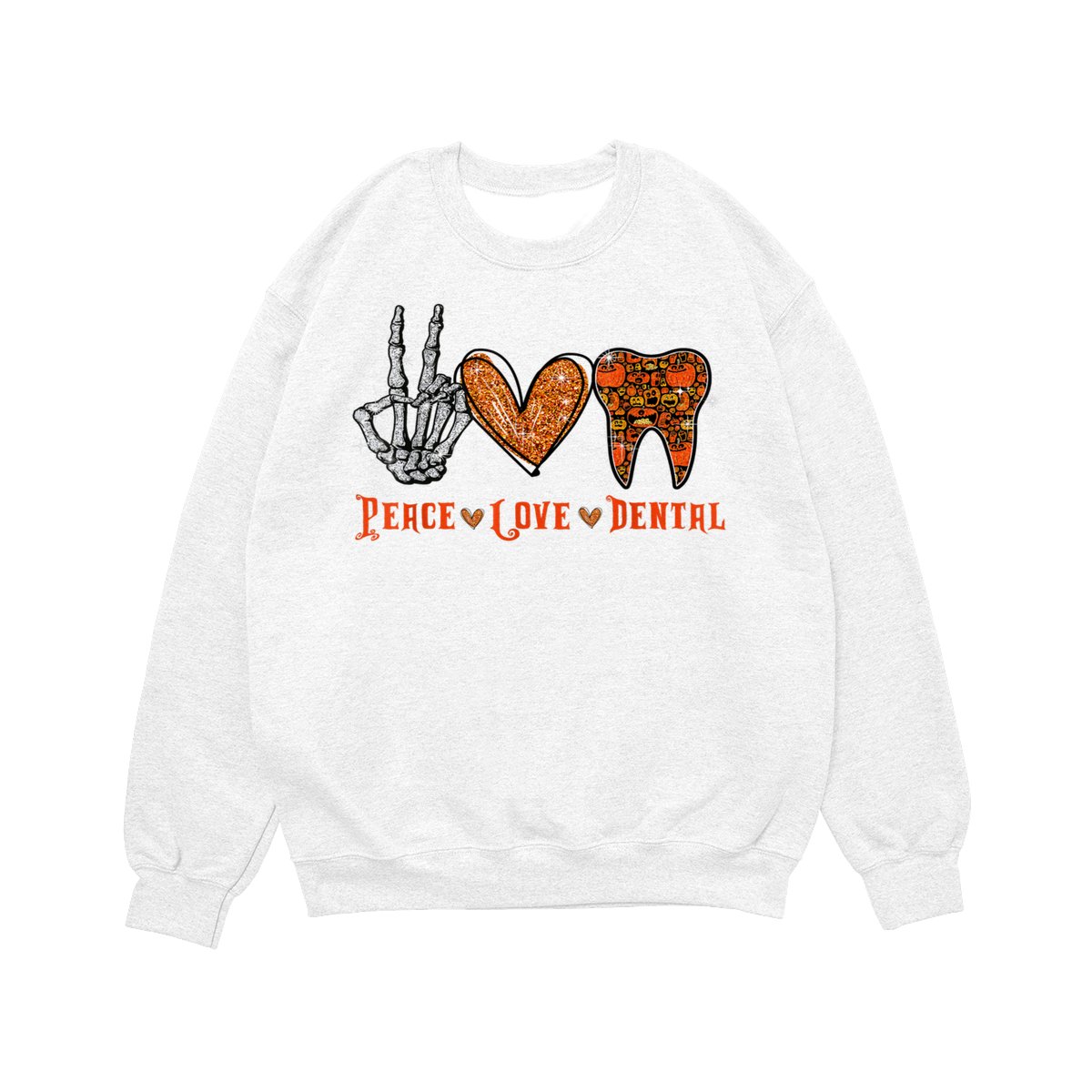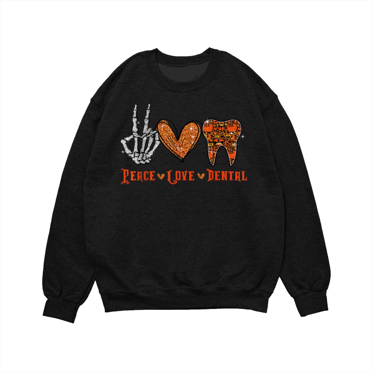 Peace Love Dental Shirt, Funny Dentist Halloween Tooth Graphic Pullover, Cute Spooky Season Dental Assistant Hygienist Sweatshirt, Fall Cozy Work Office Sweater