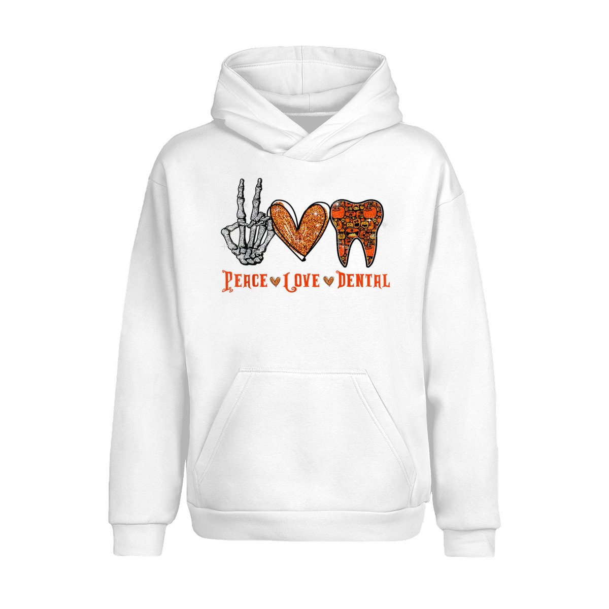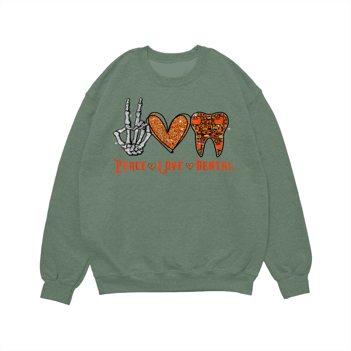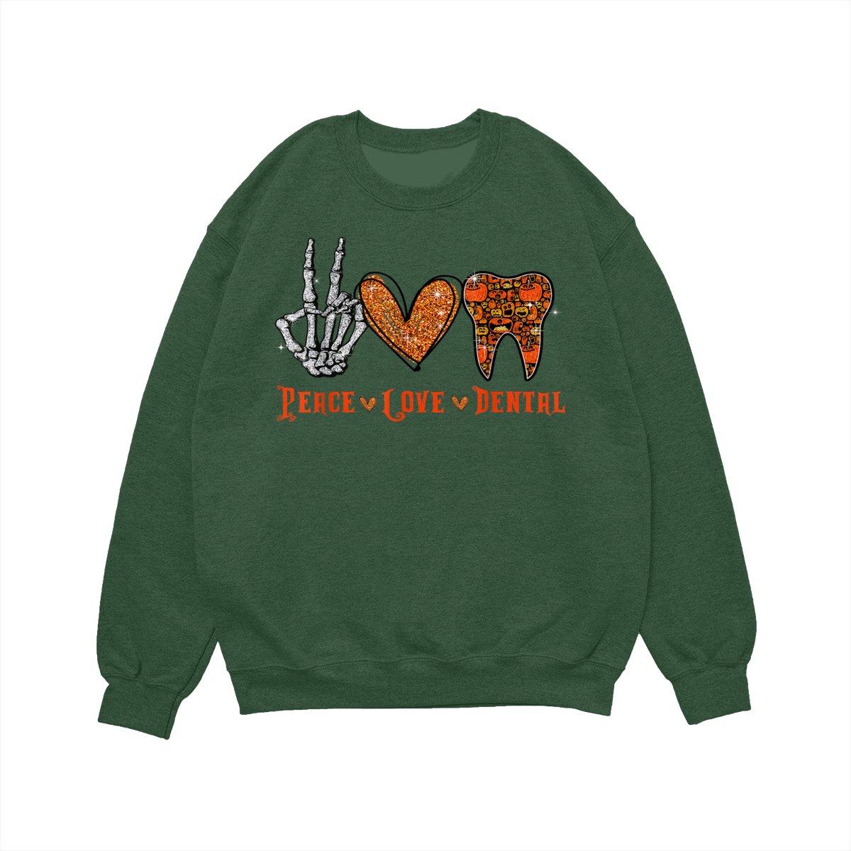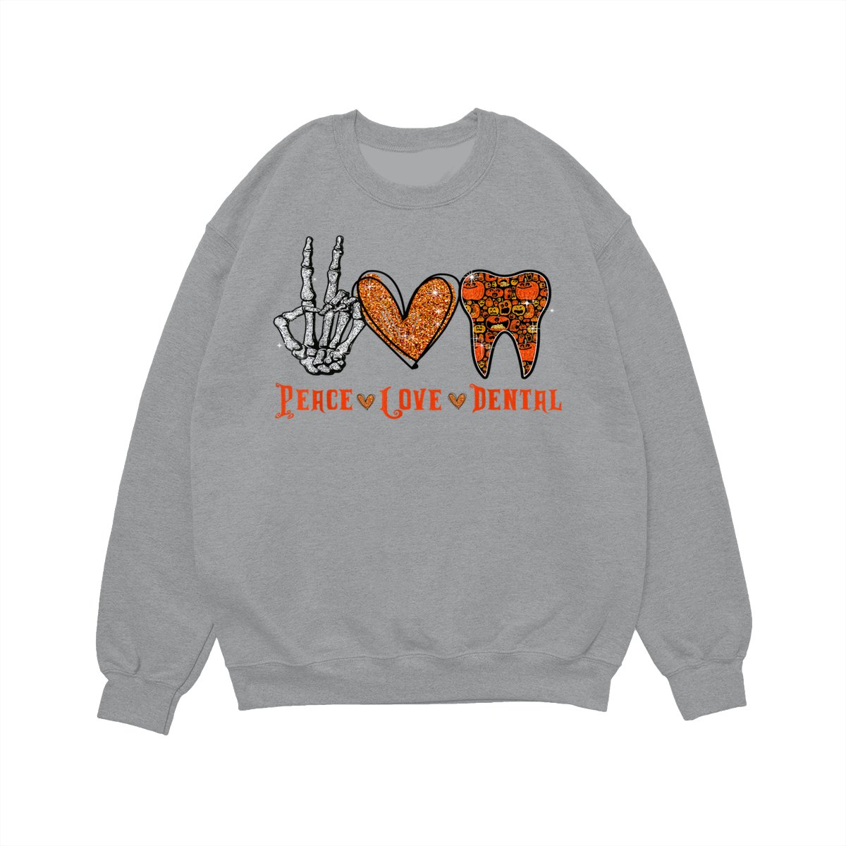 Peace Love Dental Shirt, Funny Dentist Halloween Tooth Graphic Pullover, Cute Spooky Season Dental Assistant Hygienist Sweatshirt, Fall Cozy Work Office Sweater