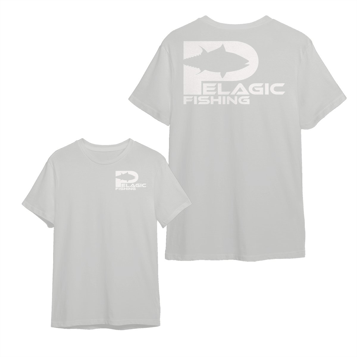 Pelagic Fishing T-Shirt – Shark Graphic Print, White Shirt for Anglers, Pelagic Logo for Outdoor Sports, Gift for Fishing Lovers