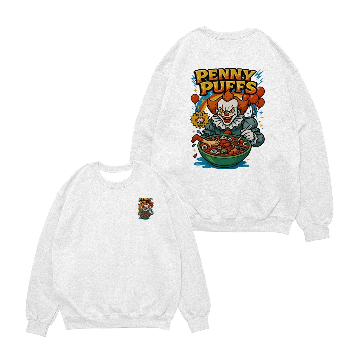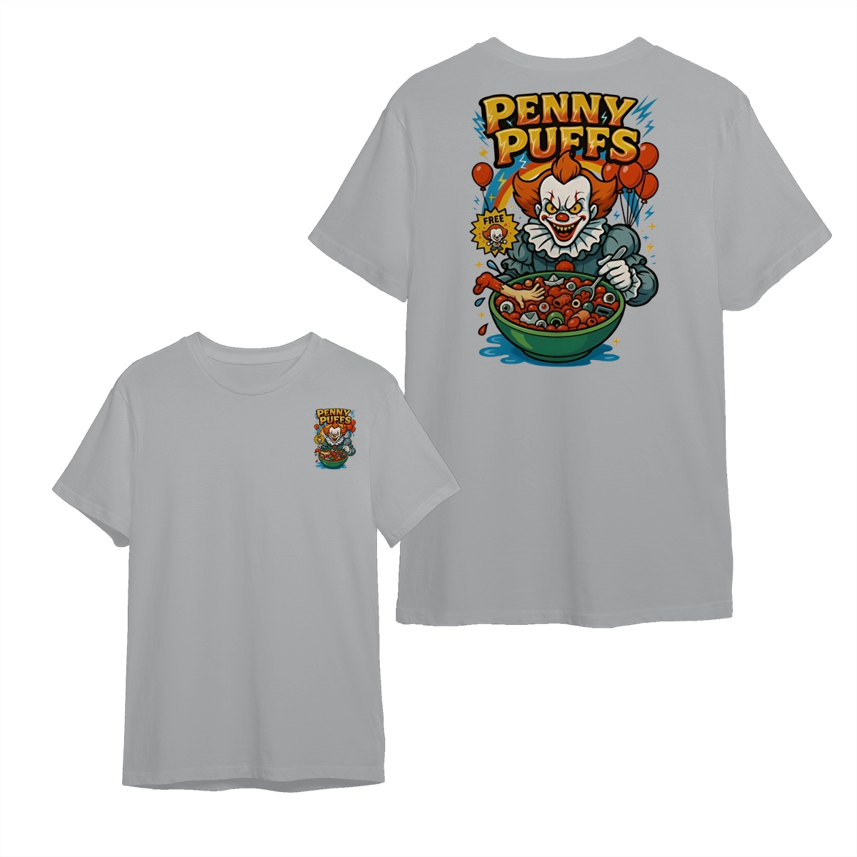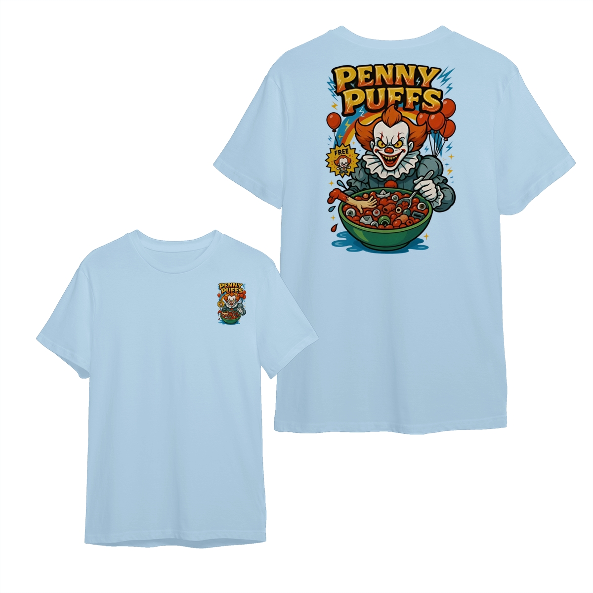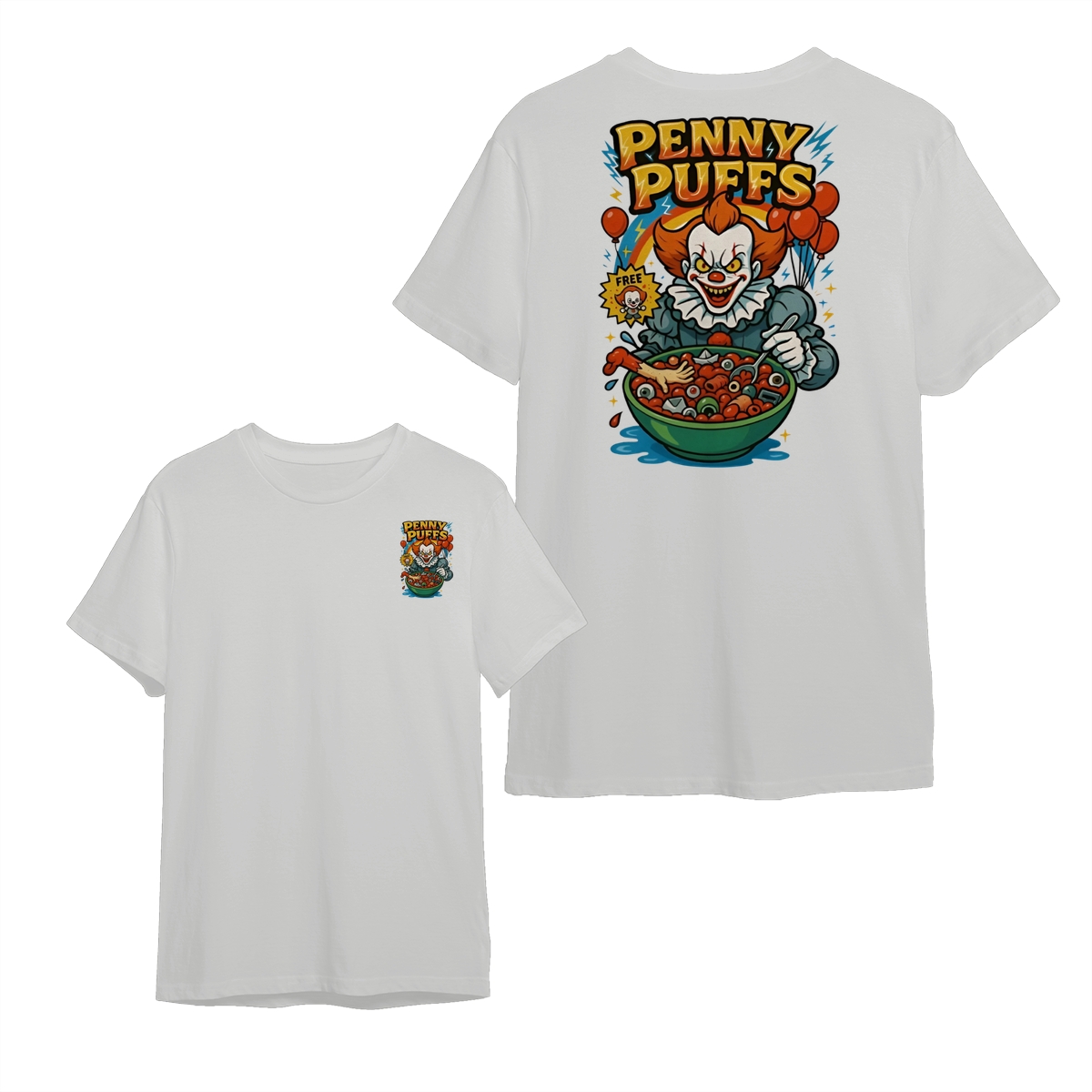 Penny Puffs T-Shirt – Spooky Clown 2-Sided Graphic Halloween Tee, Soft Cotton Unisex Shirt for Men & Women – Perfect for Horror Fans & Casual Wear