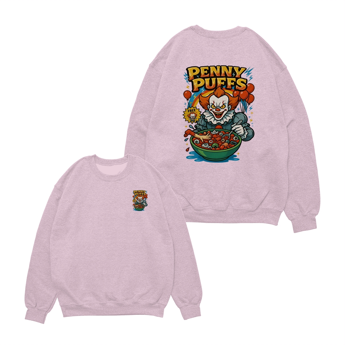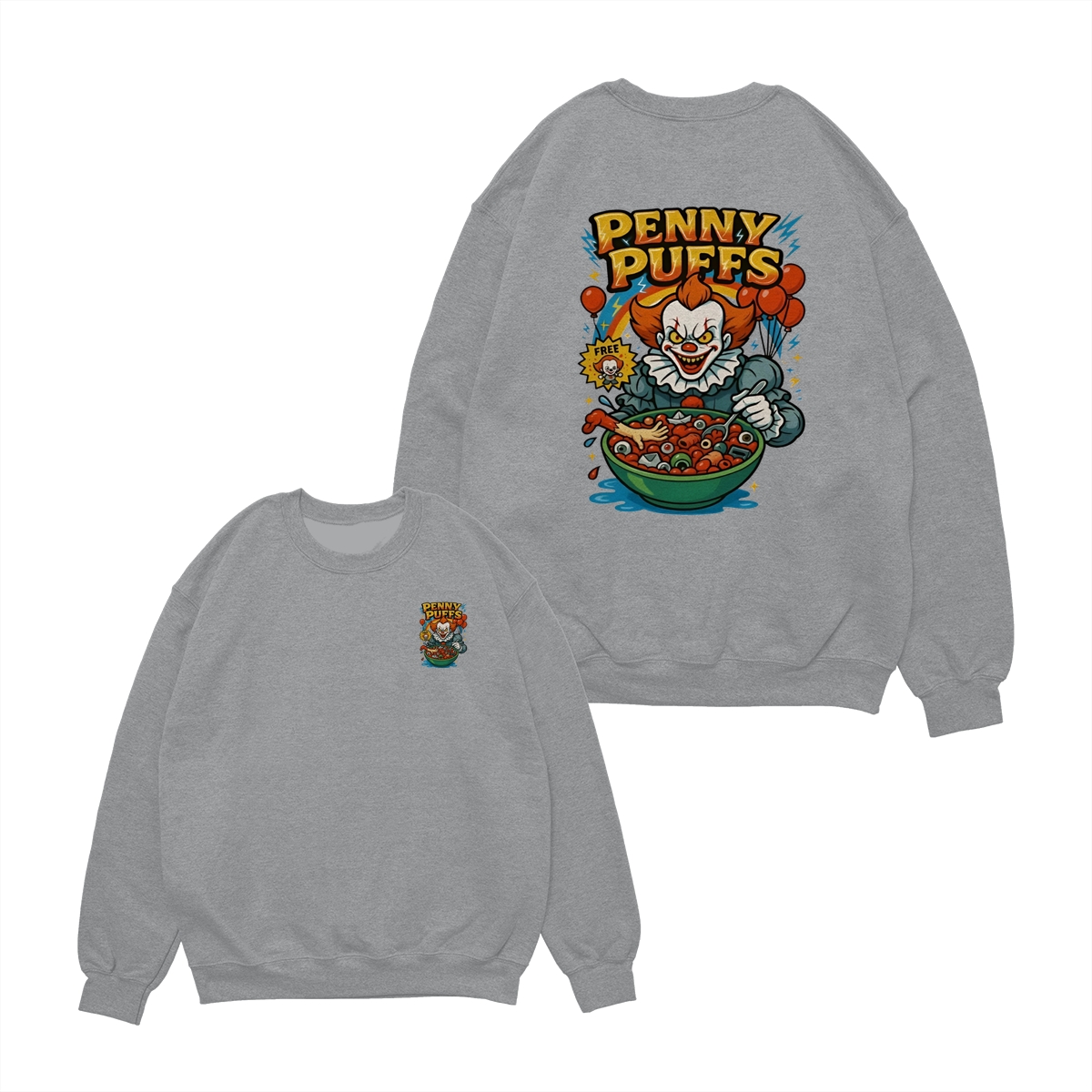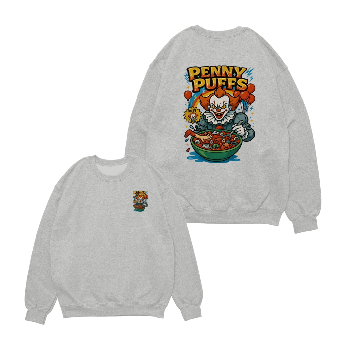 Penny Puffs T-Shirt – Spooky Clown 2-Sided Graphic Halloween Tee, Soft Cotton Unisex Shirt for Men & Women – Perfect for Horror Fans & Casual Wear