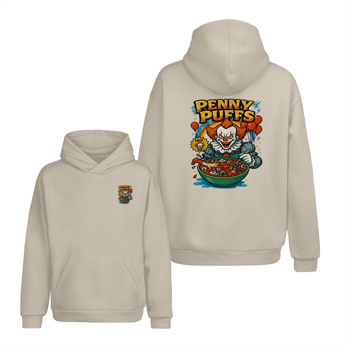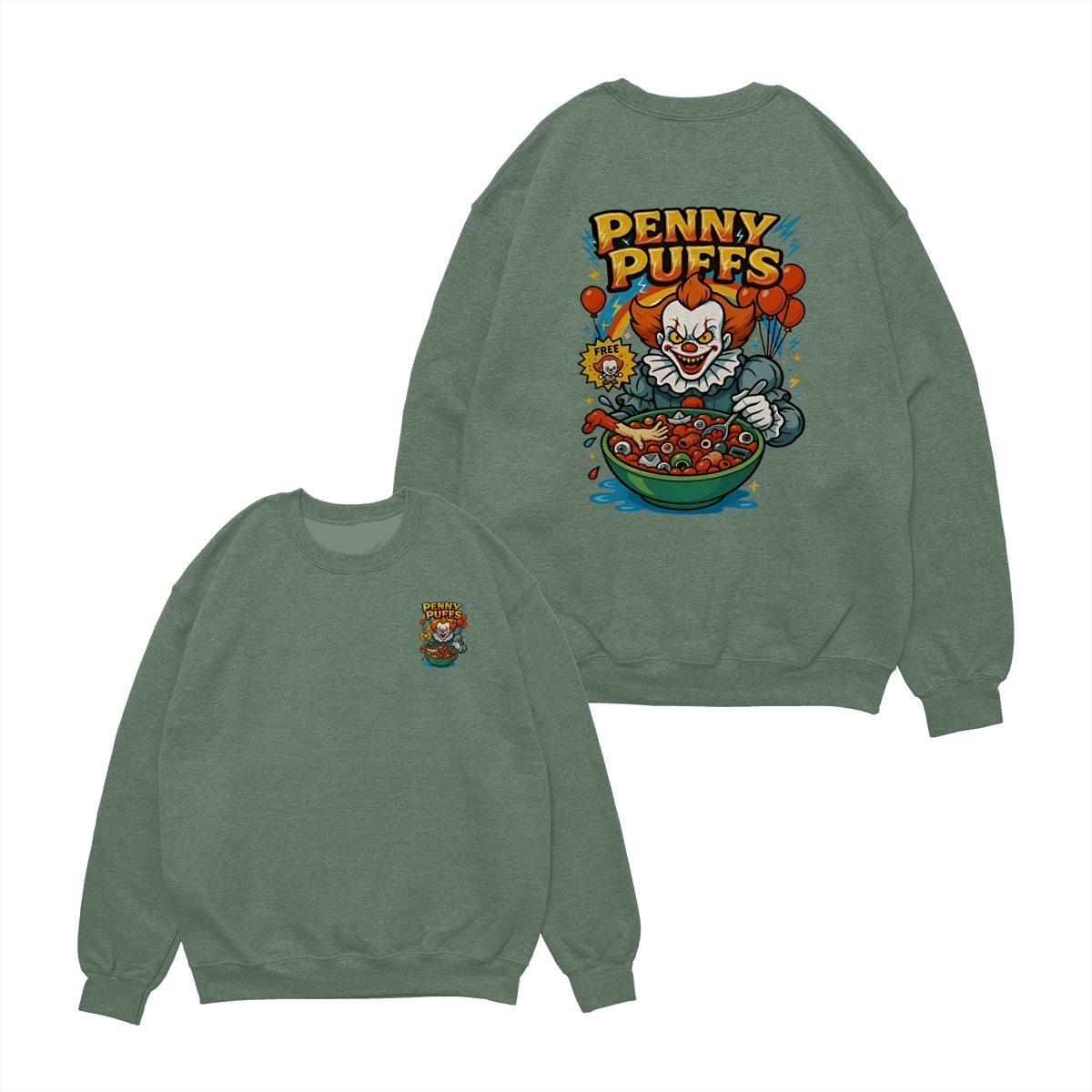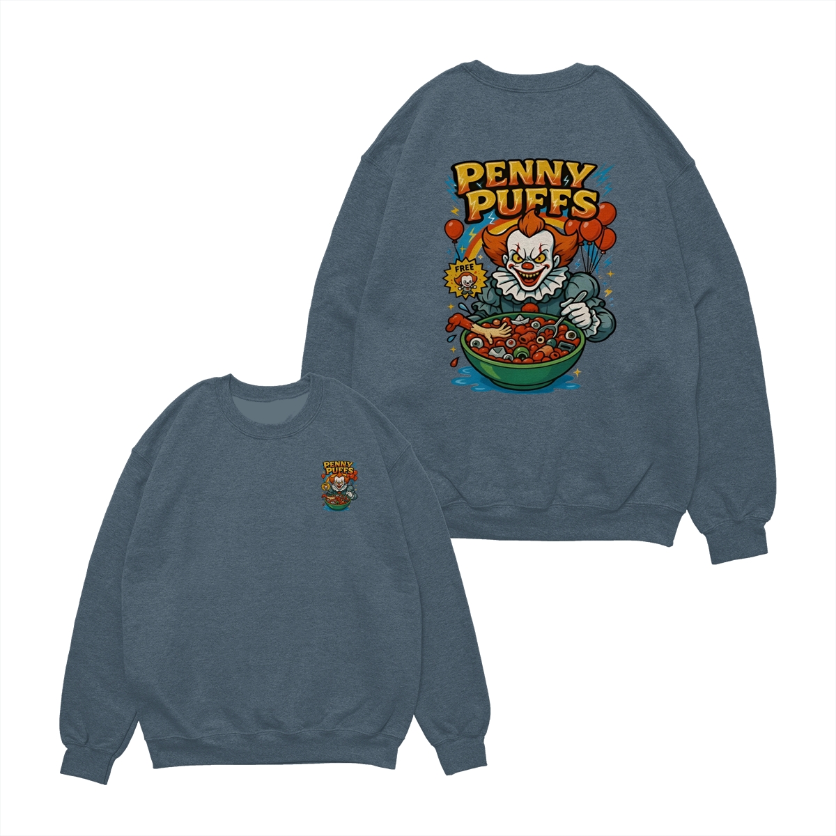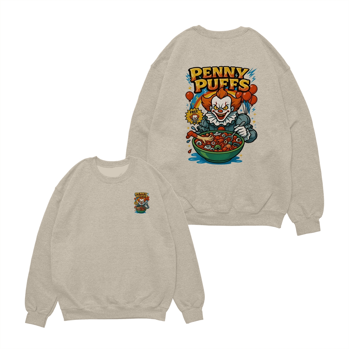 Penny Puffs T-Shirt – Spooky Clown 2-Sided Graphic Halloween Tee, Soft Cotton Unisex Shirt for Men & Women – Perfect for Horror Fans & Casual Wear