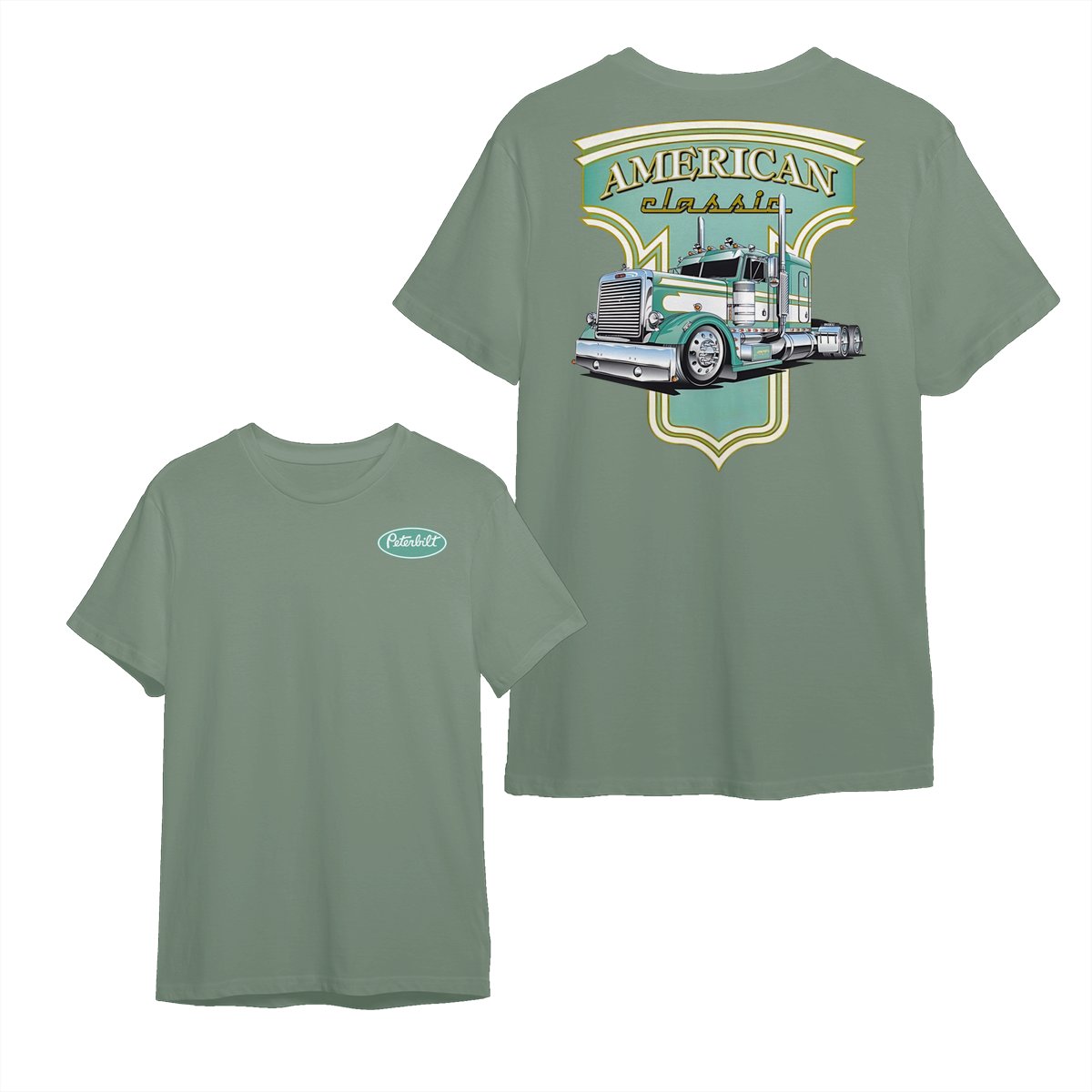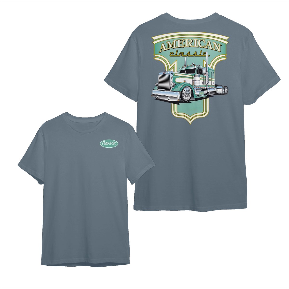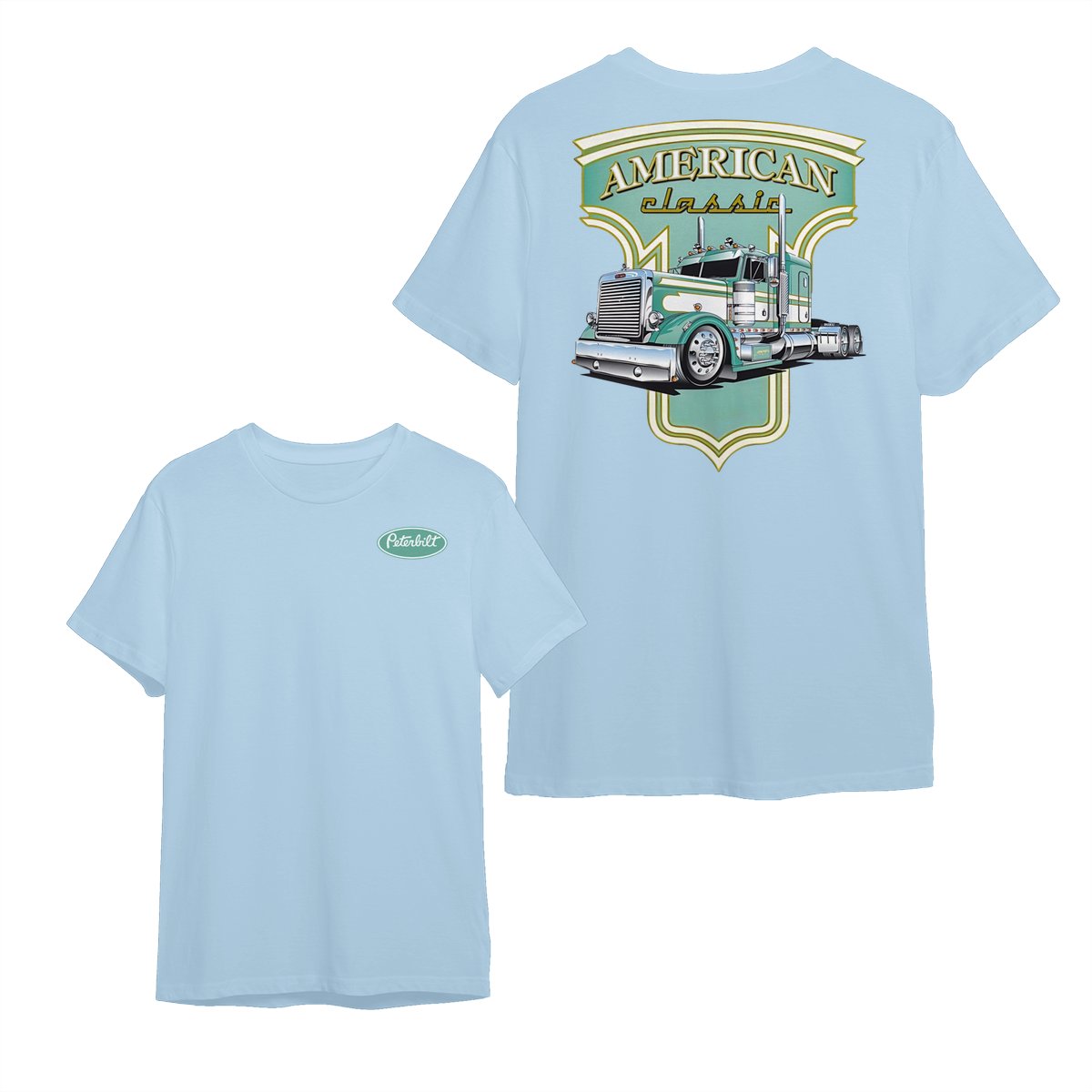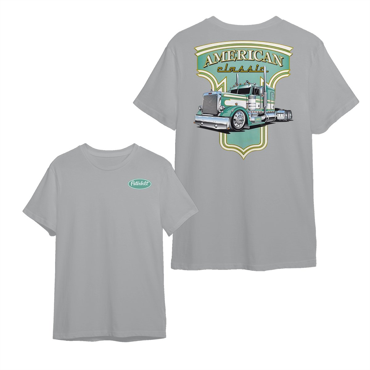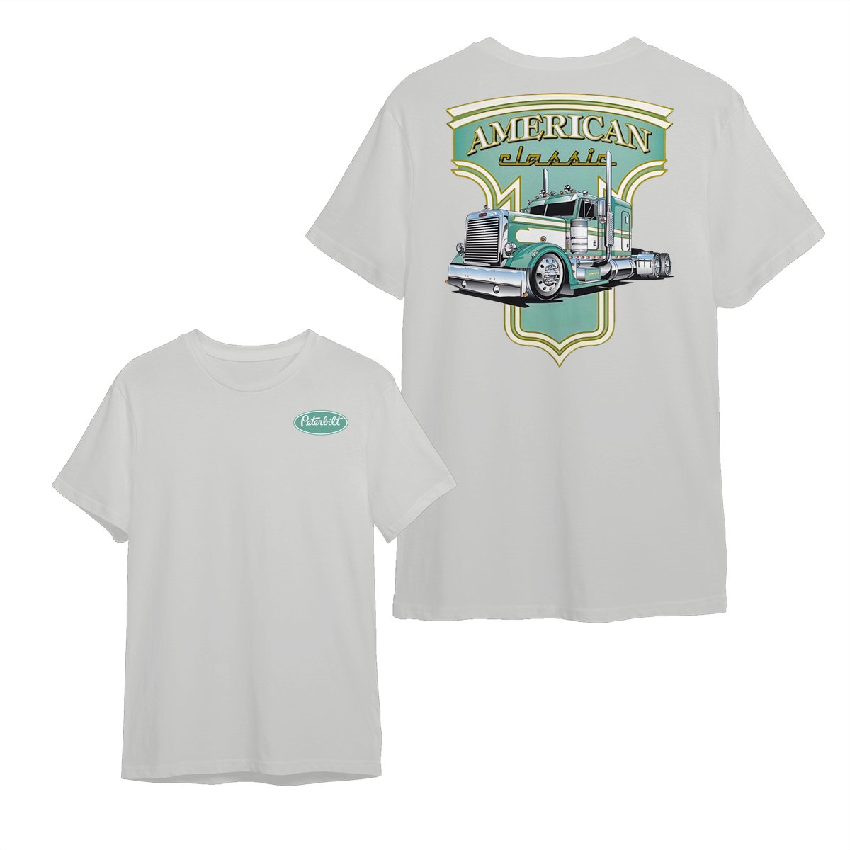 Peterbilt American Classic T-Shirt, 2-Sided Vintage Trucker Graphic Tee, Retro Car Lover Shirt for Men & Women
