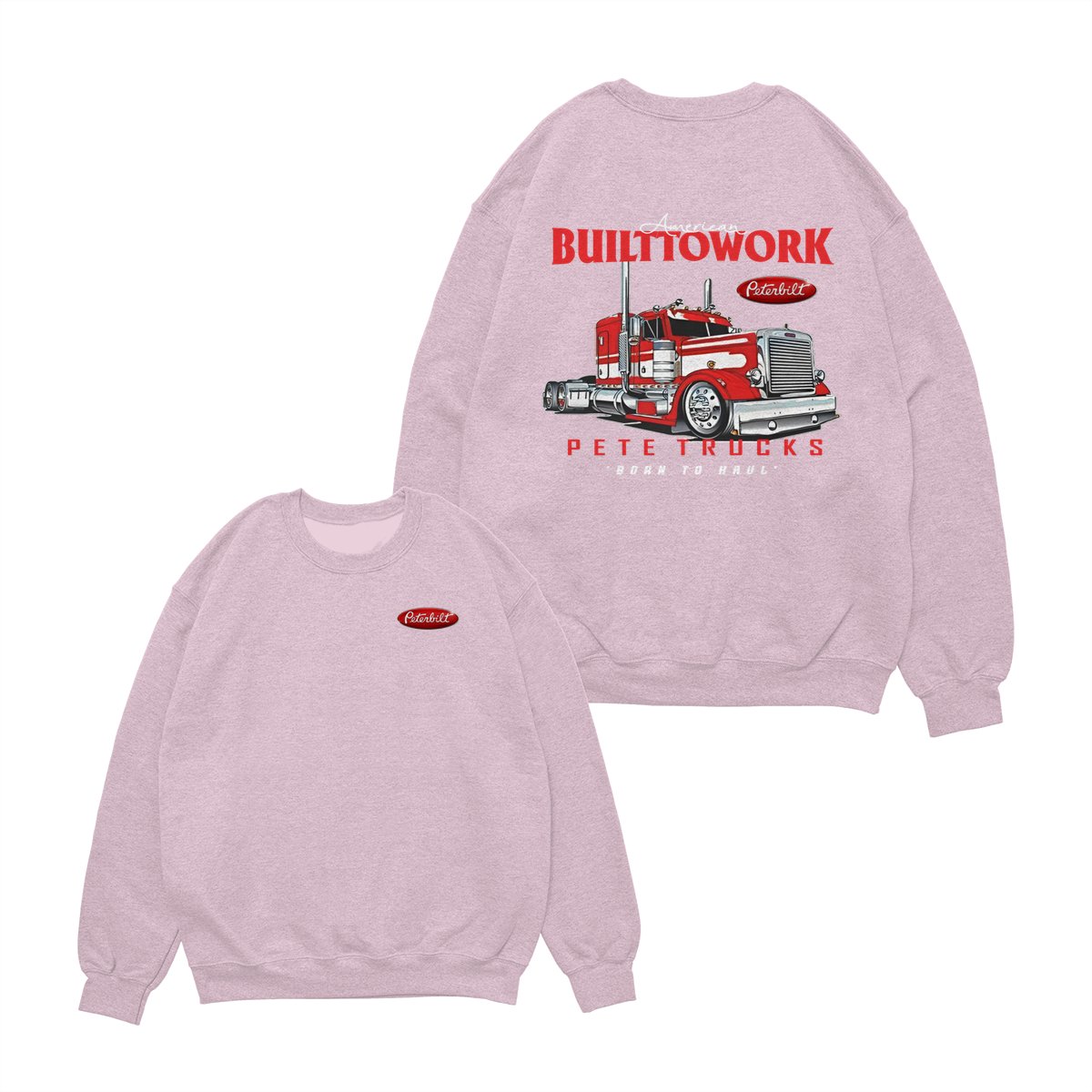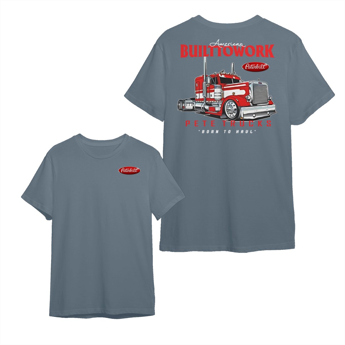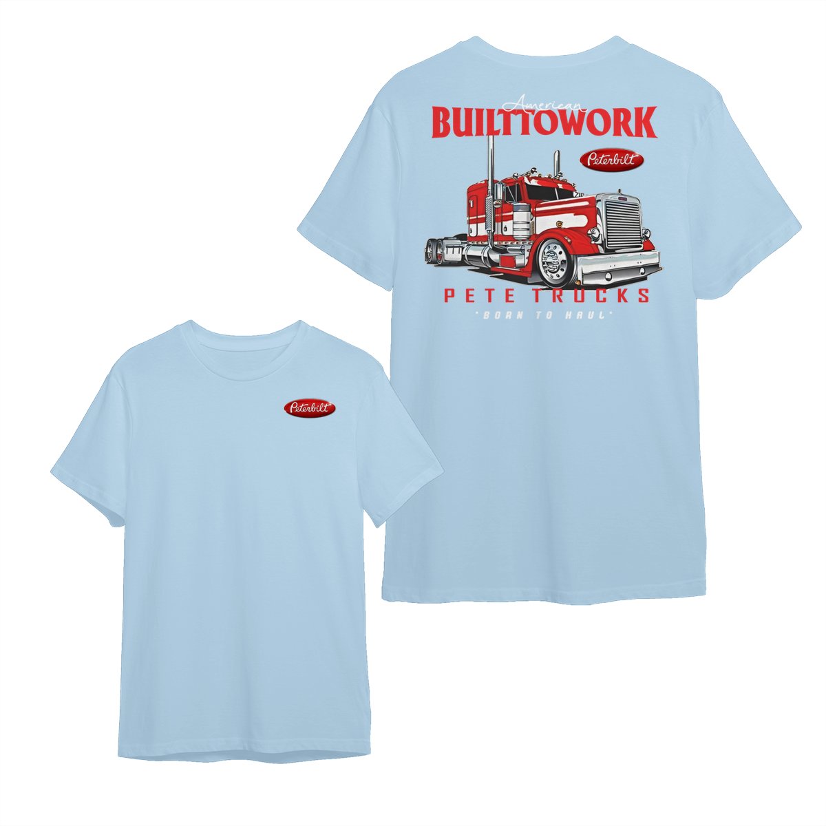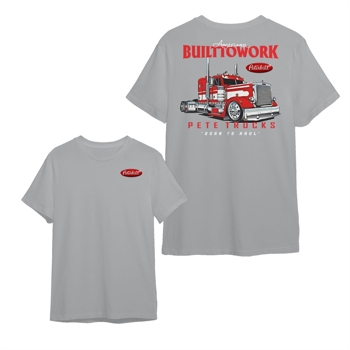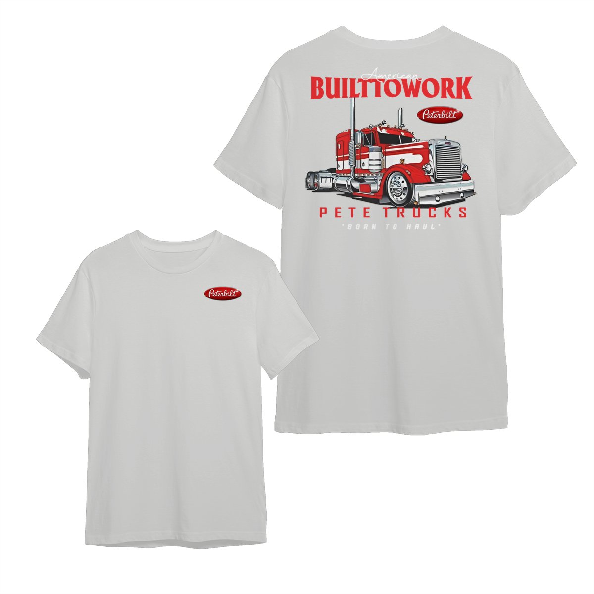 Peterbilt Built to Work T-Shirt – Bold Red Semi-Truck Graphic, American Hauling Legend Tee, Black Workwear Shirt for Truck Drivers, Gift for Big Rig and Peterbilt Fans