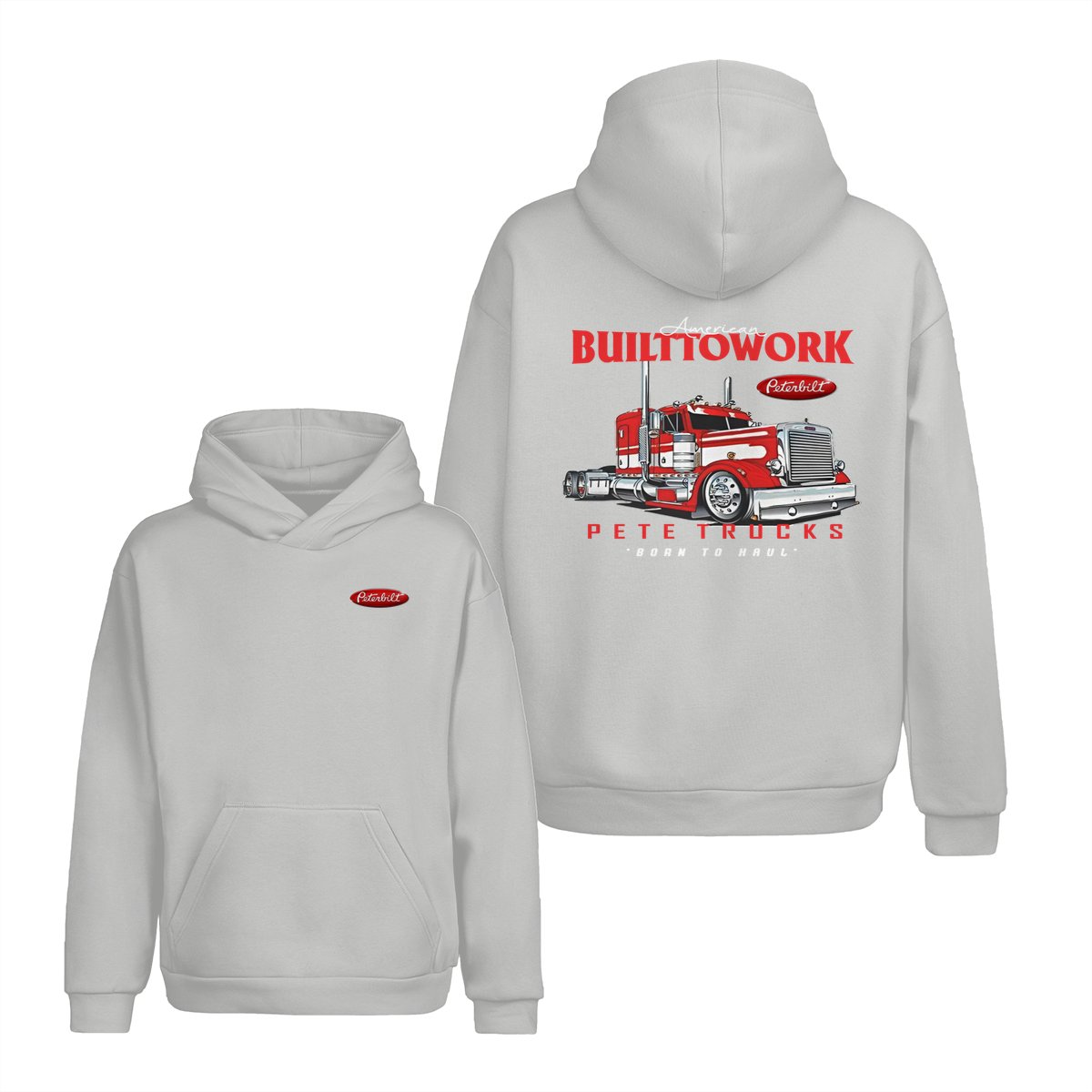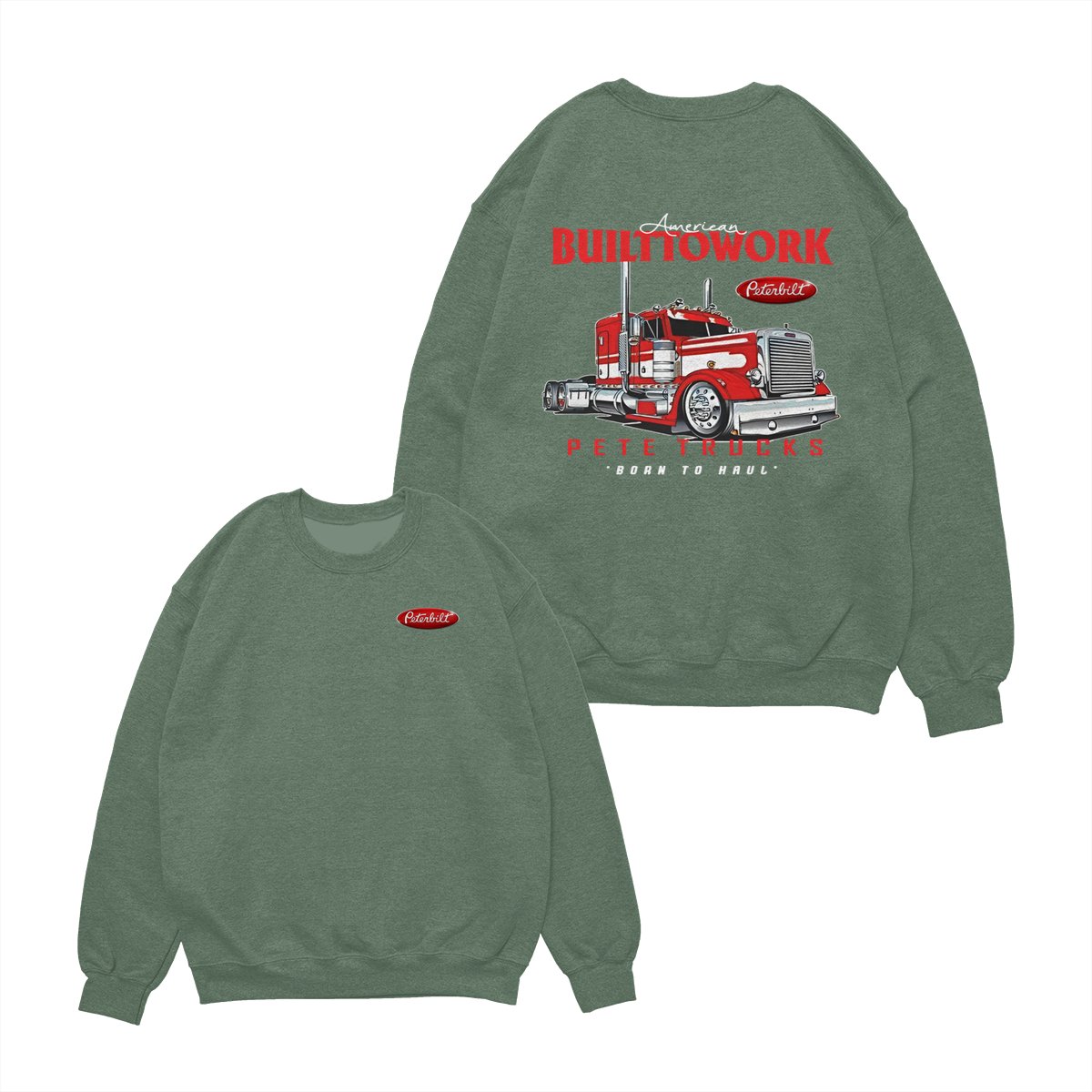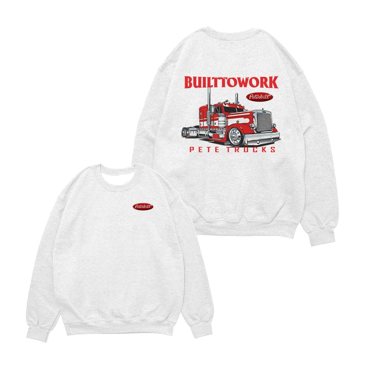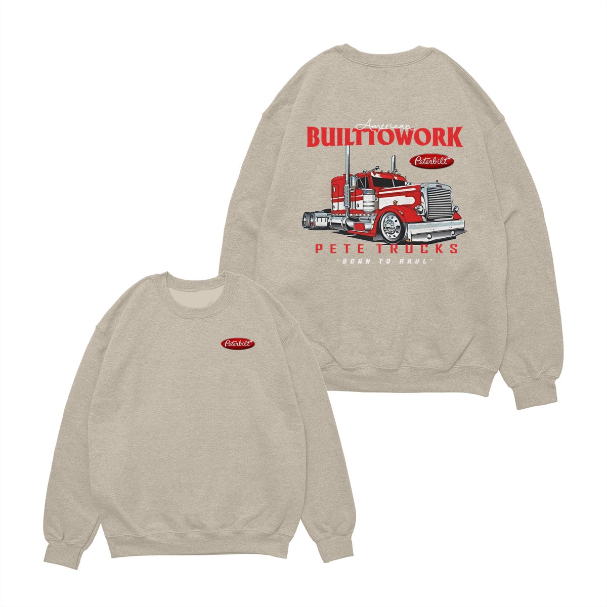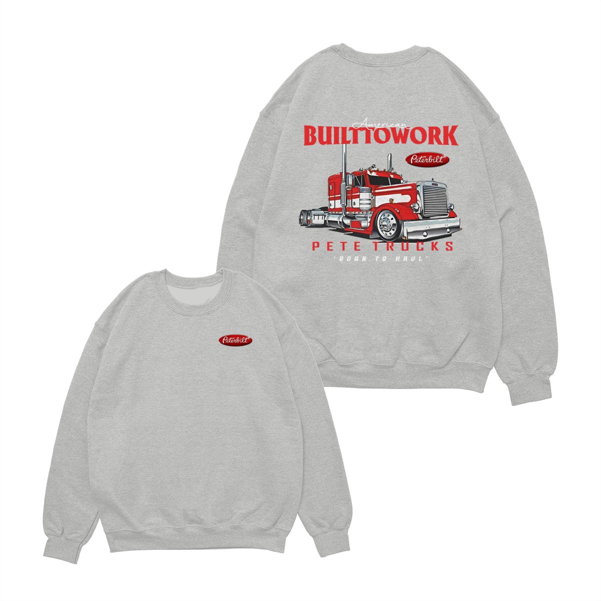 Peterbilt Built to Work T-Shirt – Bold Red Semi-Truck Graphic, American Hauling Legend Tee, Black Workwear Shirt for Truck Drivers, Gift for Big Rig and Peterbilt Fans