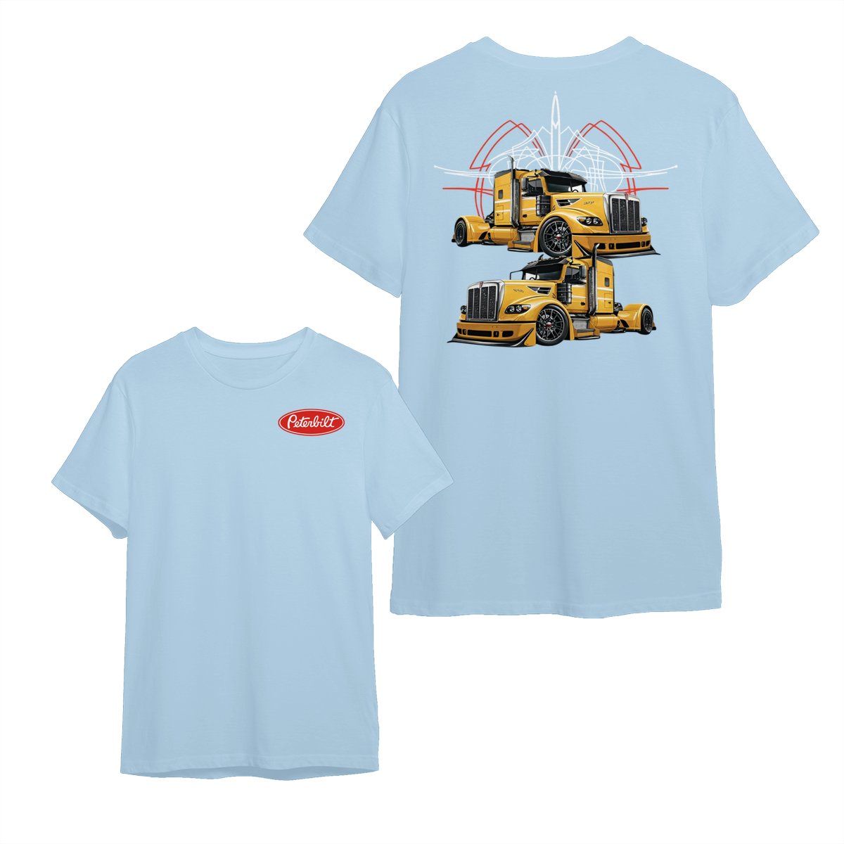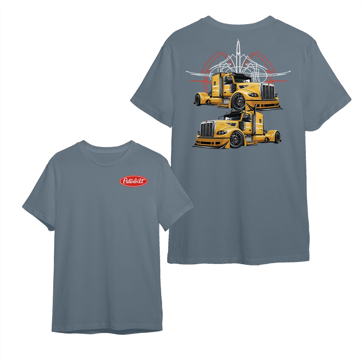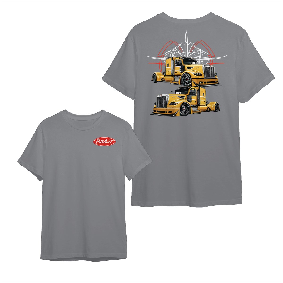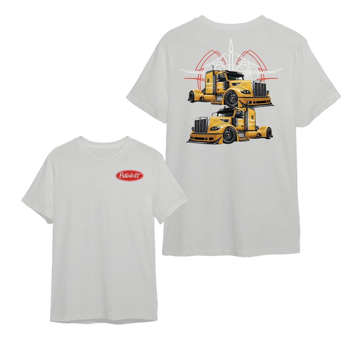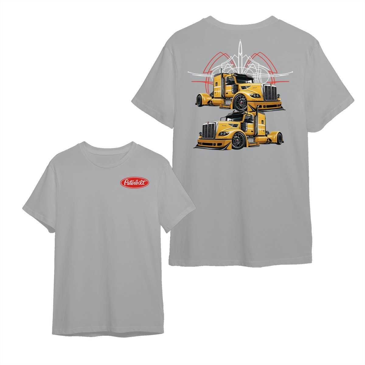 Peterbilt Custom Truck T-Shirt, Yellow Lowrider Semi Truck Graphic Tee, Cool Oversized Rig Illustration on Tan Shirt, Gift for Diesel Lovers and Truck Show Fans