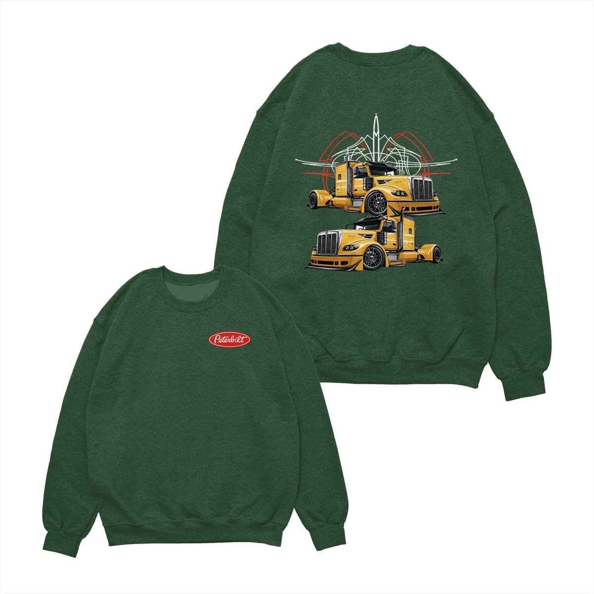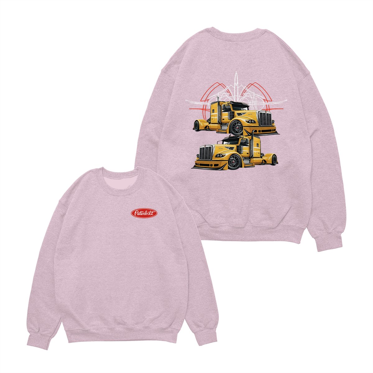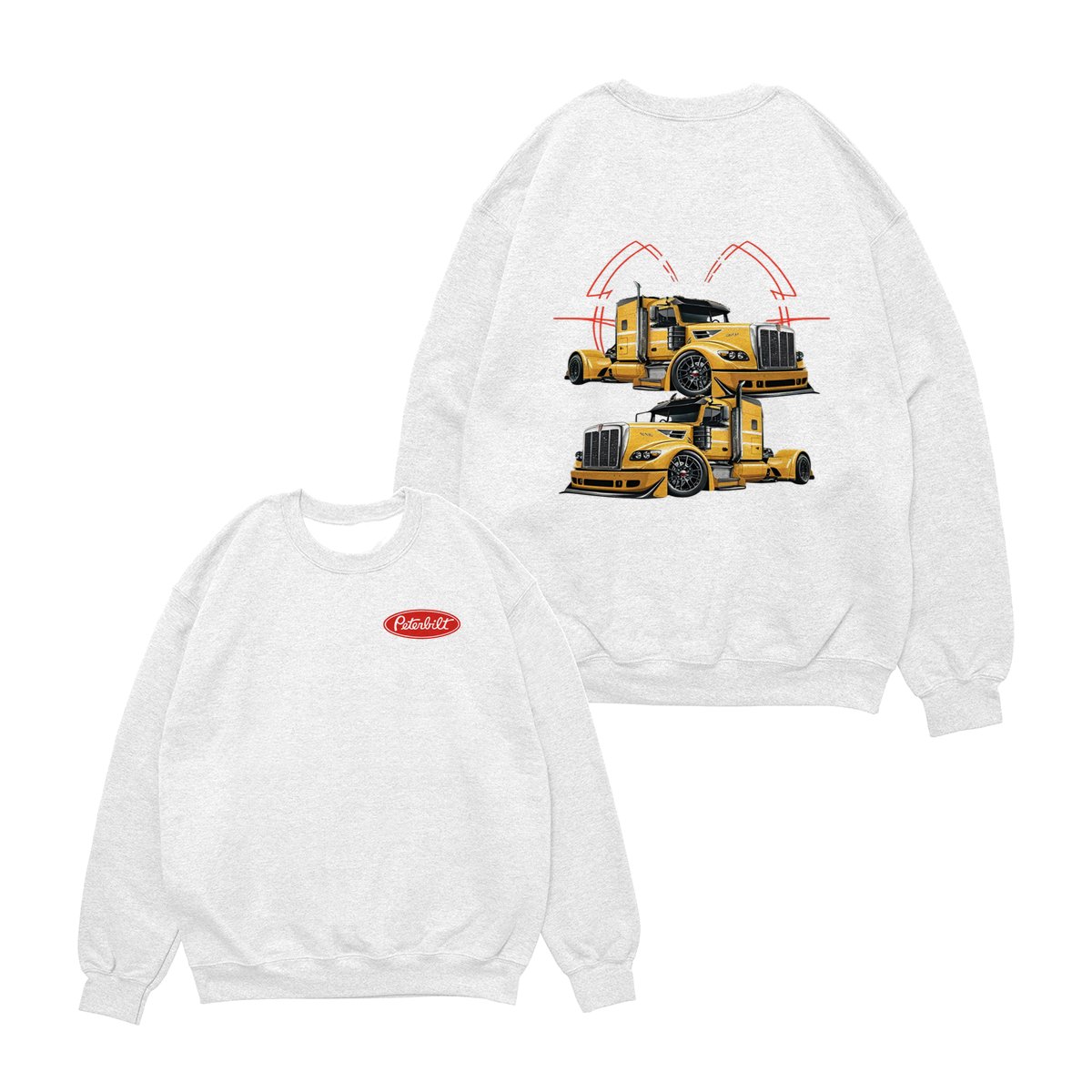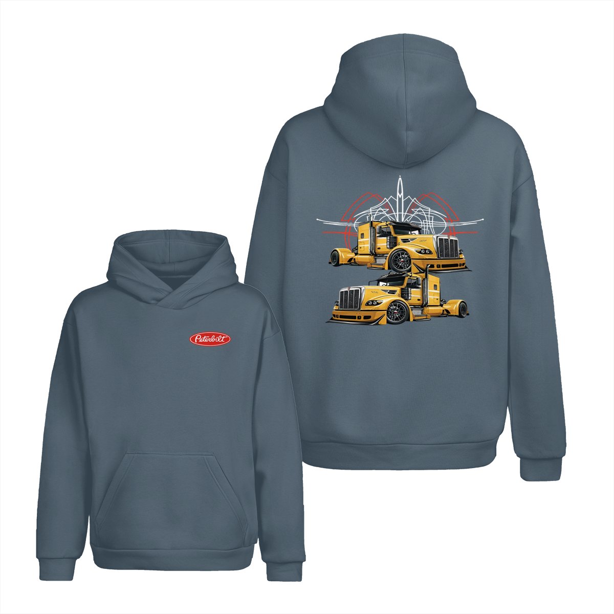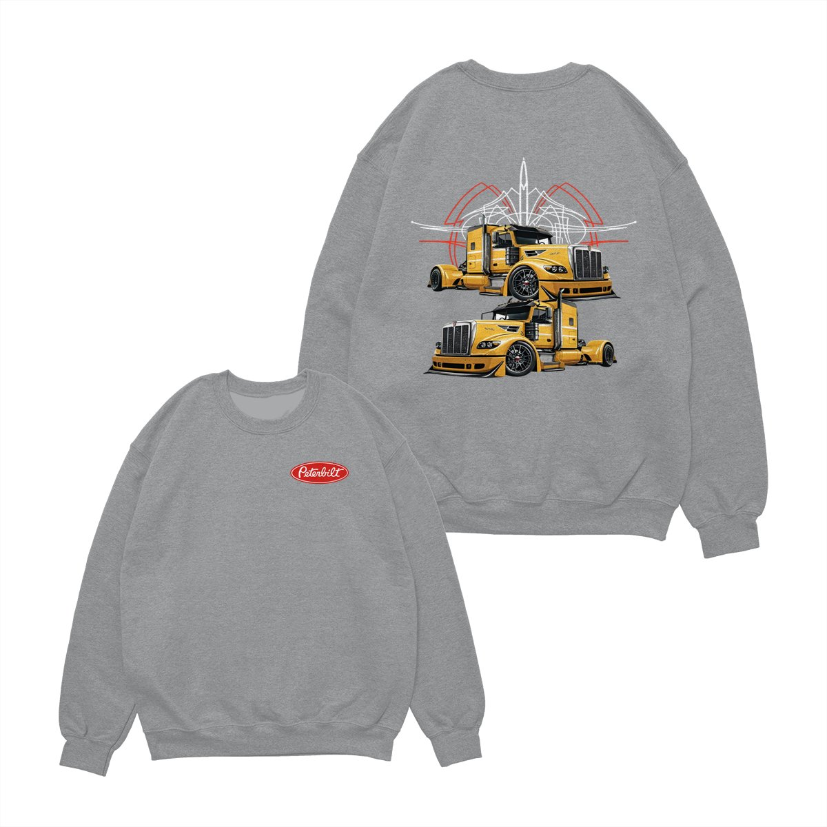 Peterbilt Custom Truck T-Shirt, Yellow Lowrider Semi Truck Graphic Tee, Cool Oversized Rig Illustration on Tan Shirt, Gift for Diesel Lovers and Truck Show Fans