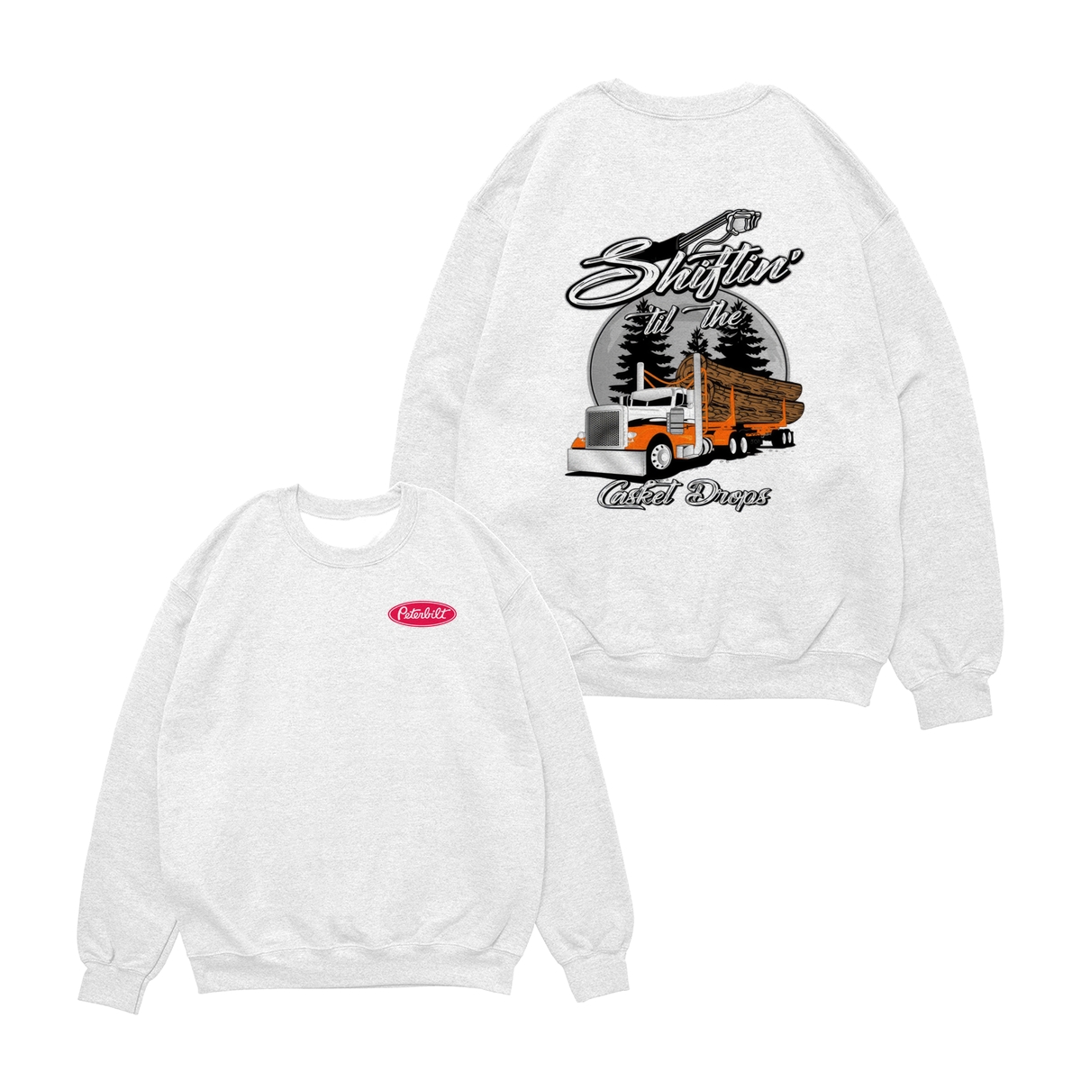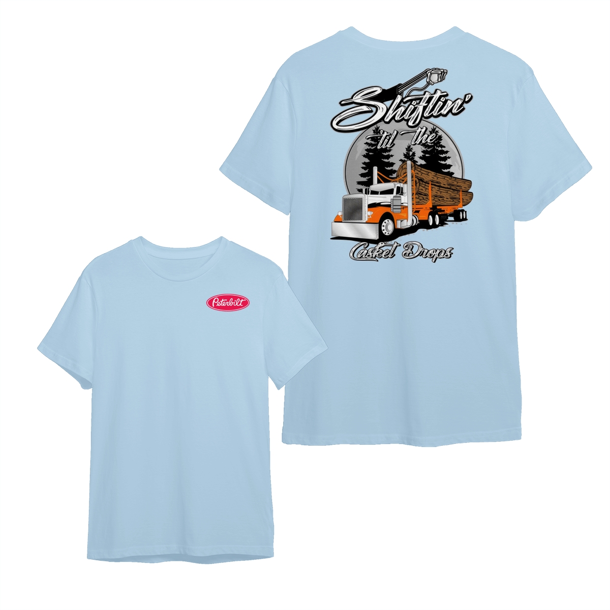 Peterbilt Shiftin’ Til the Casket Drops Shirt, Trucker Logging Semi Truck Graphic Tee for Men, Funny Bold Trucker Life T-Shirt, Black or White Driver Gift USA