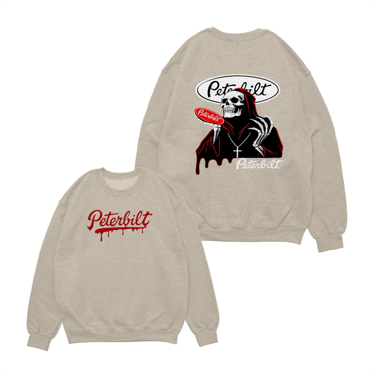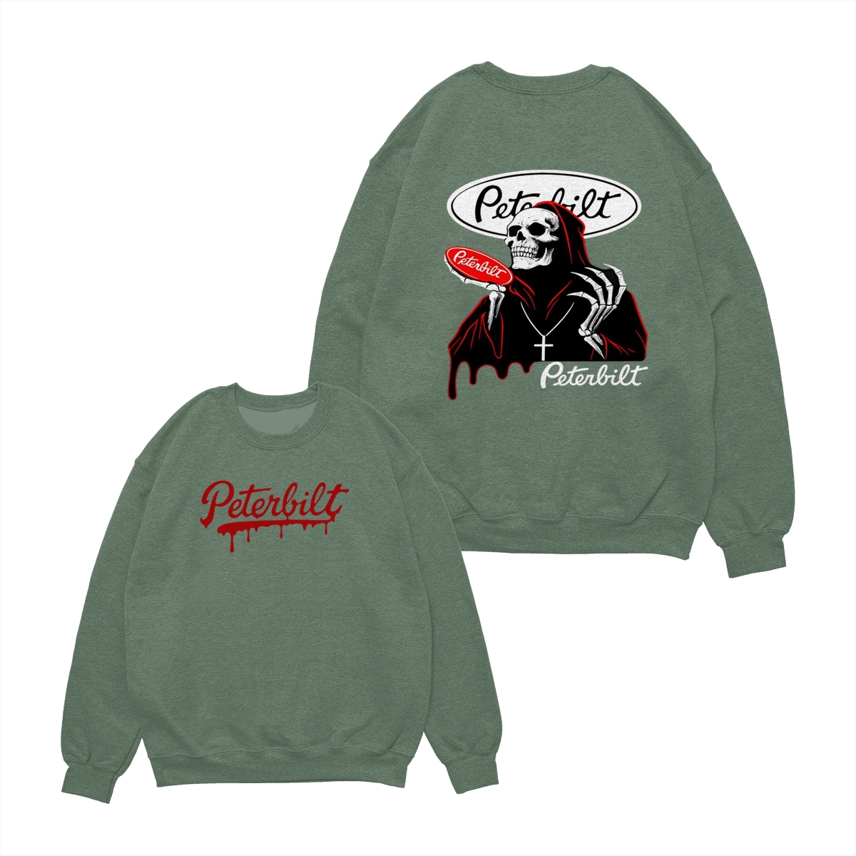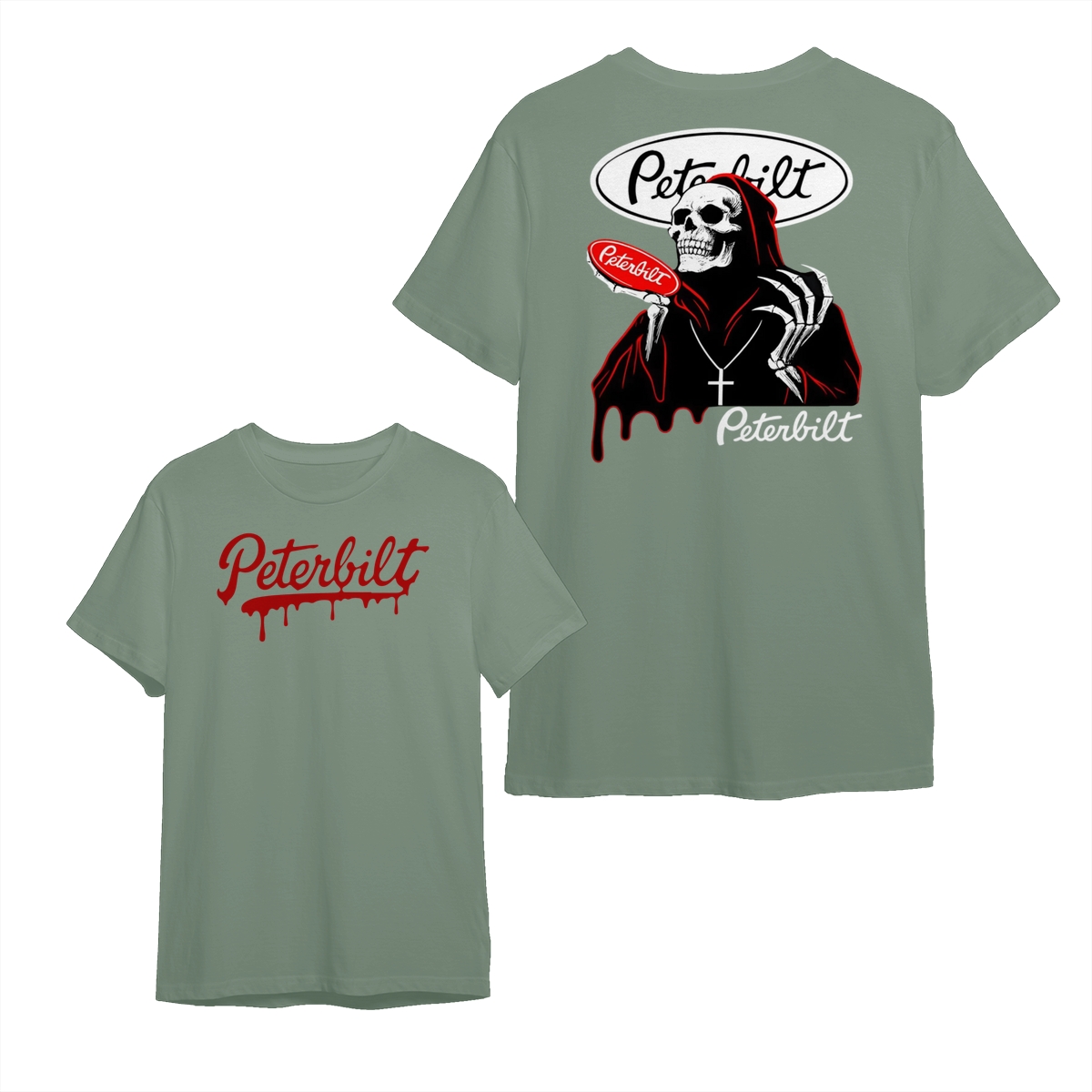 Peterbilt Skeleton Reaper T-Shirt – Grim Graphic 2side Shirt, American Truck Driver Style, Peterbilt Semi Truck Top, Trucker Life Gift, Skull Diesel Tee